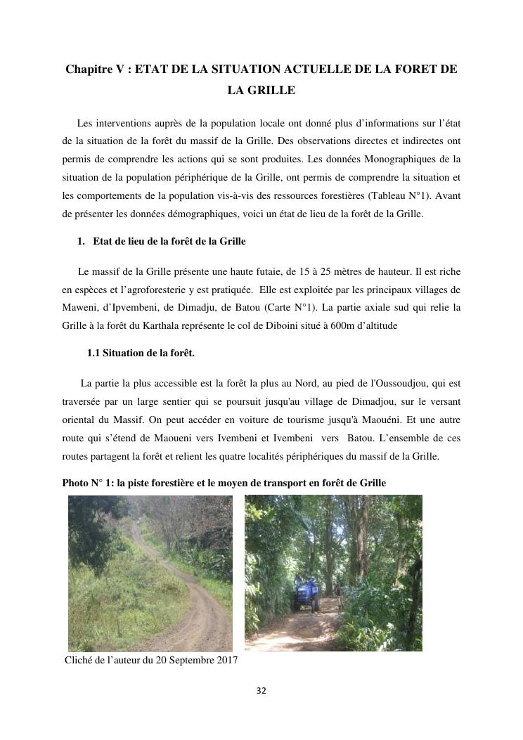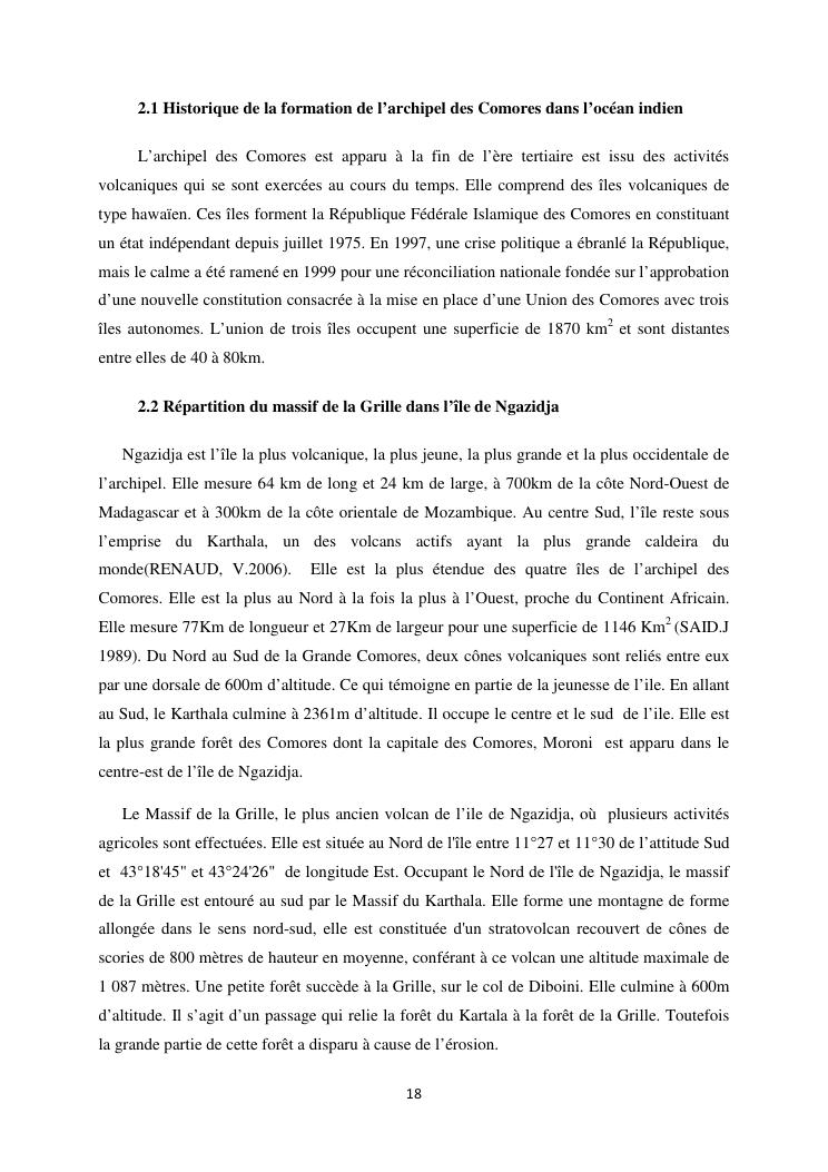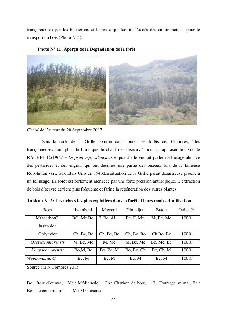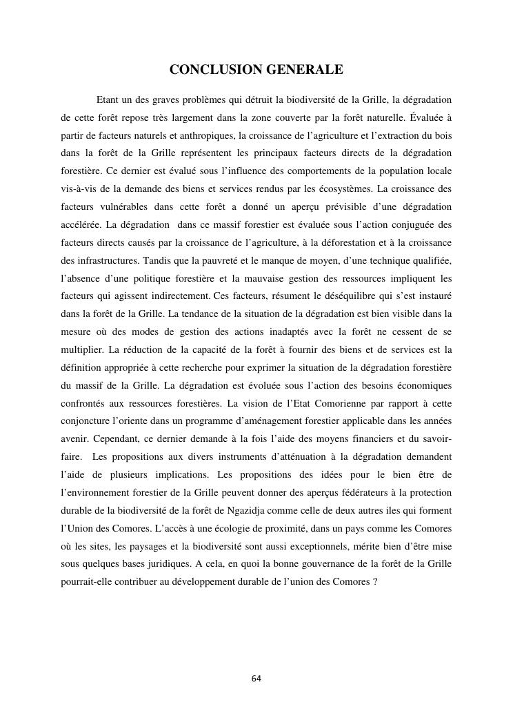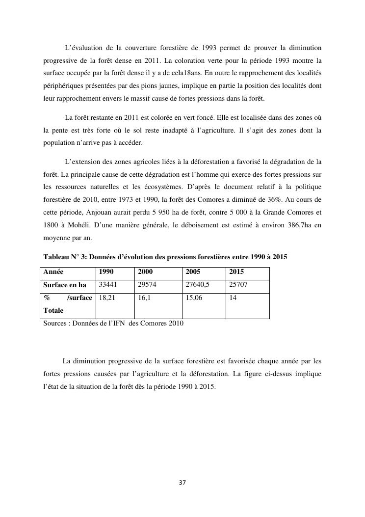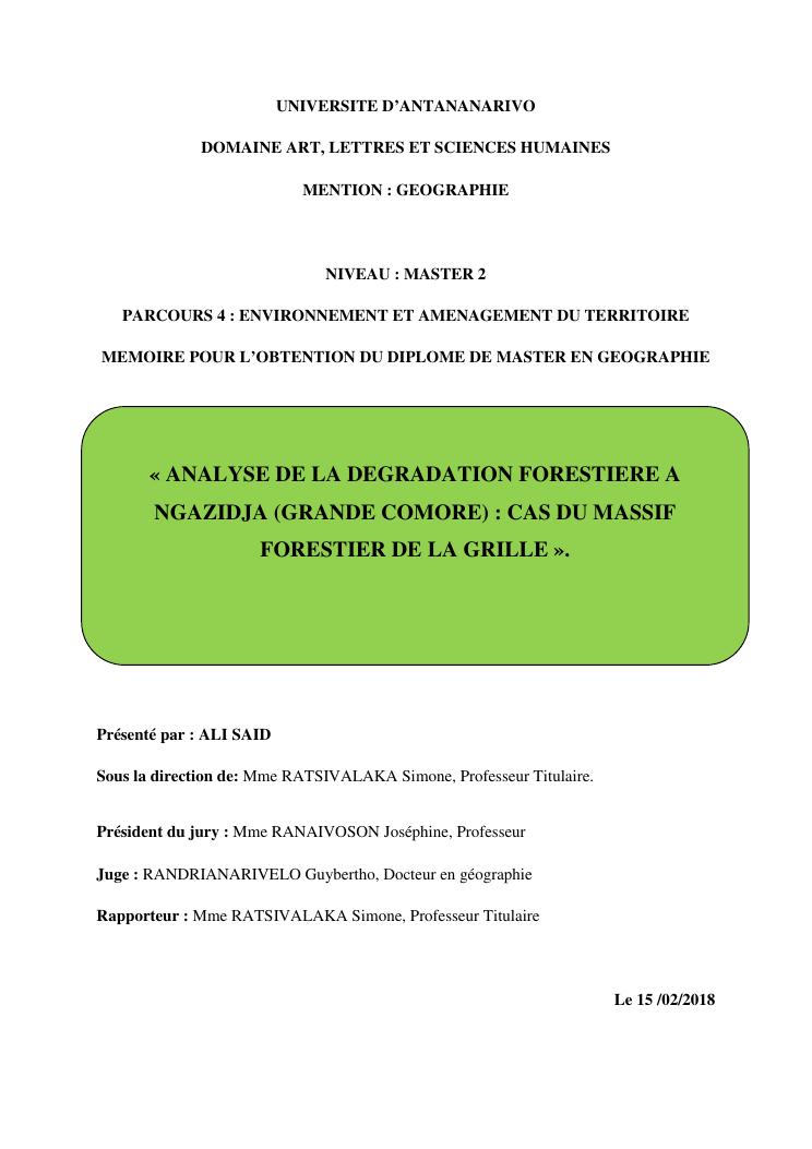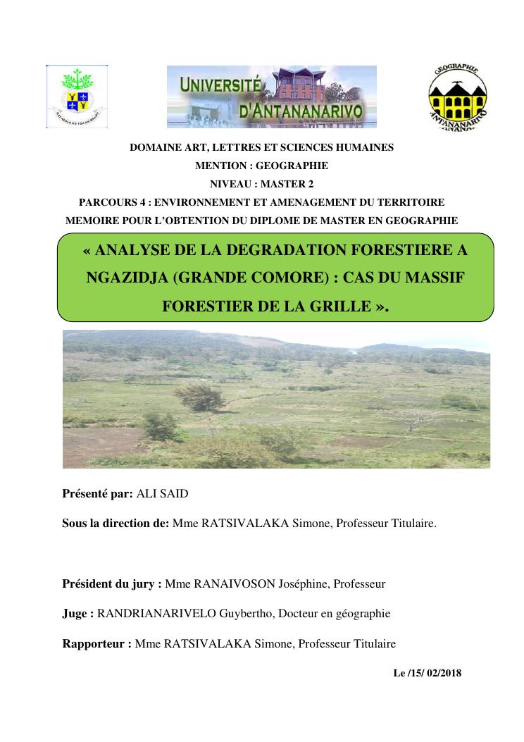 « analyse de la degradation ngazidja (grande forestier de la grille mention : geographie niveau : master 2 forestiere a comore) : cas du massif ».