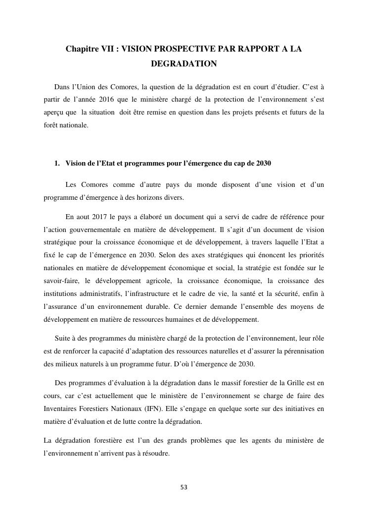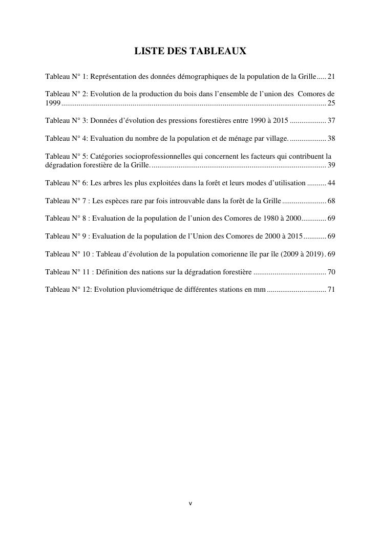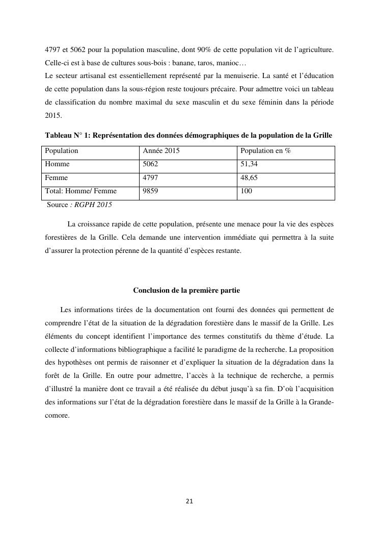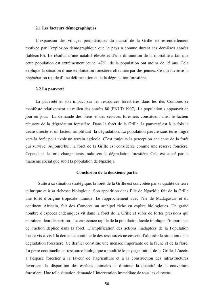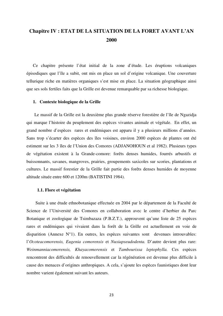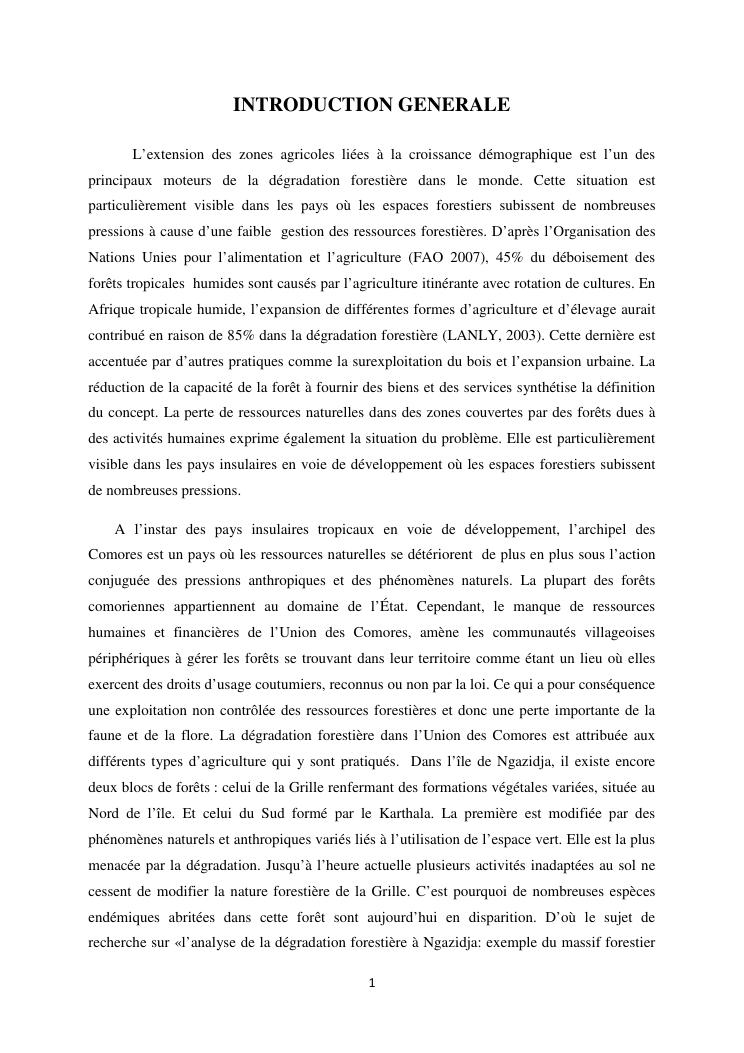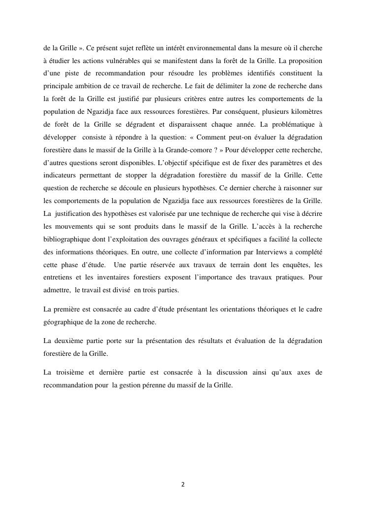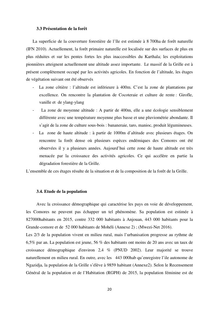 « analyse de la degradation ngazidja (grande forestier de la grille mention : geographie niveau : master 2 forestiere a comore) : cas du massif ».
