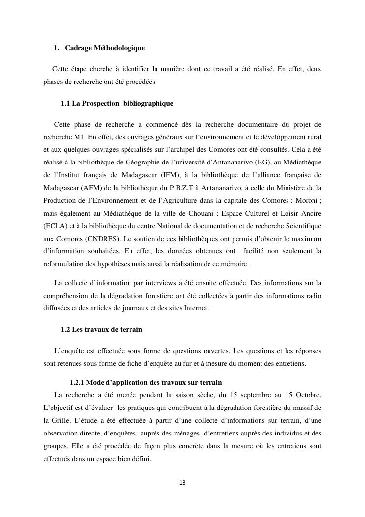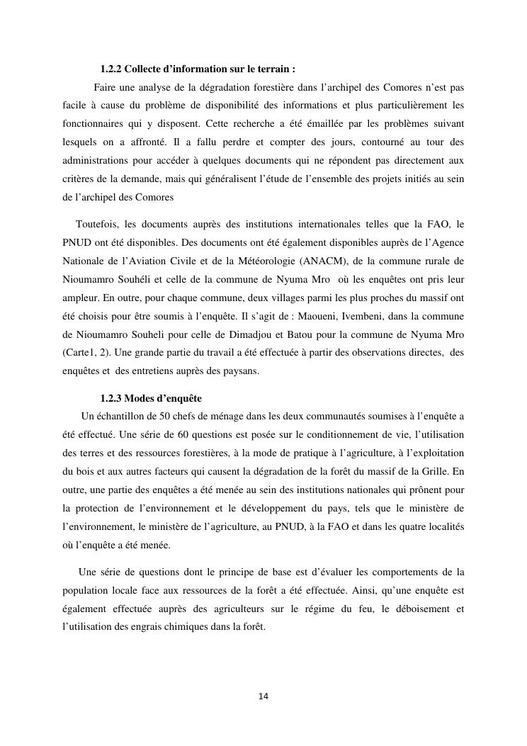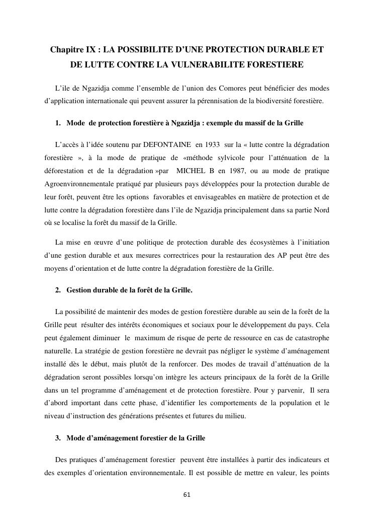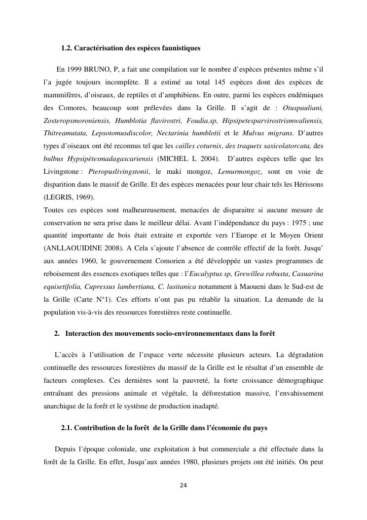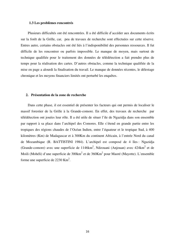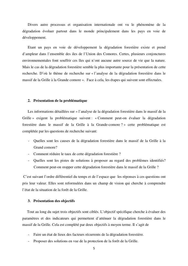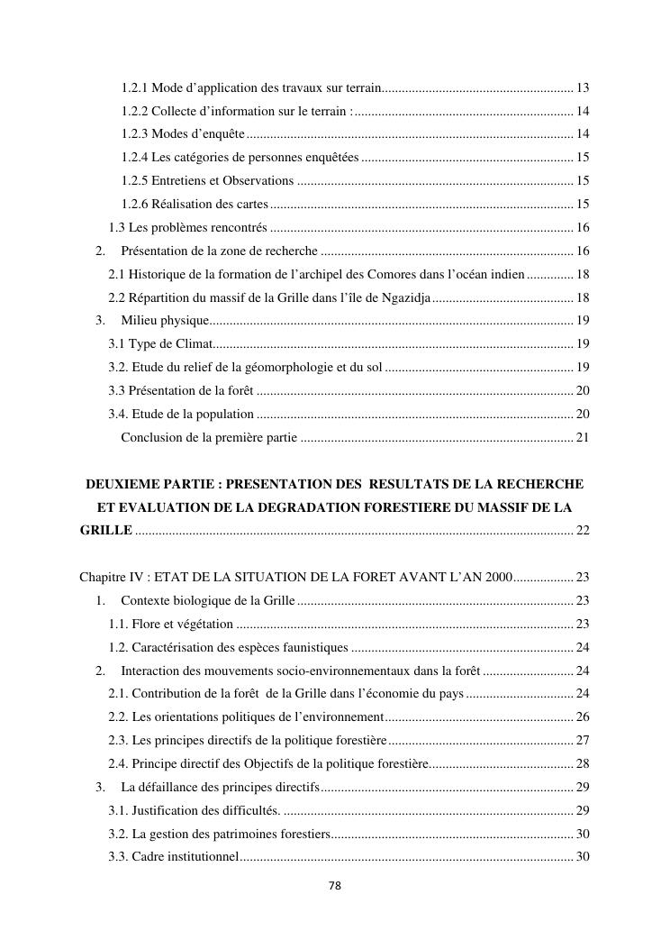 « analyse de la degradation ngazidja (grande forestier de la grille mention : geographie niveau : master 2 forestiere a comore) : cas du massif ».