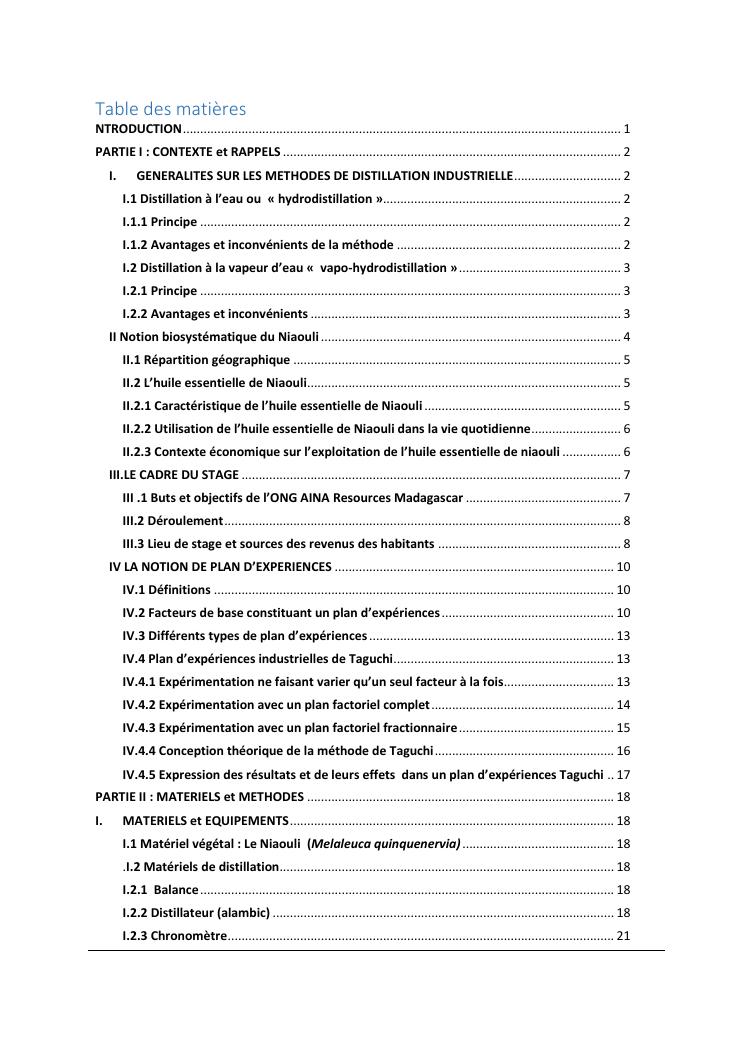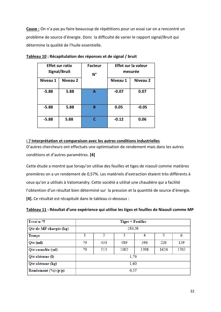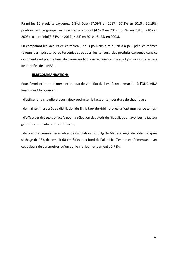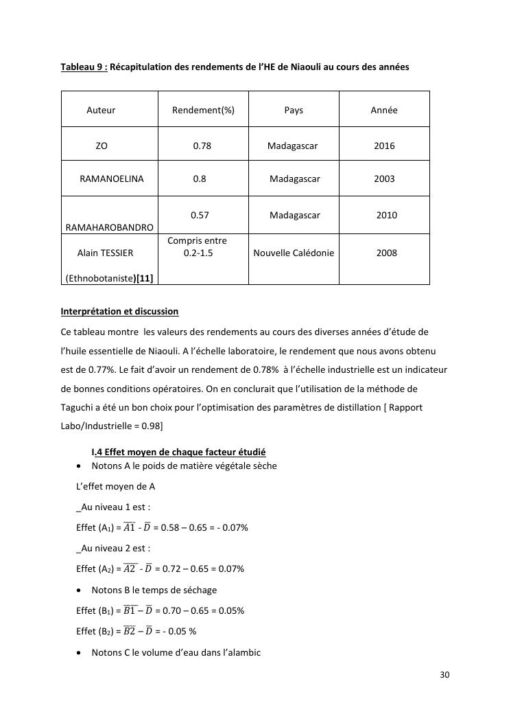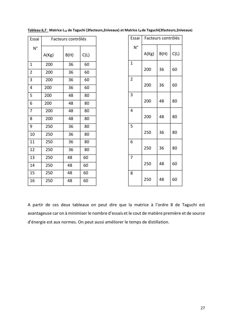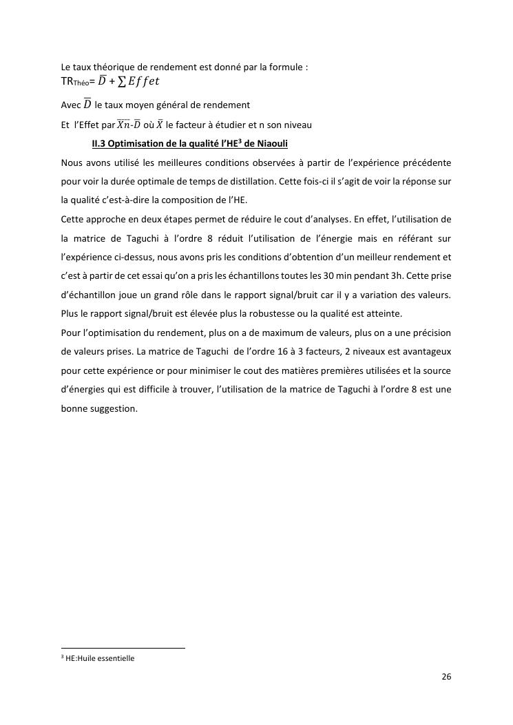 optimisation du rendement et du taux de viridiflorol dans l'huile essentielle de niaouli par la méthode industrielle de taguchi