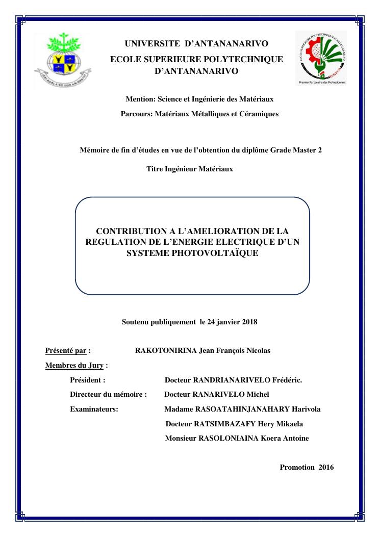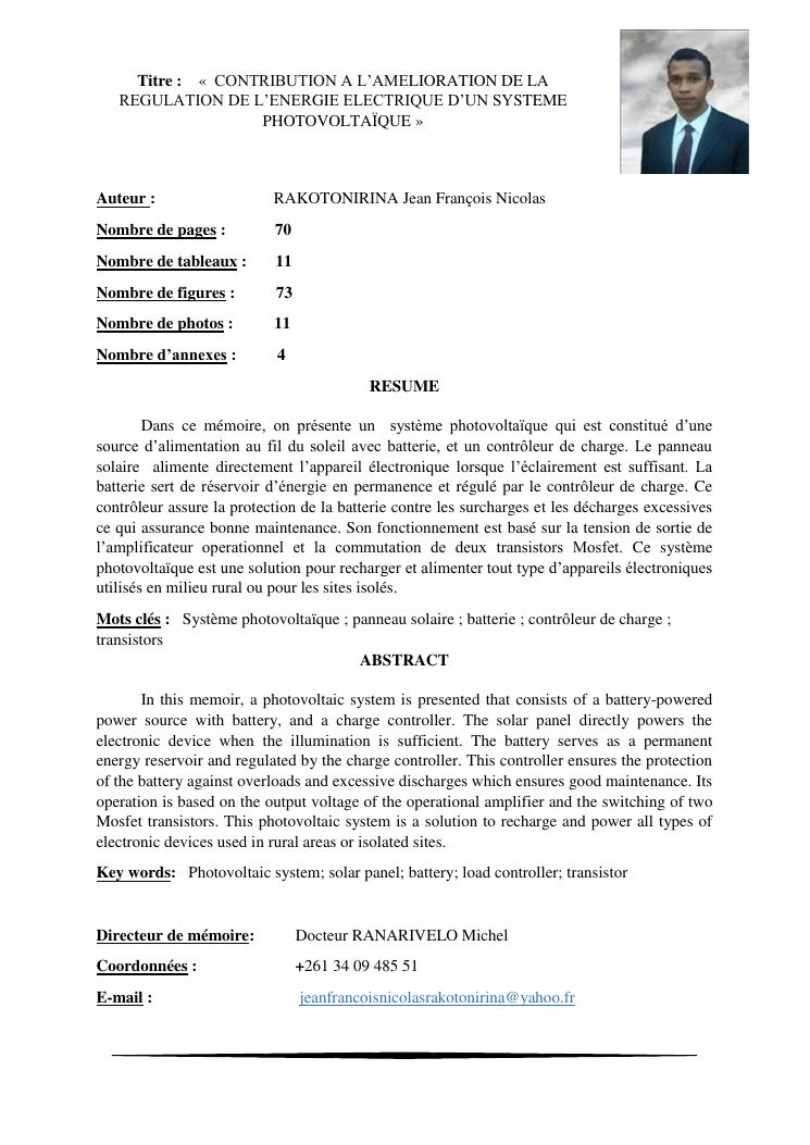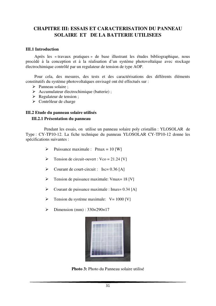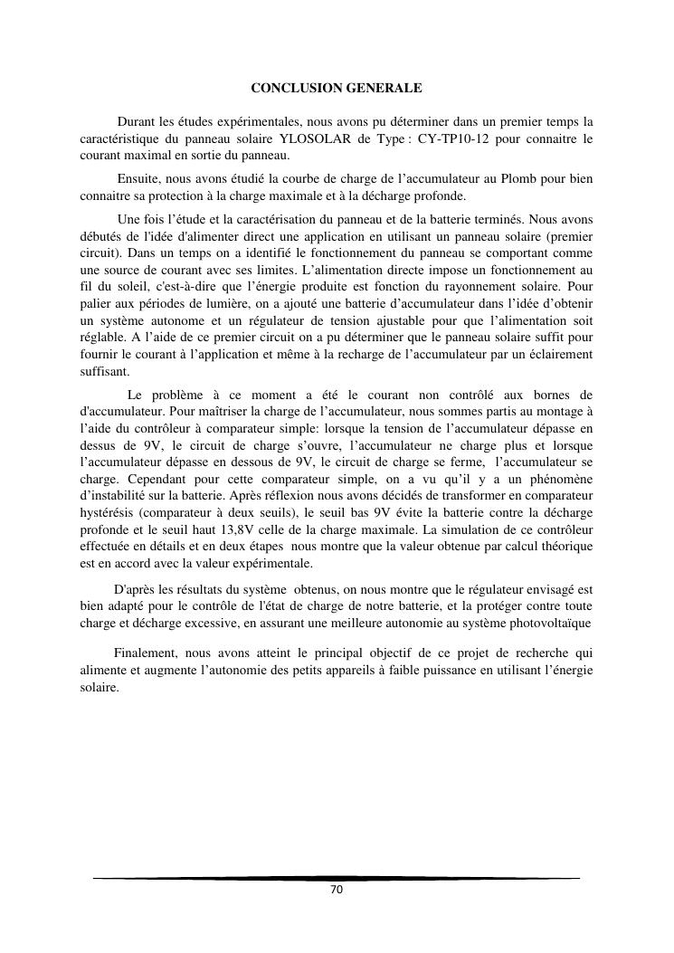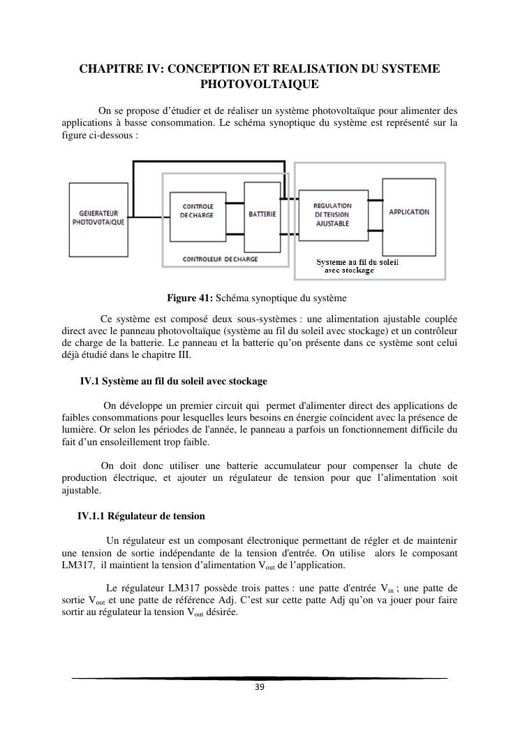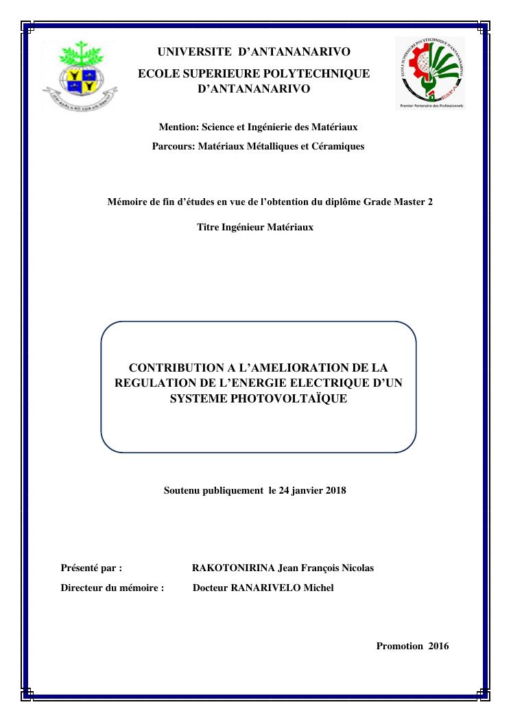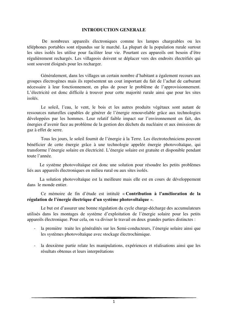 contribution a l'amelioration de la regulation de l'energie electrique d'un systeme photovoltaïque