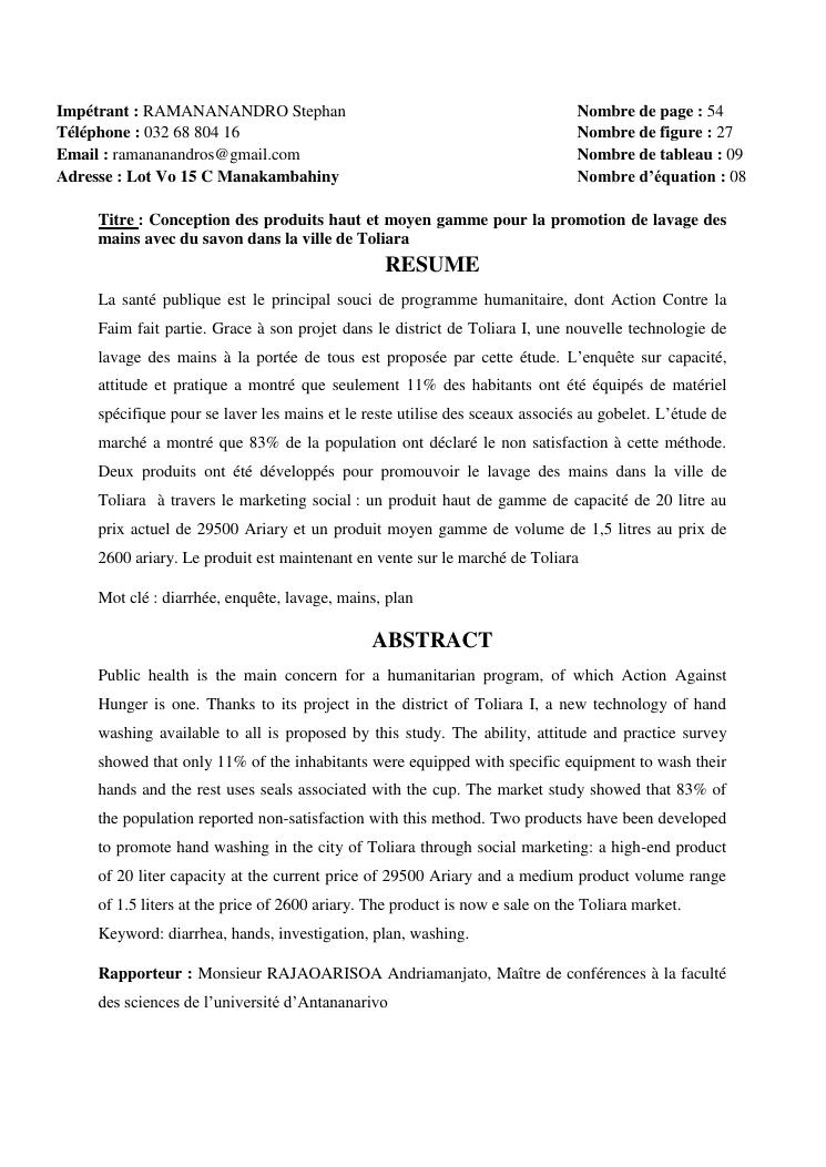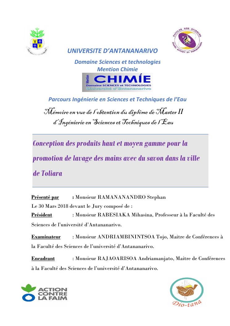 conception des produits haut et moyen gamme pour la promotion de lavage des mains avec du savon dans la ville de toliara