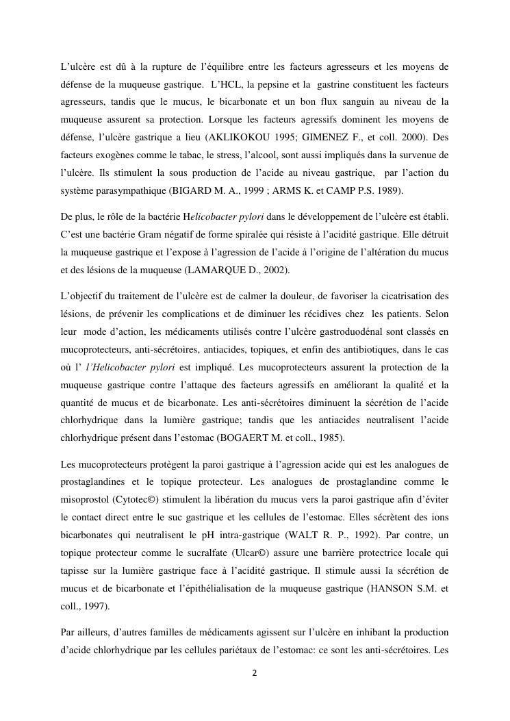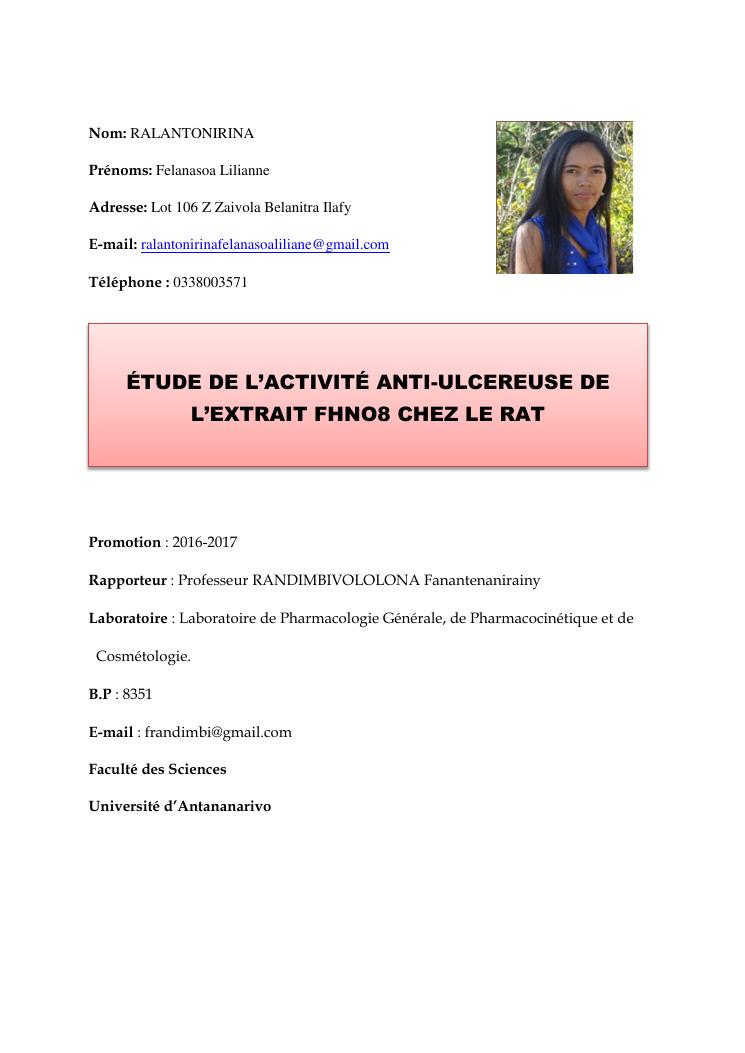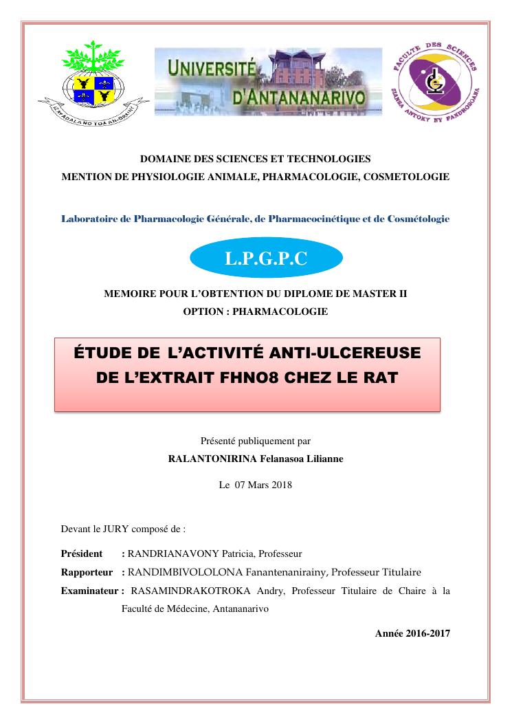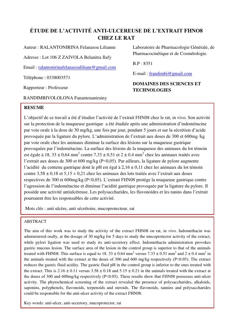étude de l'activité anti-ulcereuse de l'extrait fhno8 chez le rat