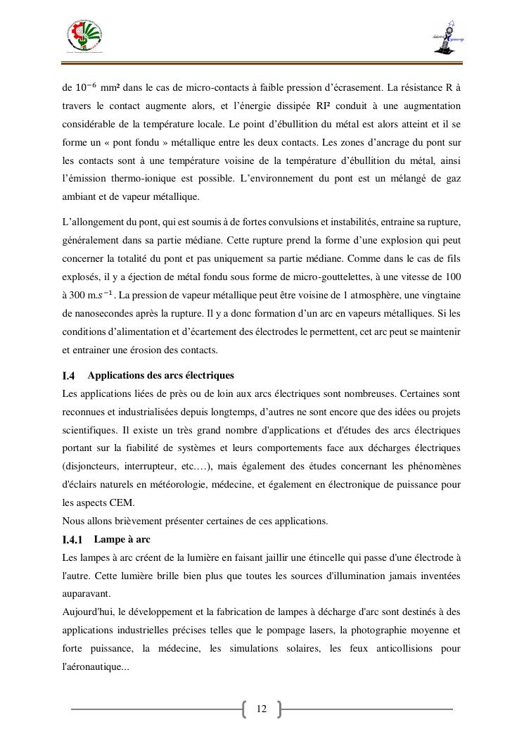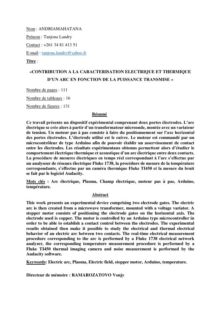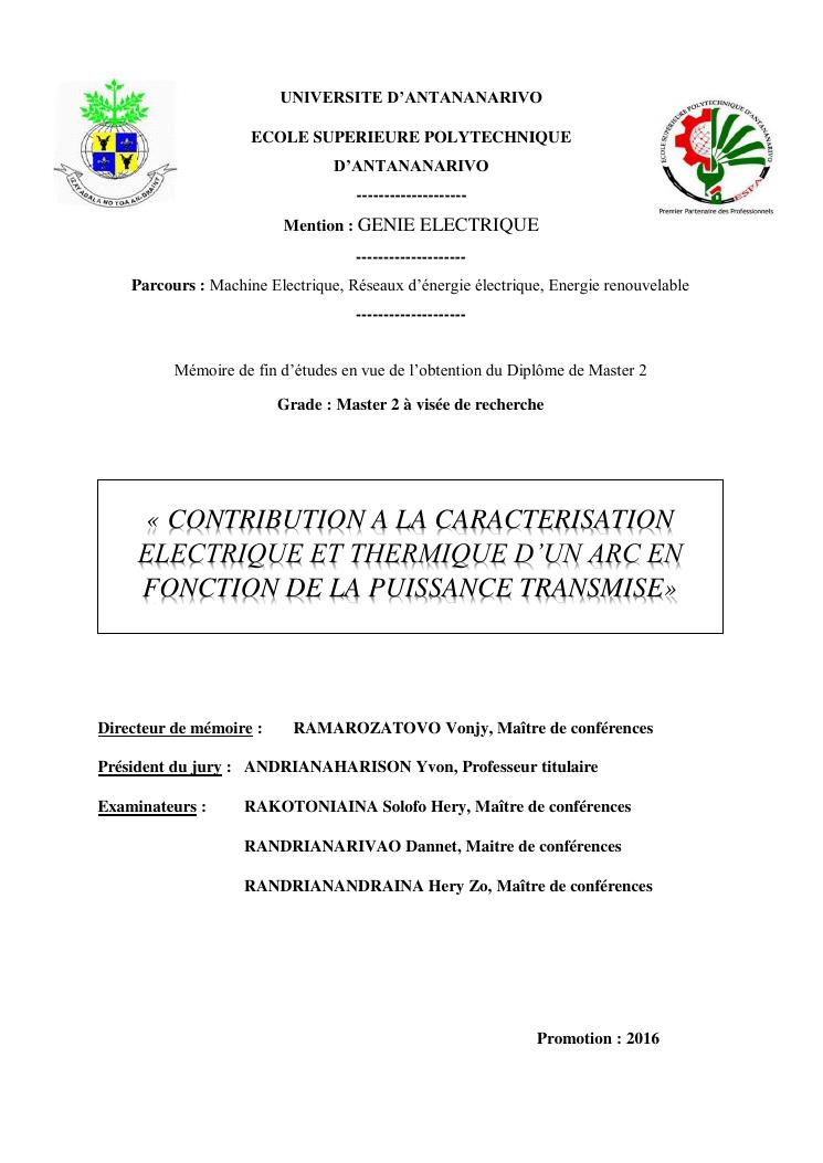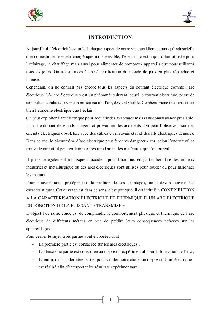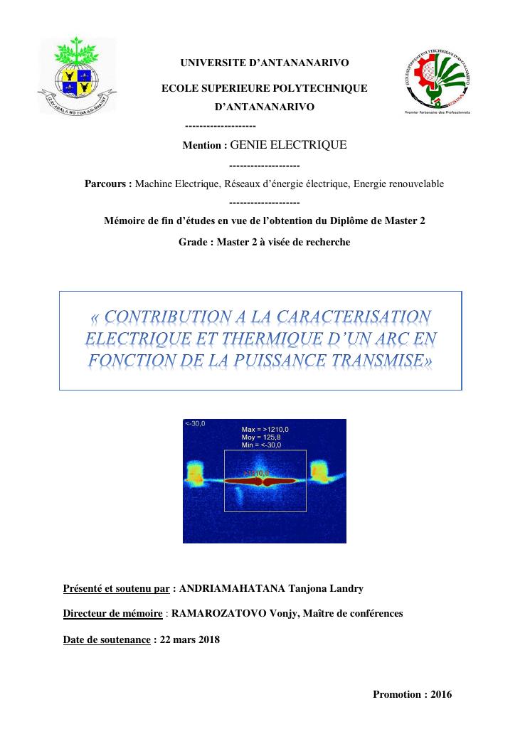 « contribution a la caracterisation electrique et thermique d'un arc en fonction de la puissance transmise»