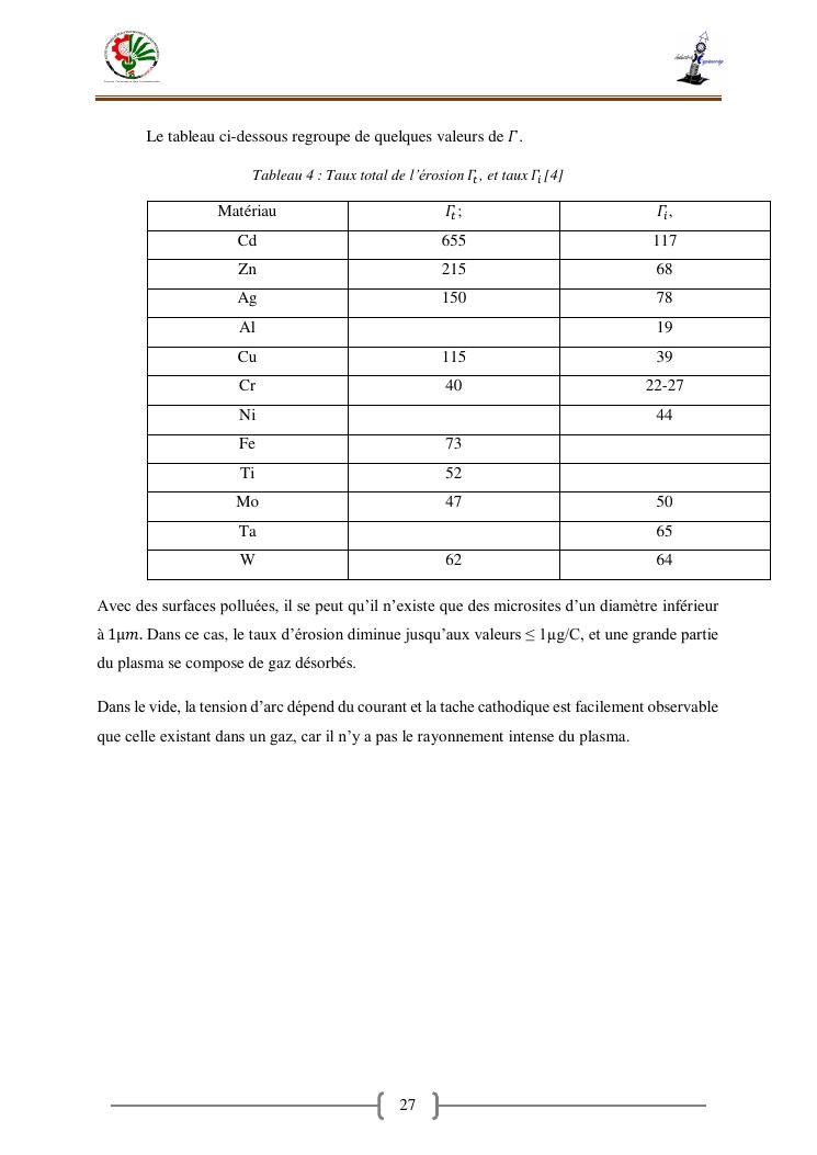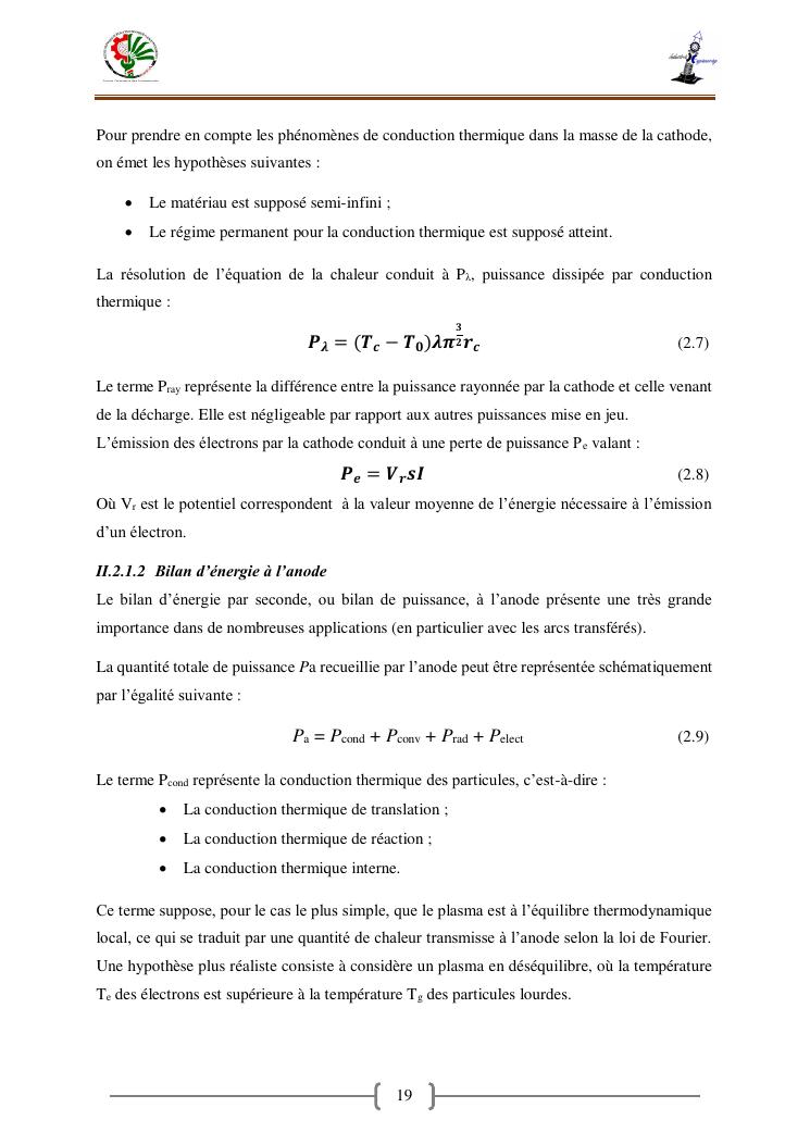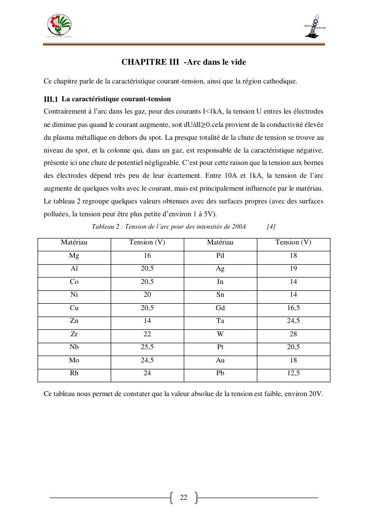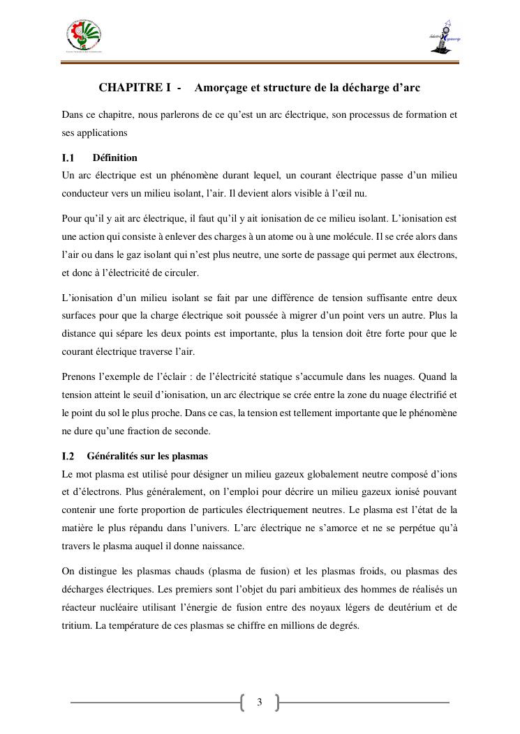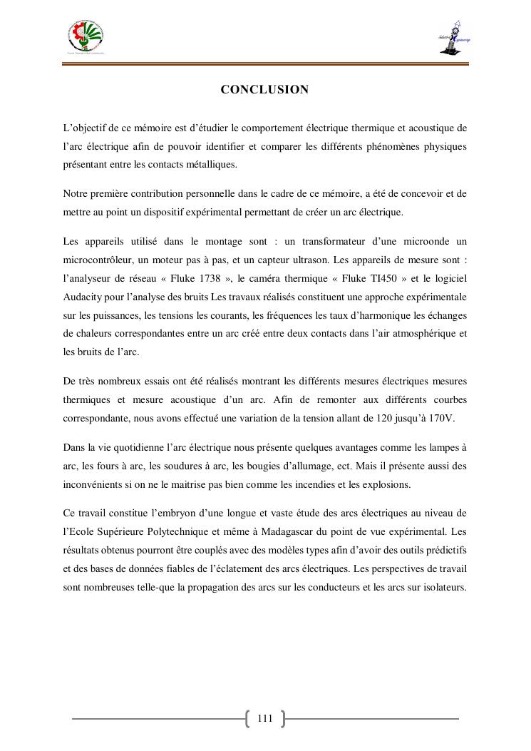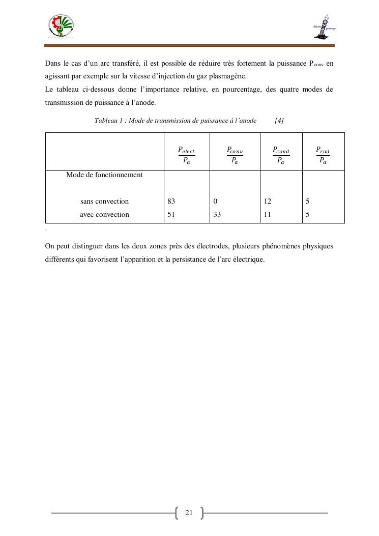 « contribution a la caracterisation electrique et thermique d'un arc en fonction de la puissance transmise»