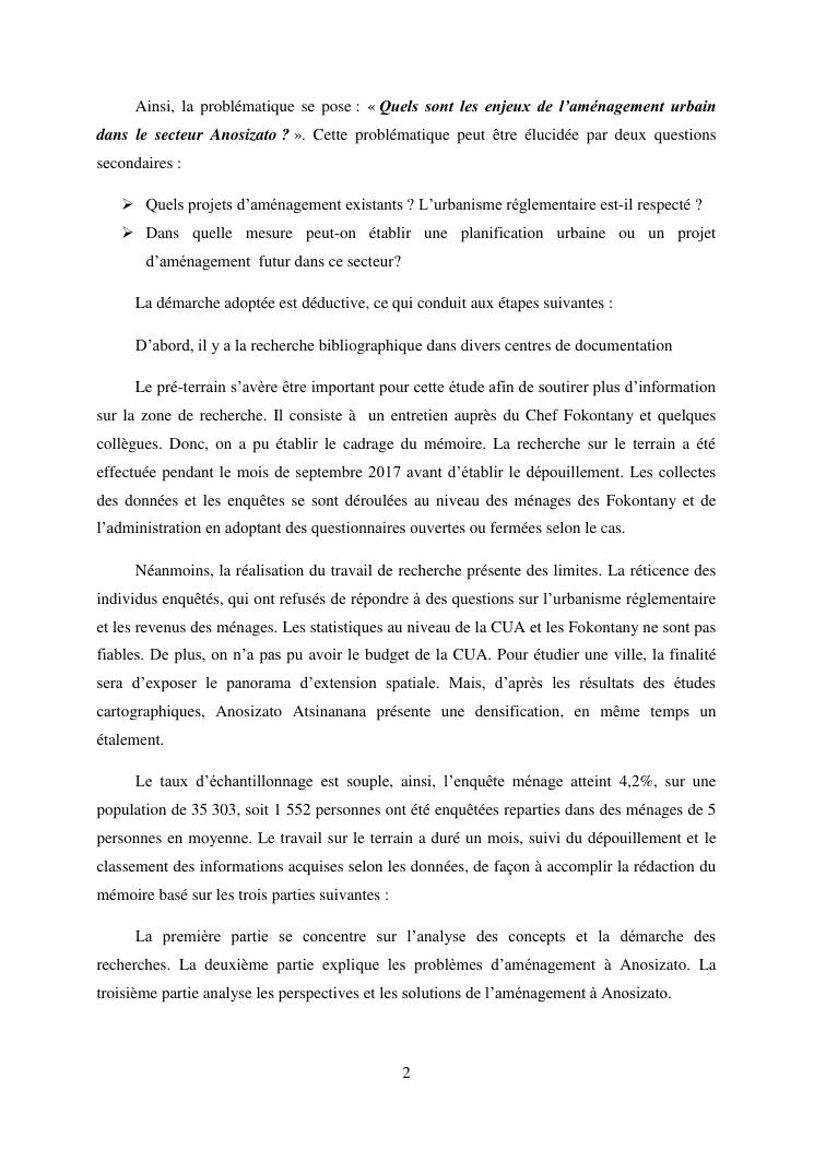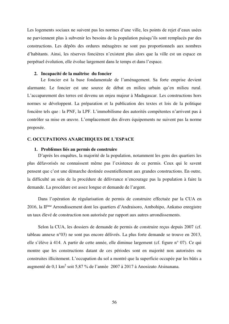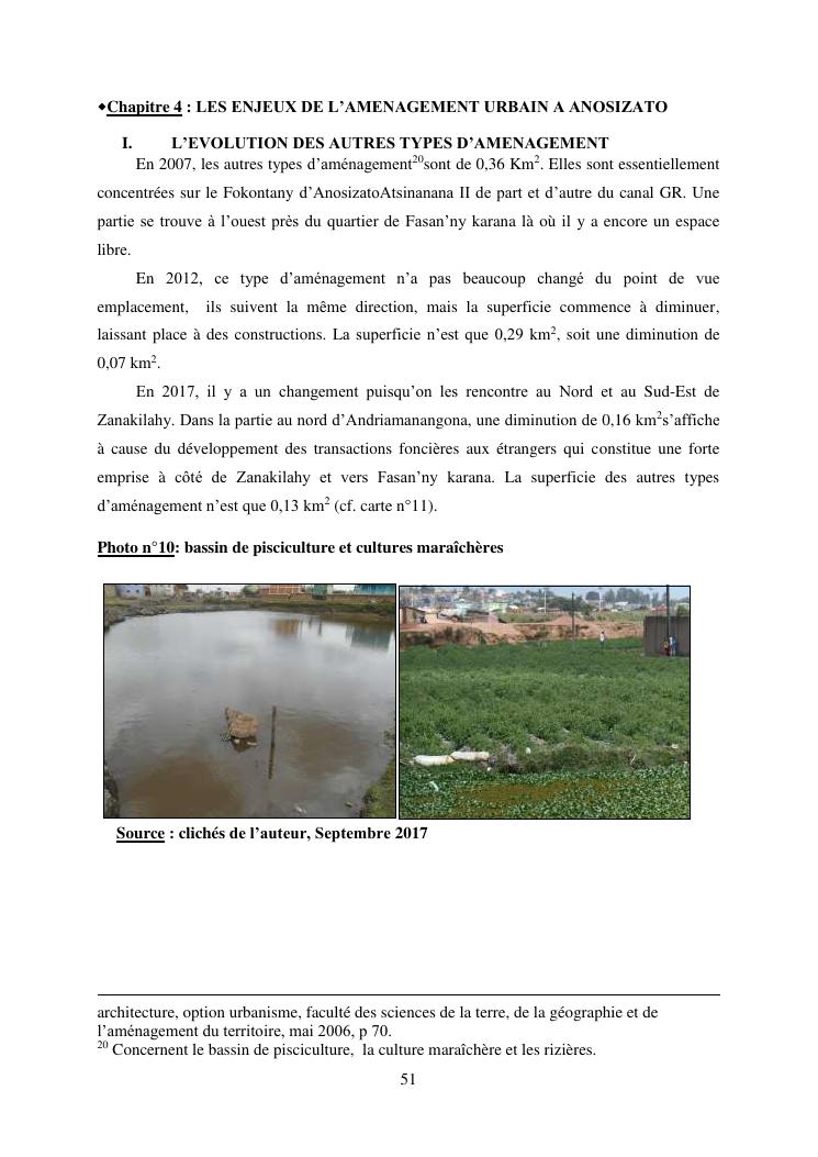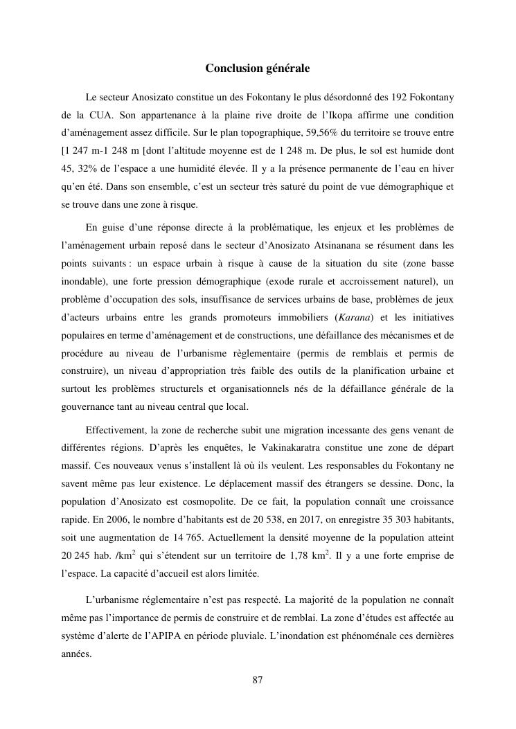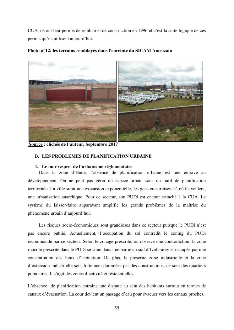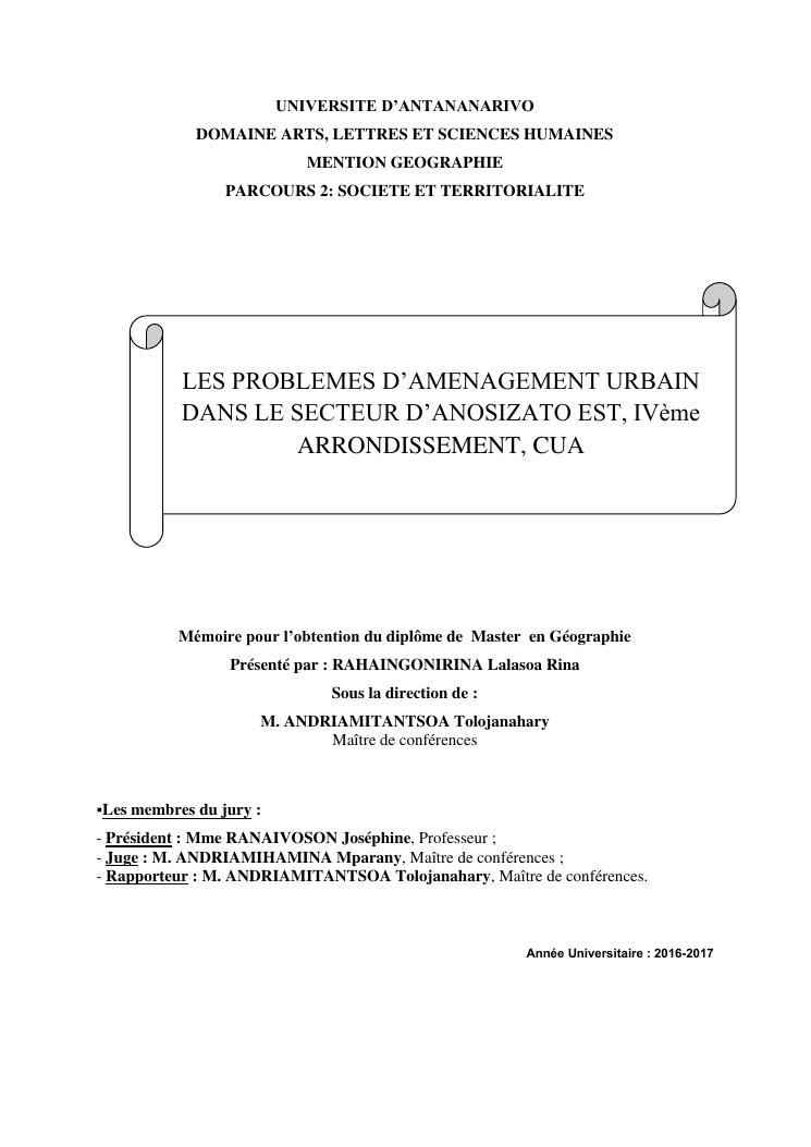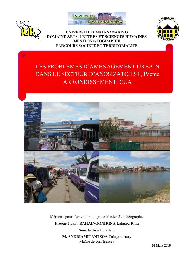 les problemes d'amenagement urbain dans le secteur d'anosizato est, ivème arrondissement, cua