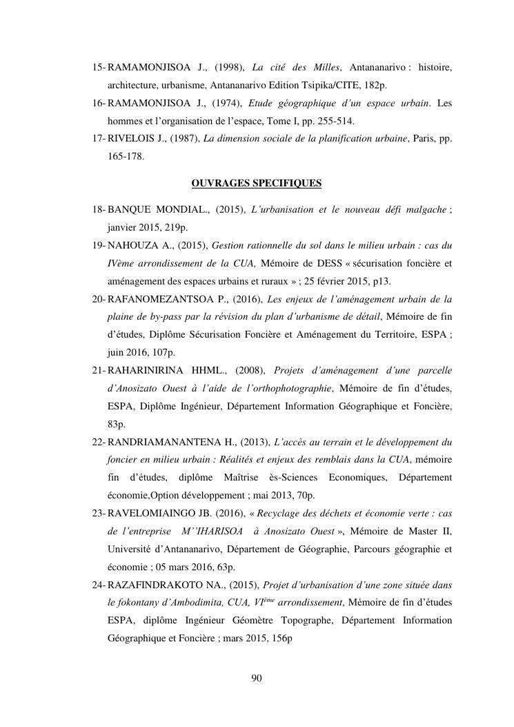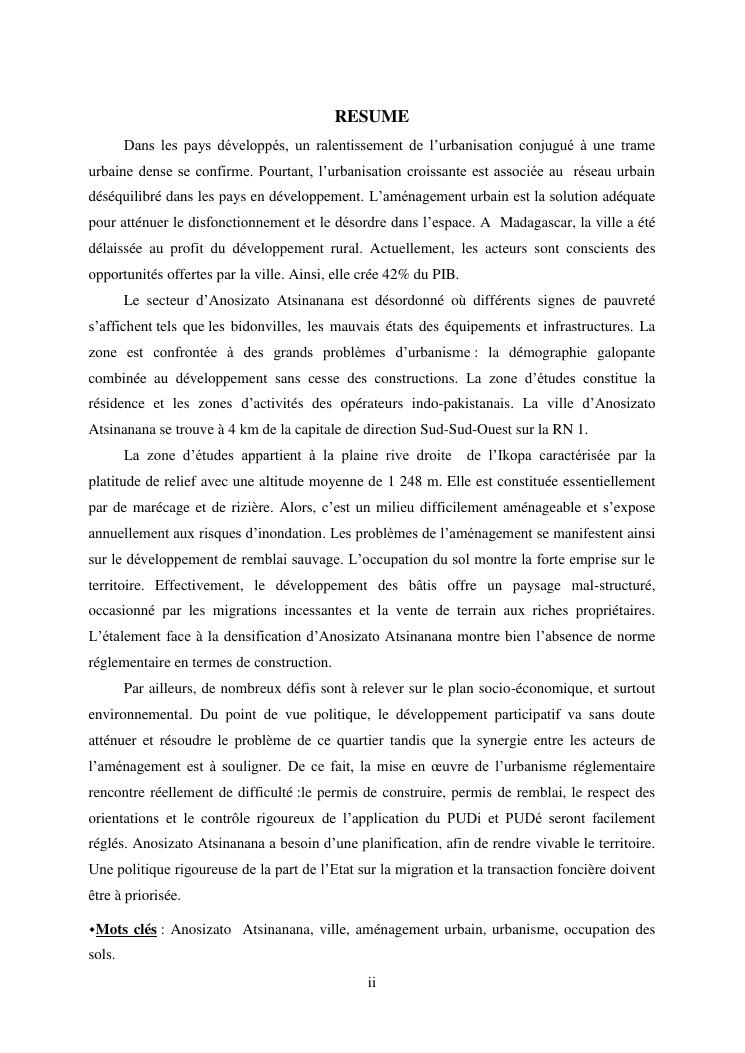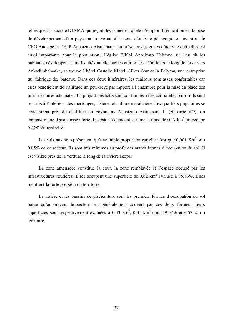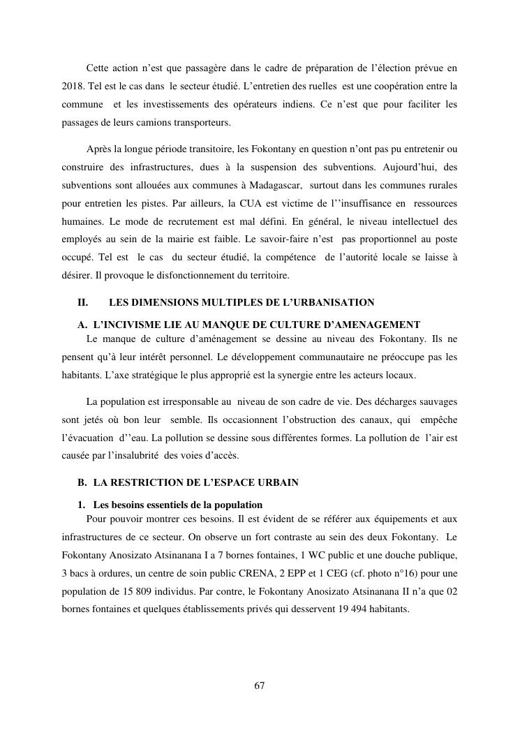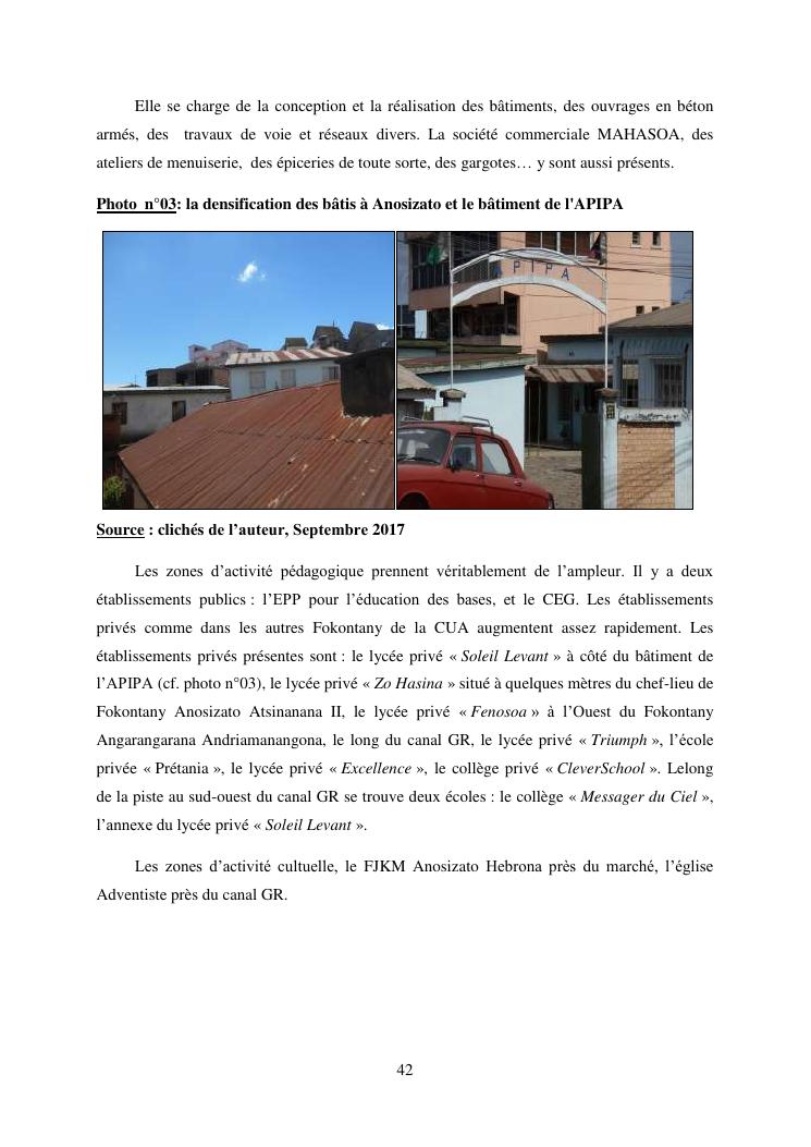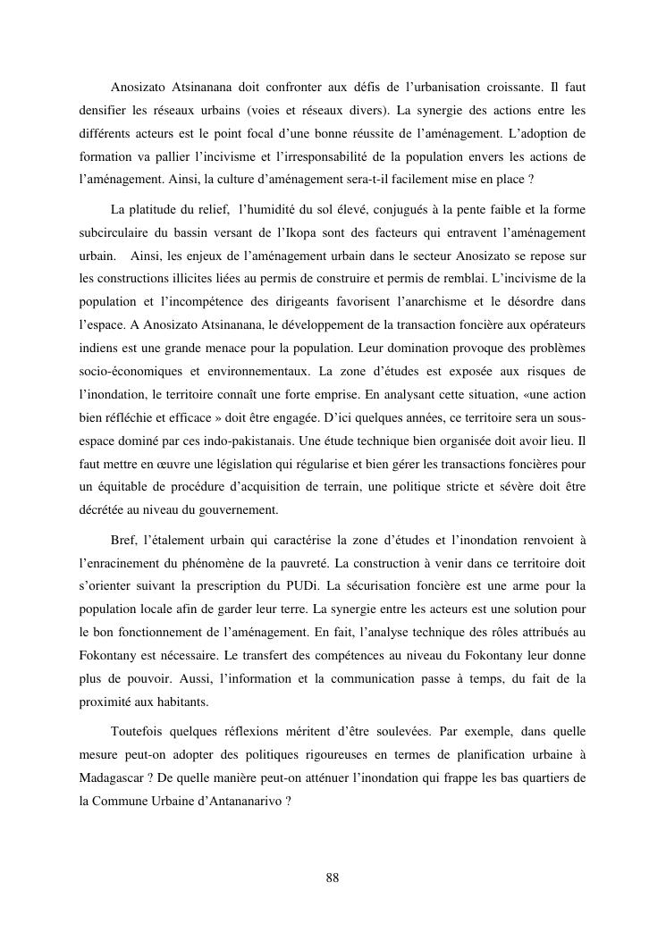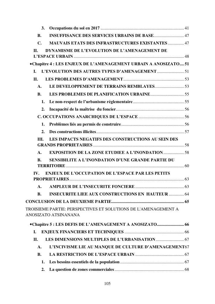 les problemes d'amenagement urbain dans le secteur d'anosizato est, ivème arrondissement, cua