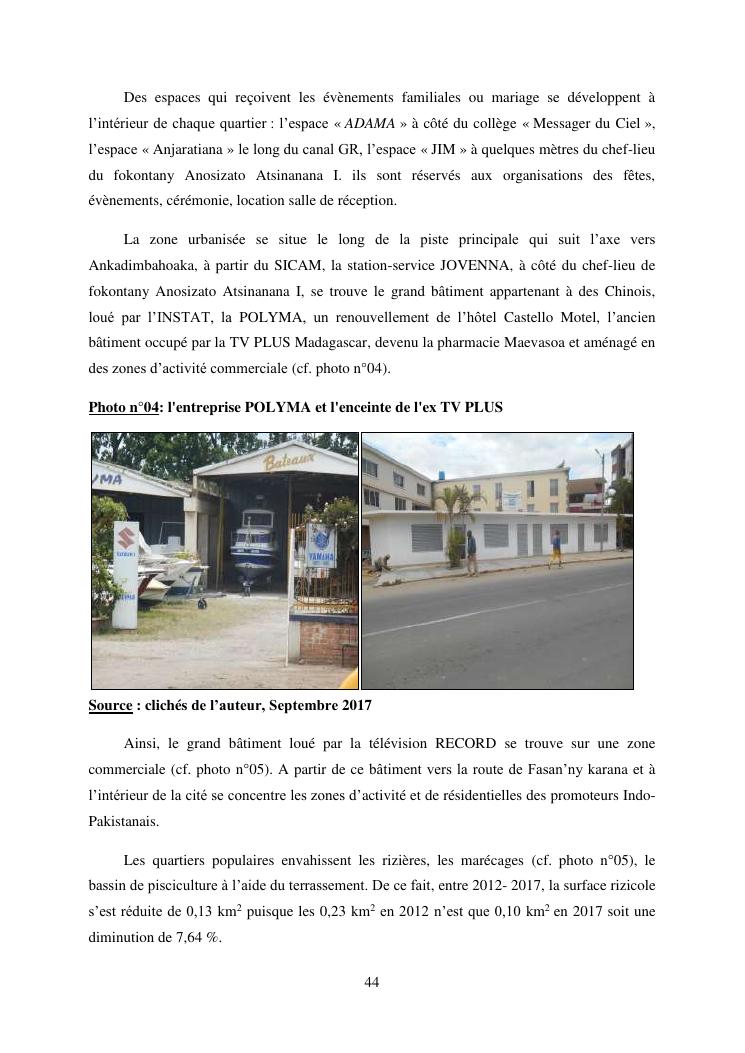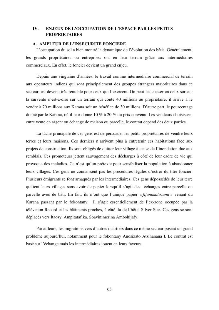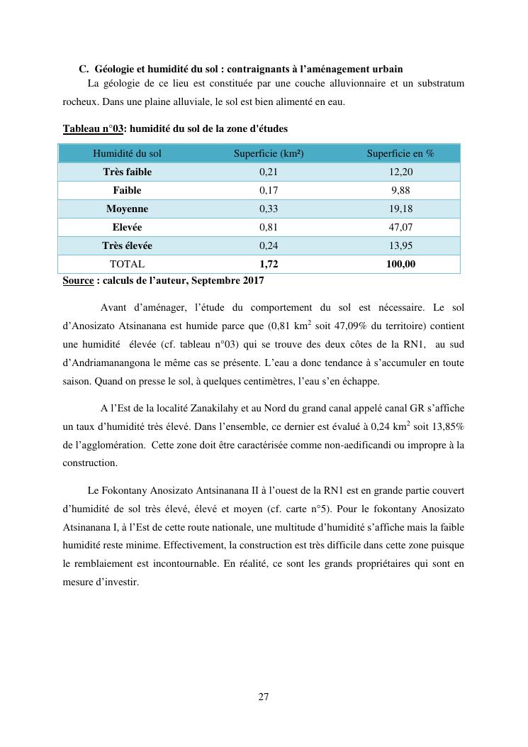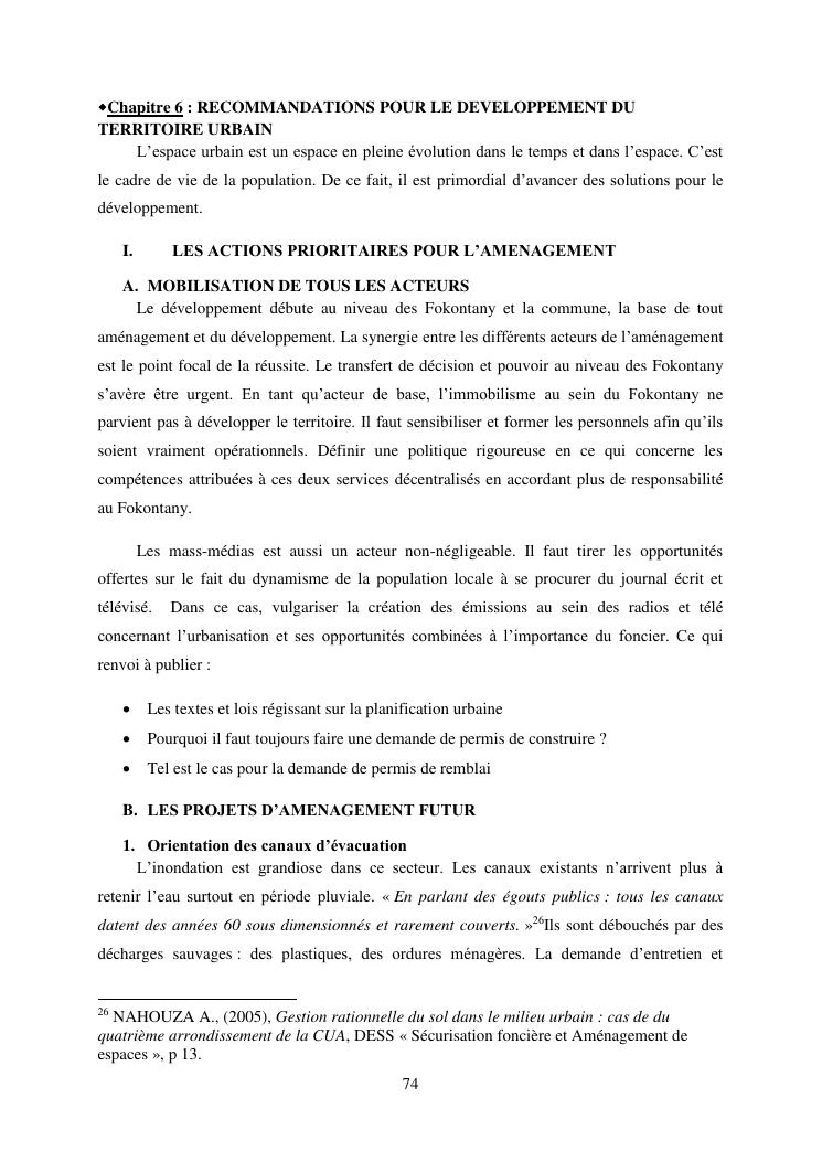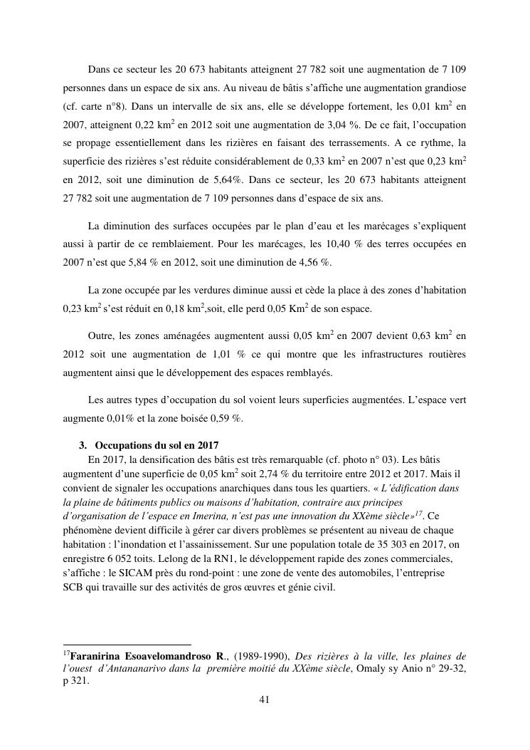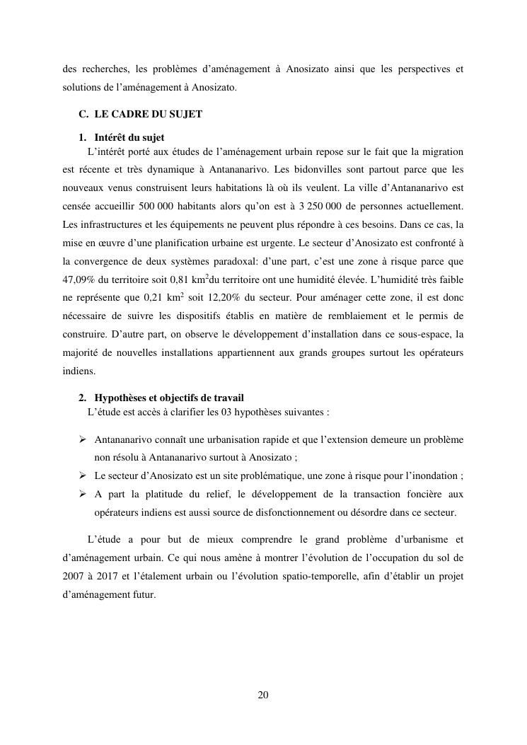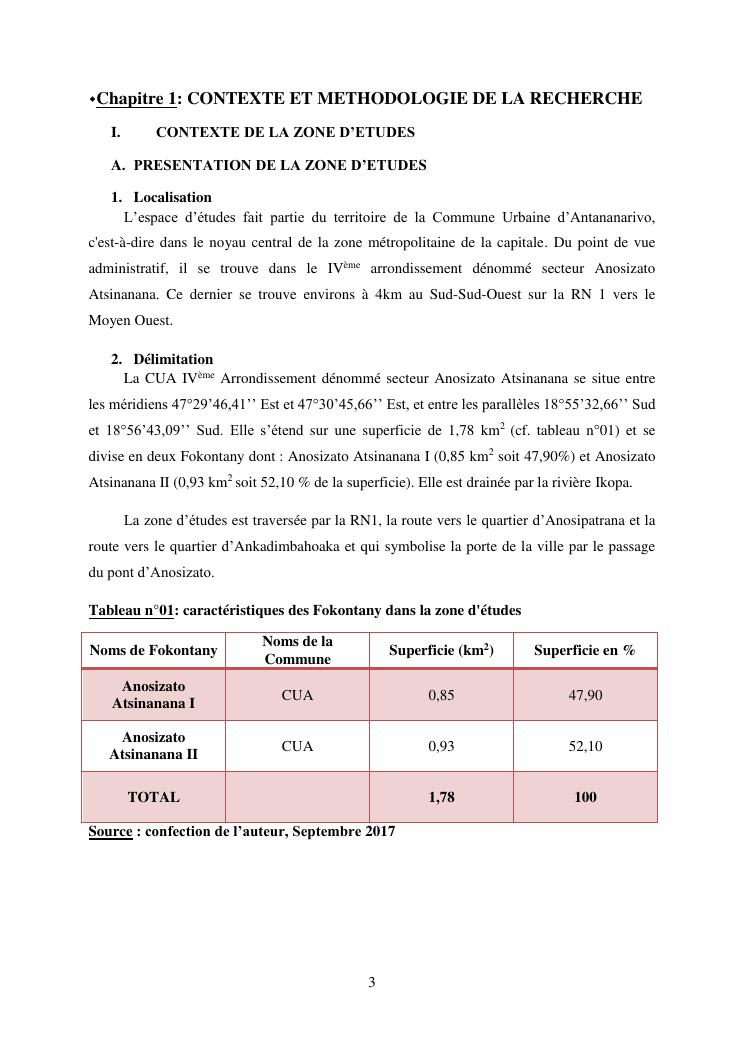 les problemes d'amenagement urbain dans le secteur d'anosizato est, ivème arrondissement, cua