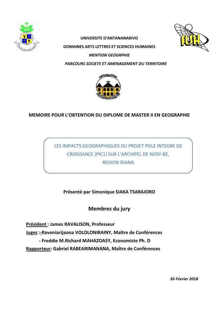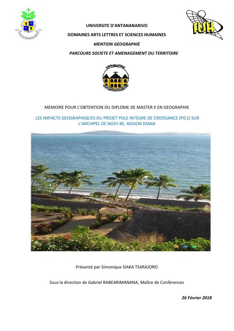 les impacts geographiques du projet pole integre de croissance (pic1) sur l'archipel de nosy-be, region diana