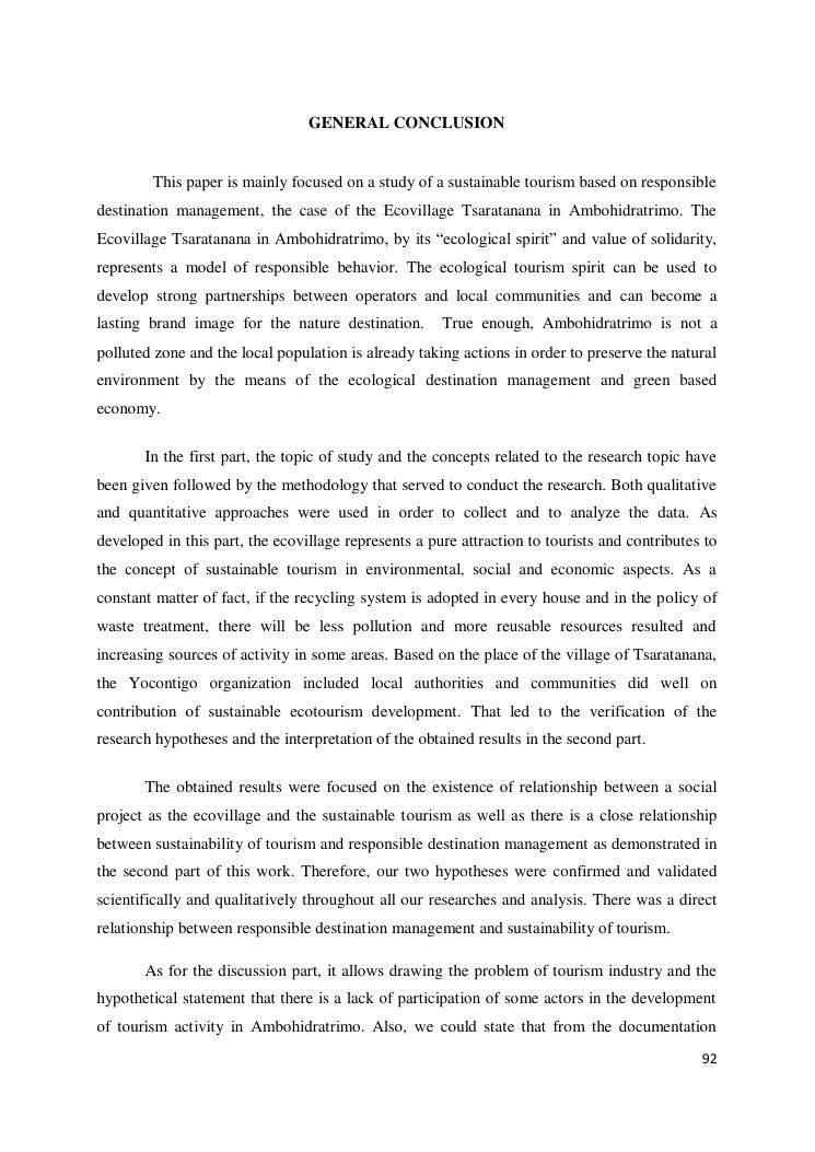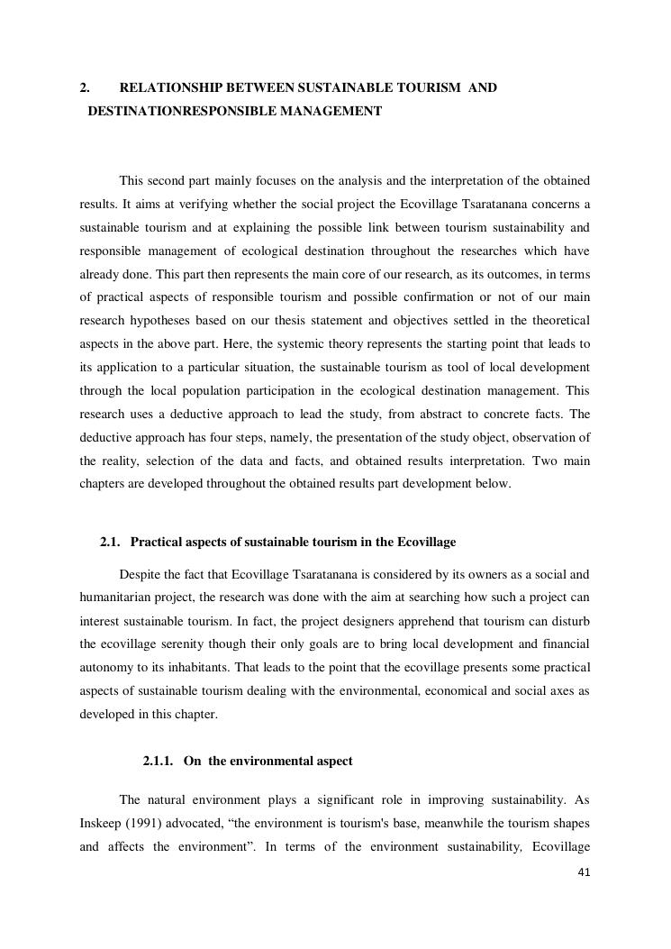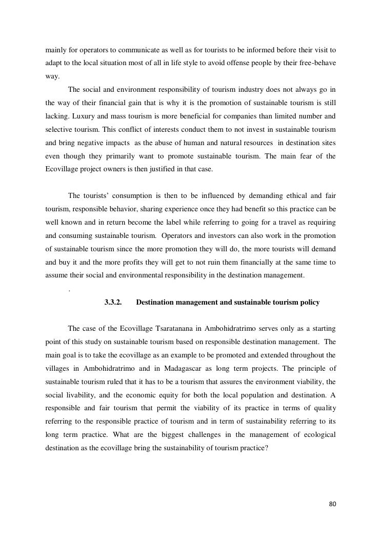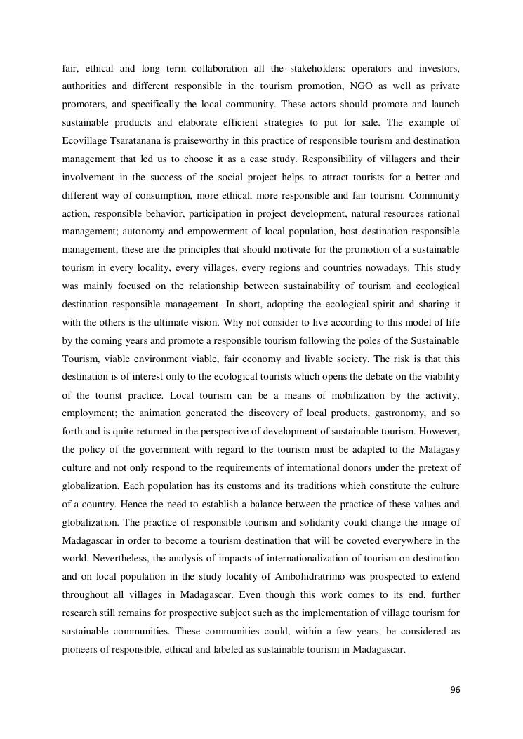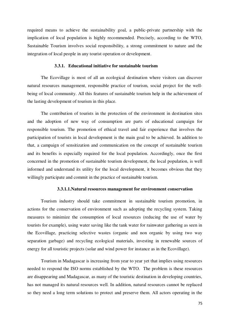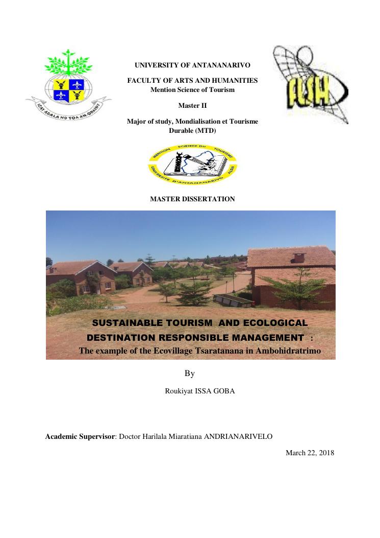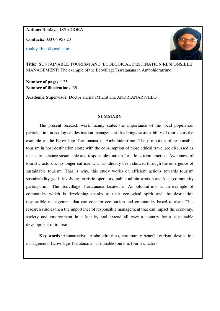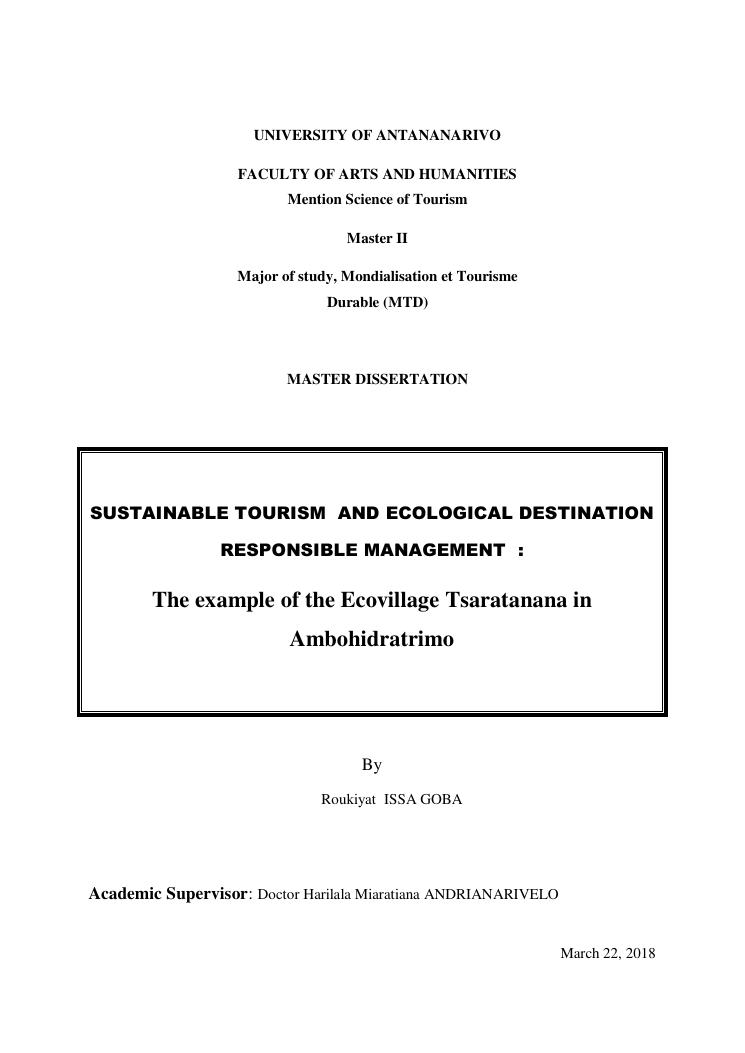 sustainable tourism and ecological destination responsible management : the example of the ecovillage tsaratanana in ambohidratrimo