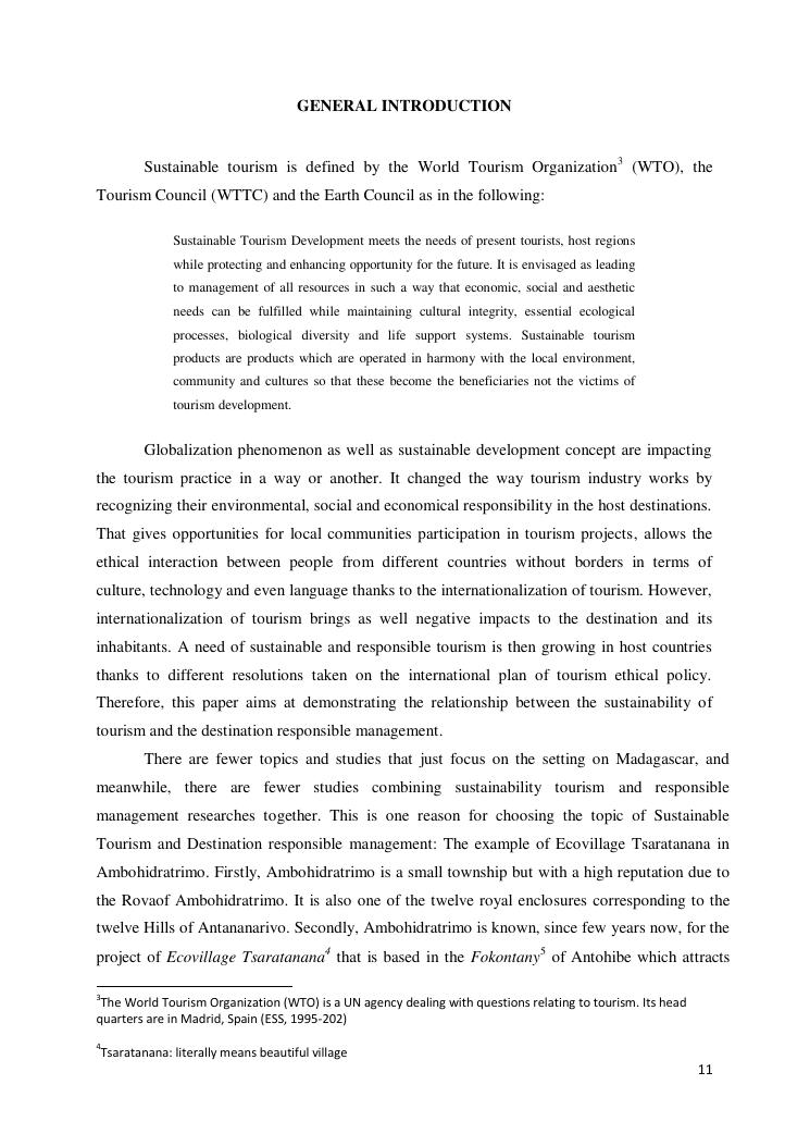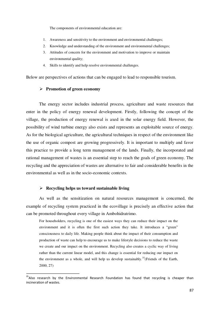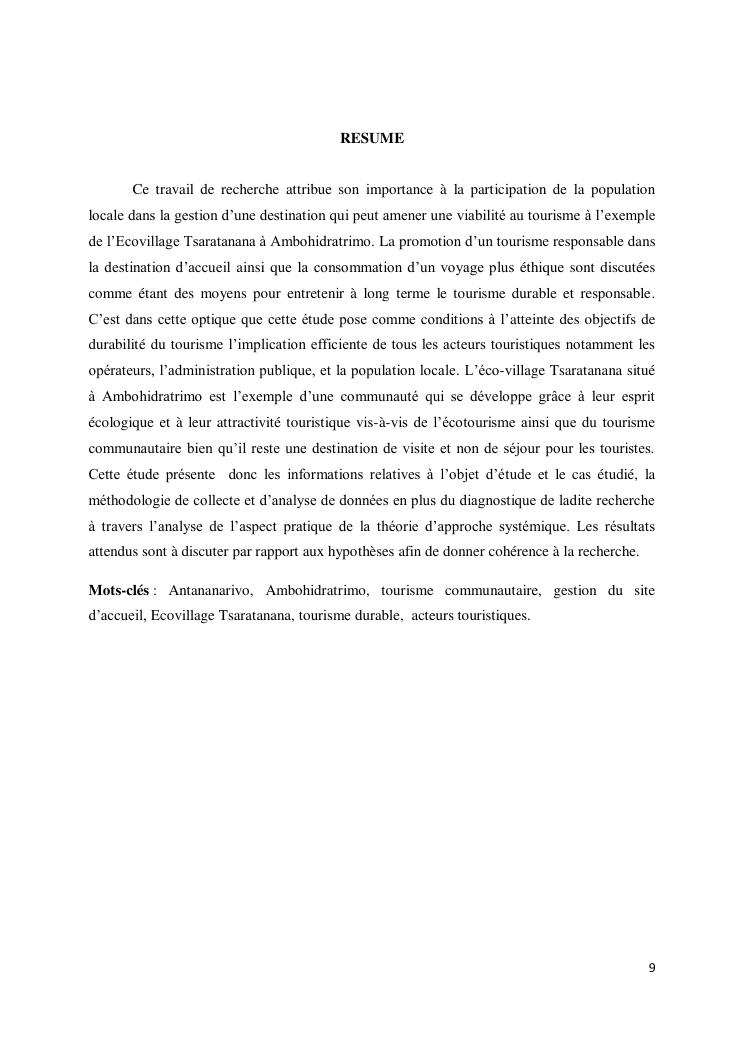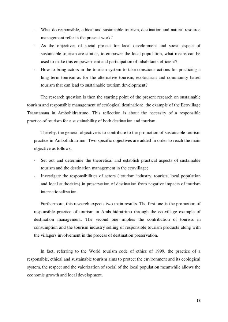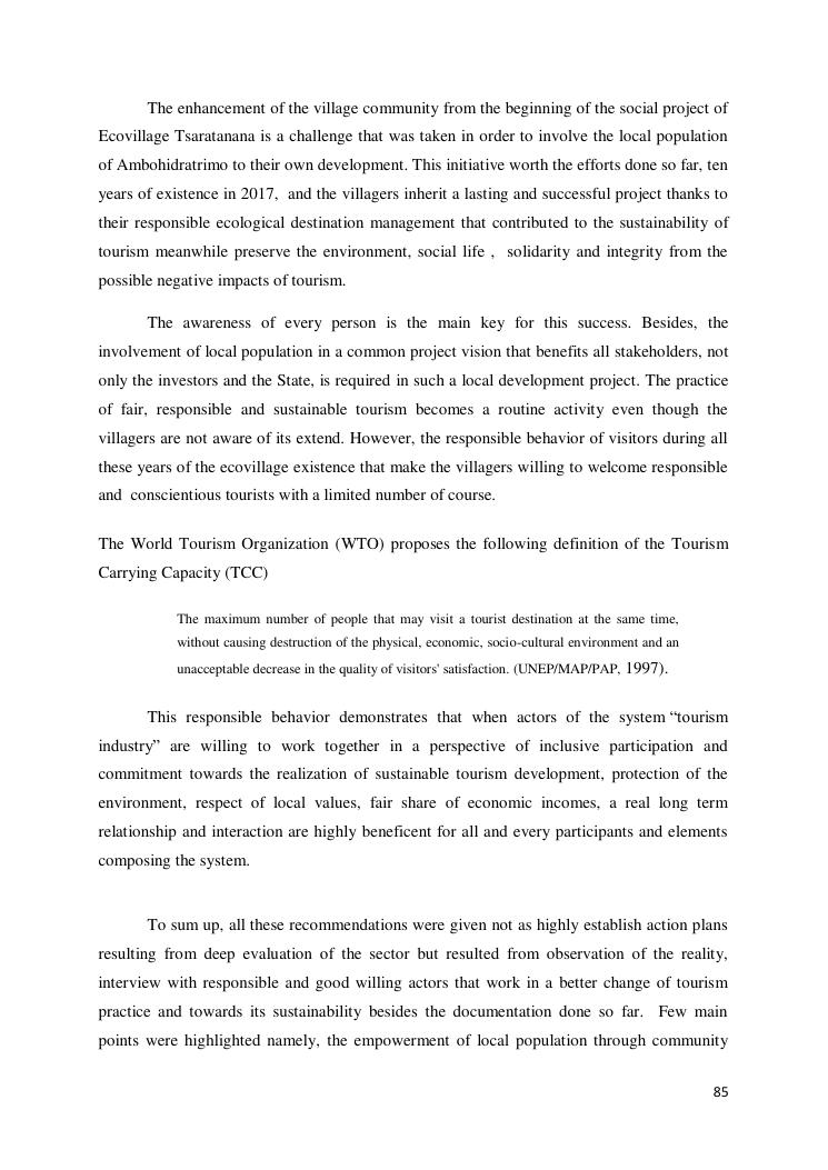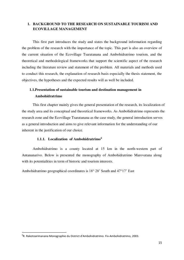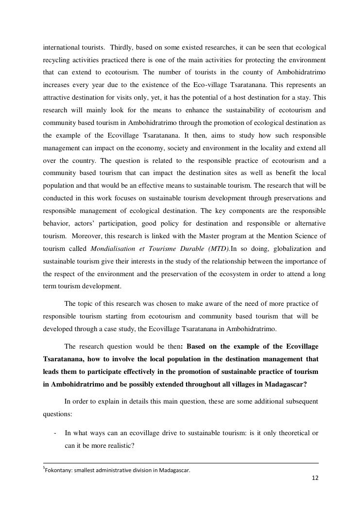 sustainable tourism and ecological destination responsible management : the example of the ecovillage tsaratanana in ambohidratrimo