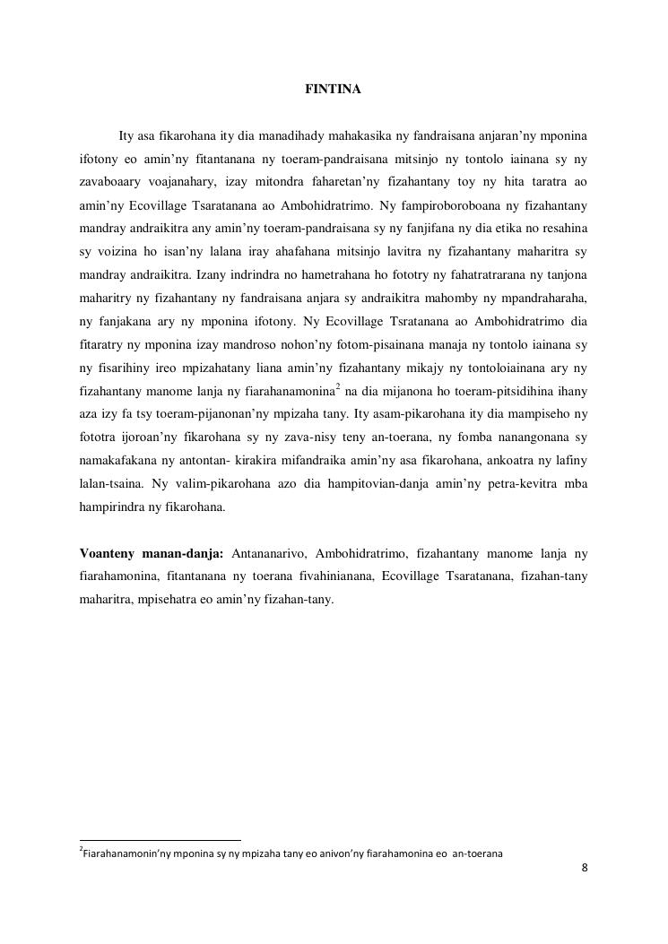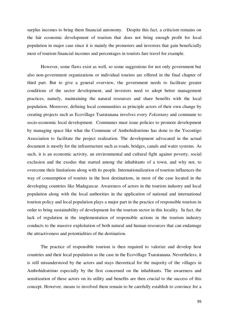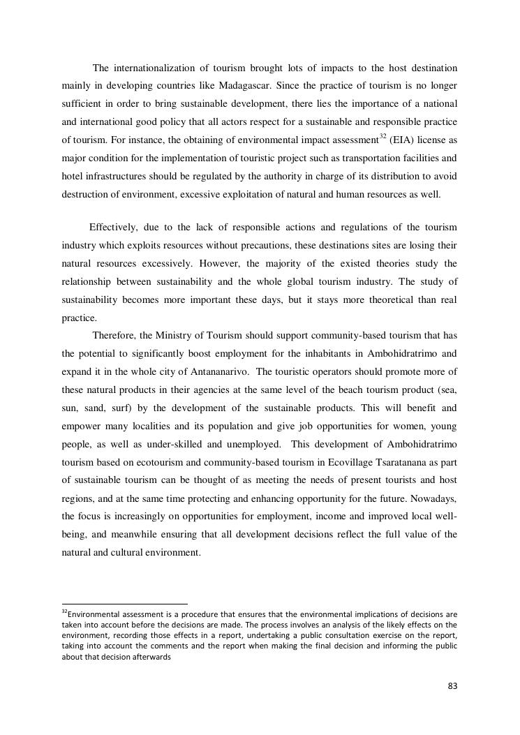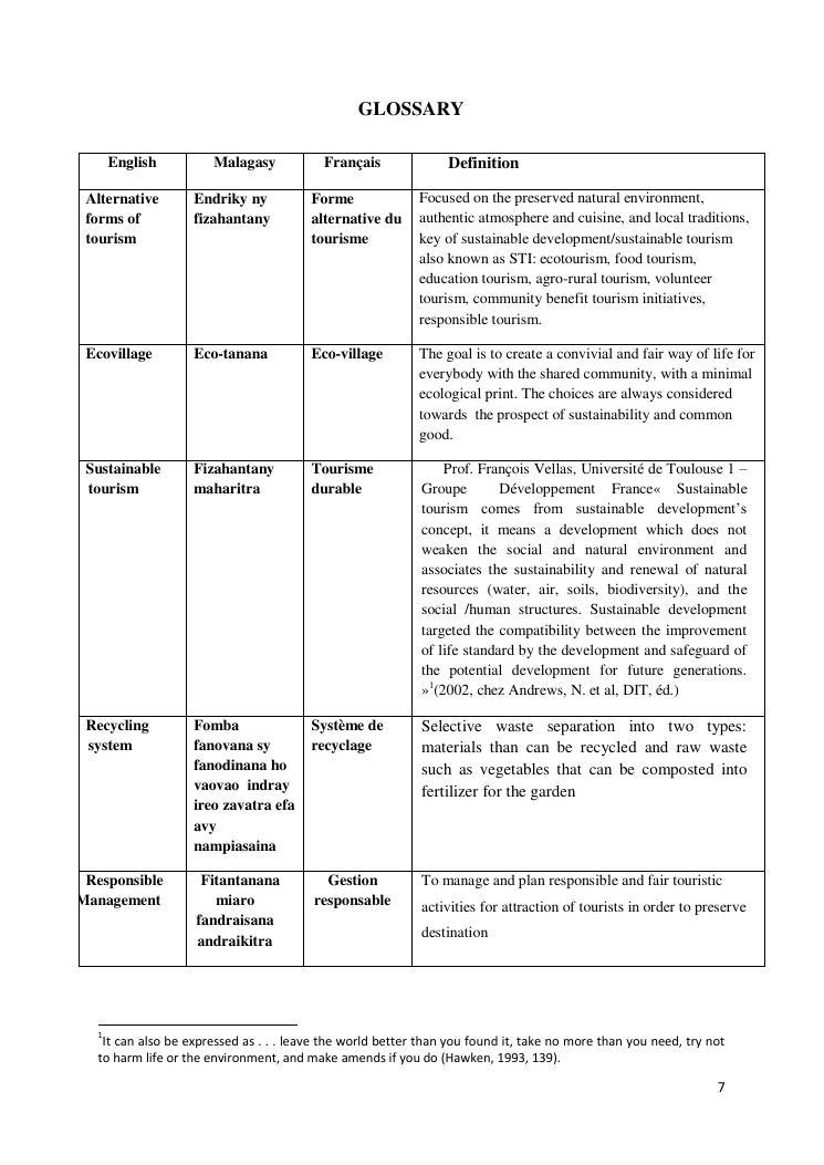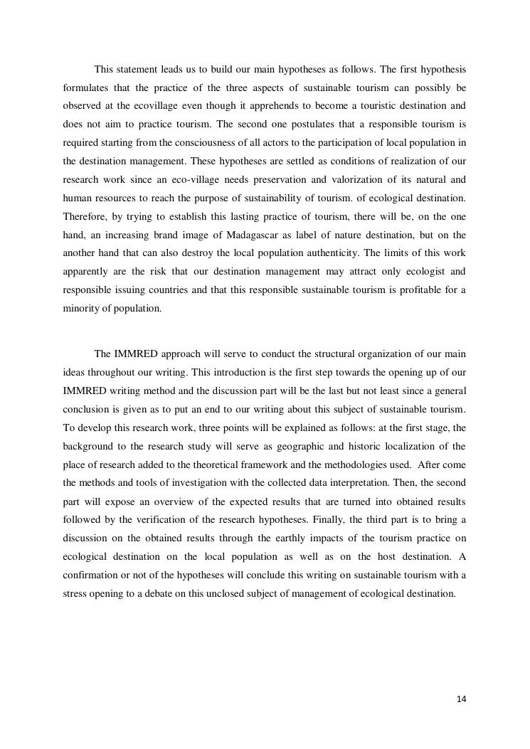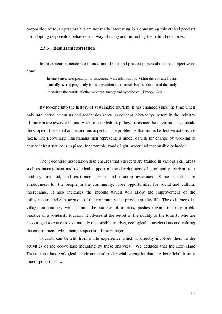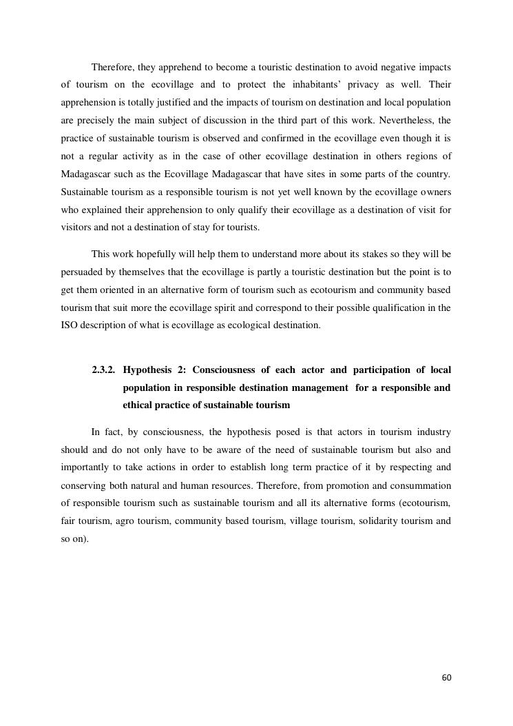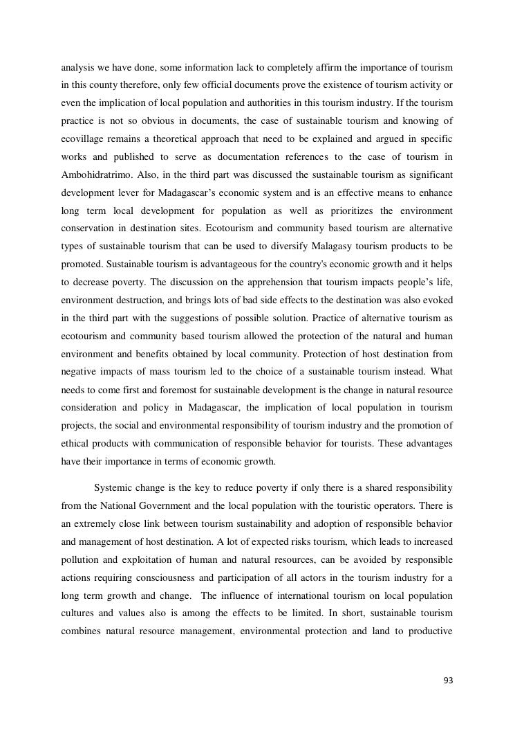 sustainable tourism and ecological destination responsible management : the example of the ecovillage tsaratanana in ambohidratrimo