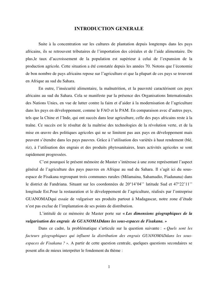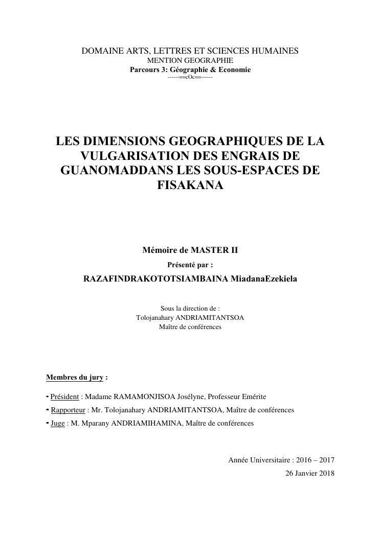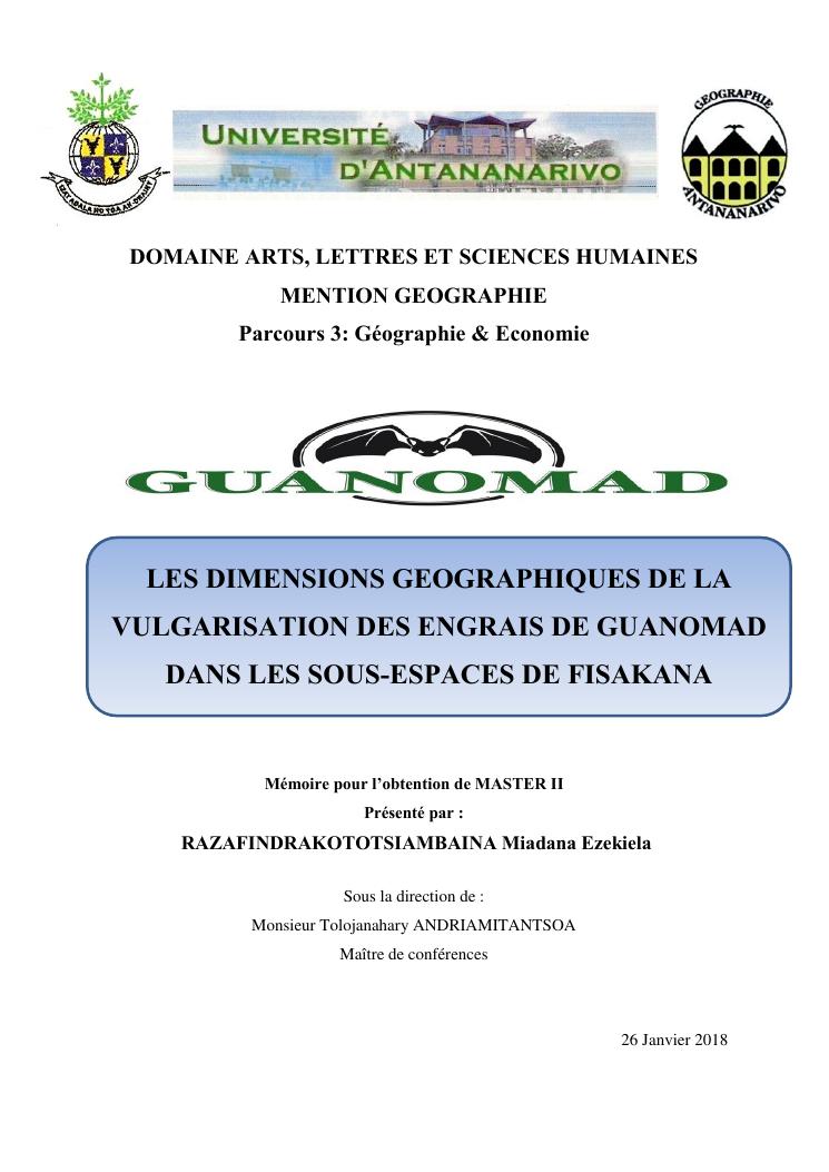 les dimensions geographiques de la vulgarisation des engrais de guanomad dans les sous-espaces de fisakana
