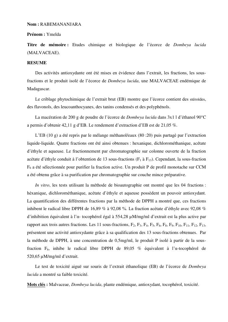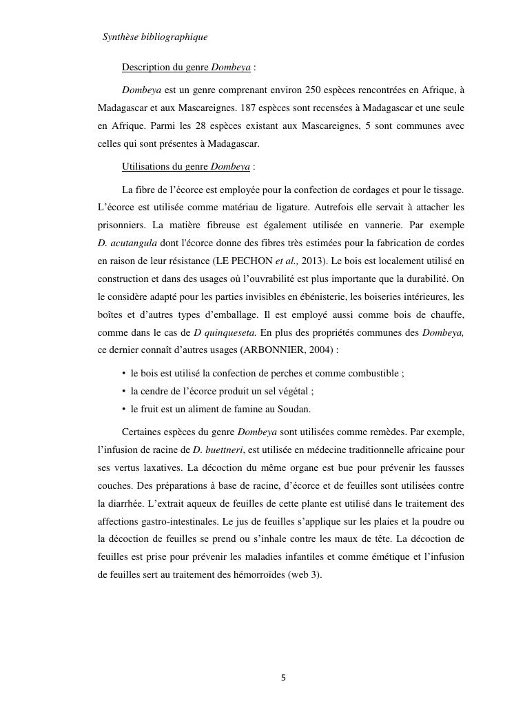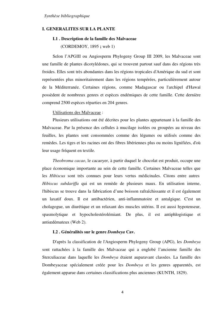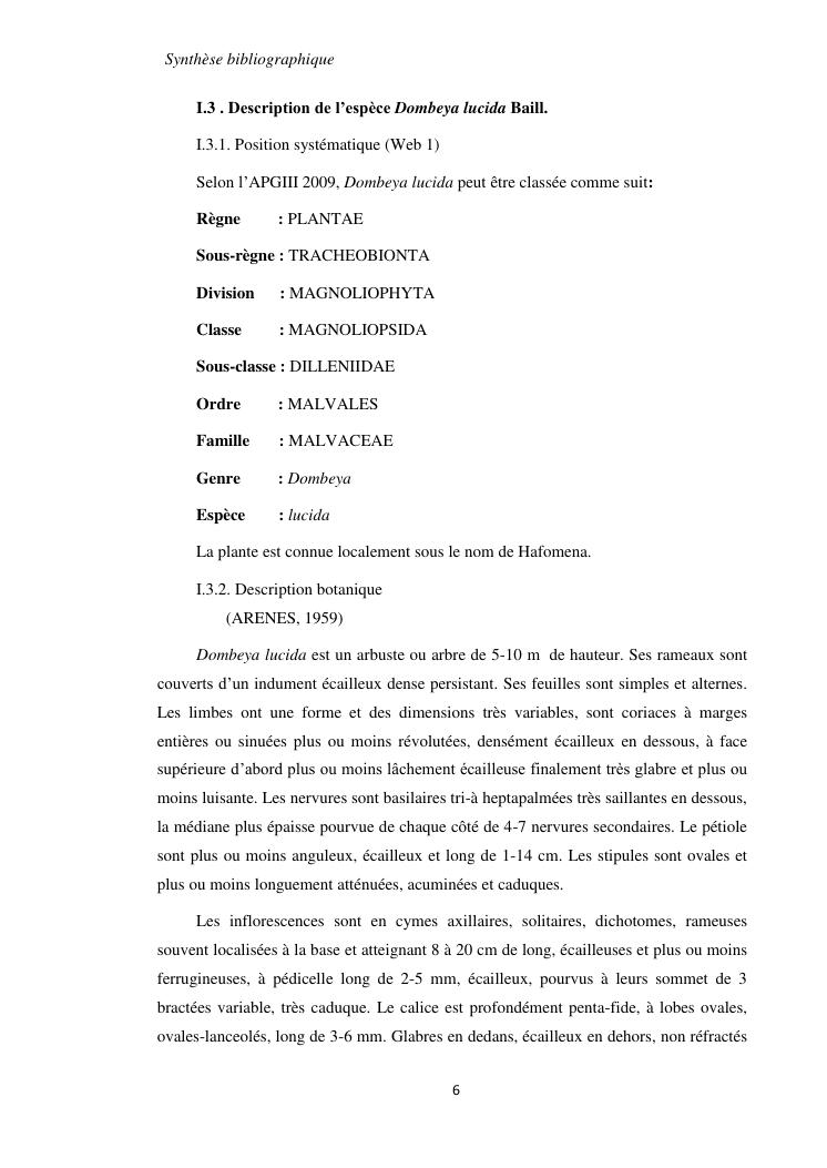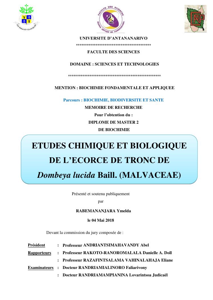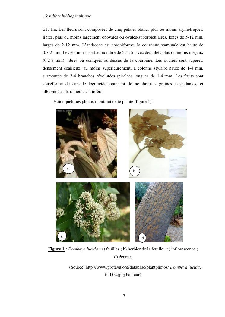 etudes chimique et biologique de l'ecorce de tronc de dombeya lucida baill. (malvaceae