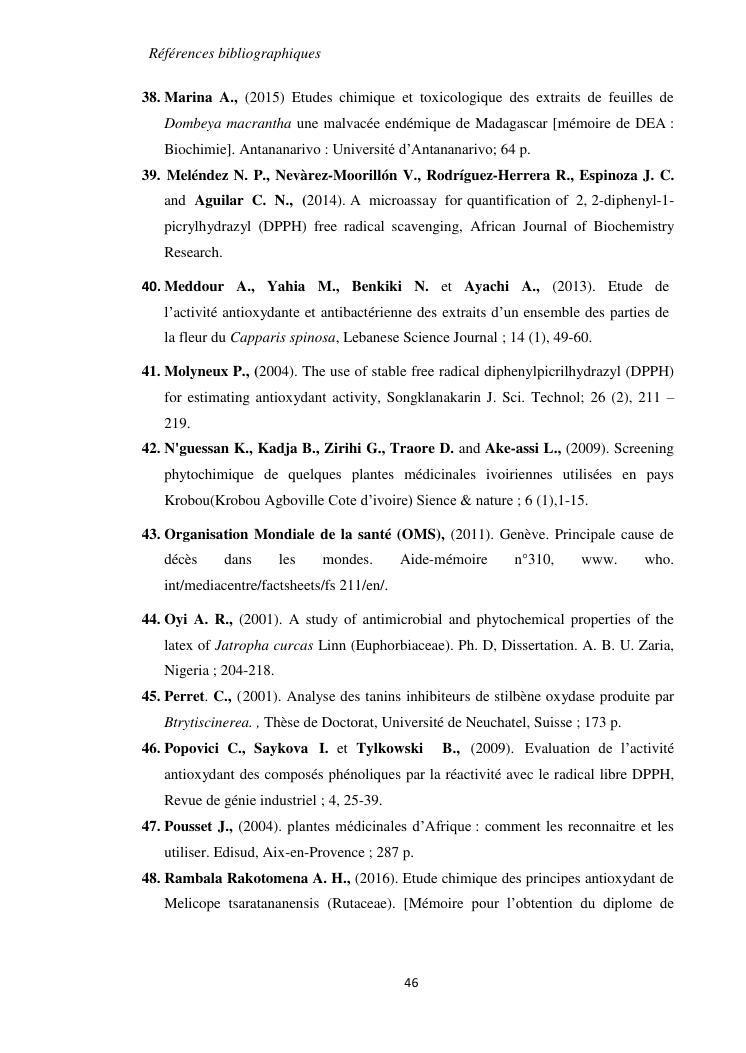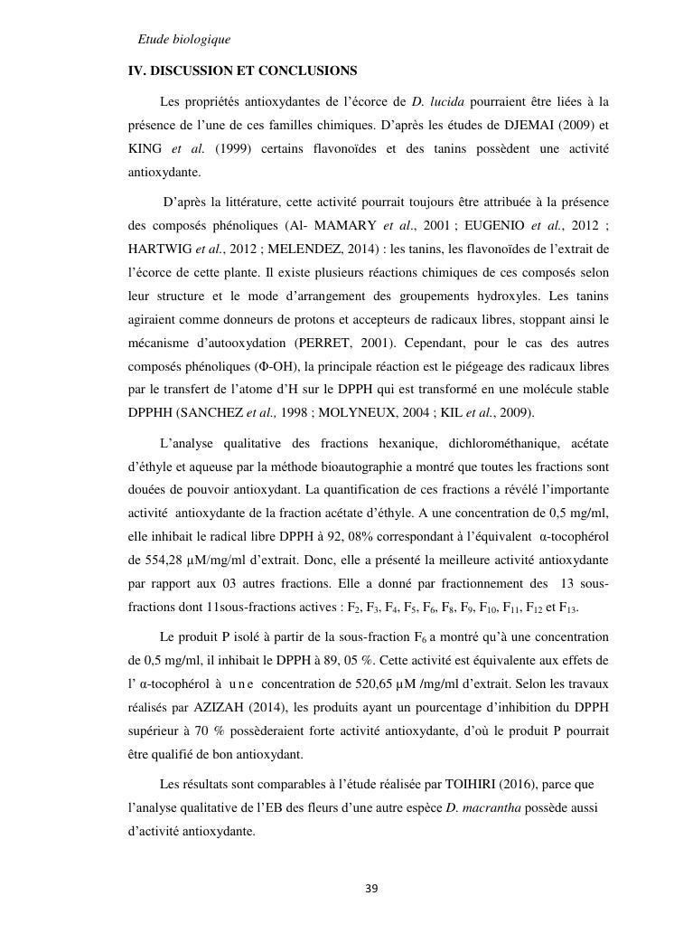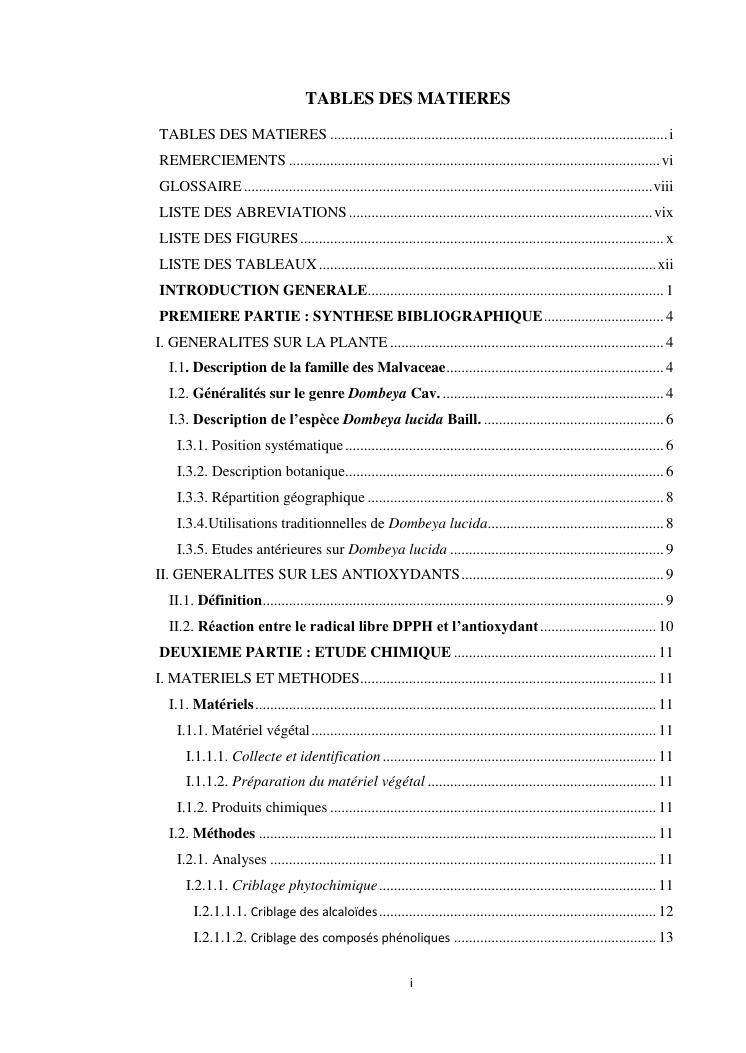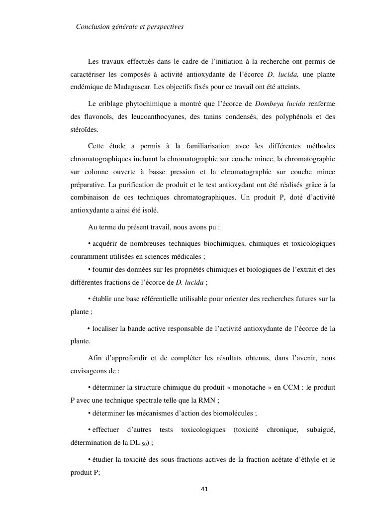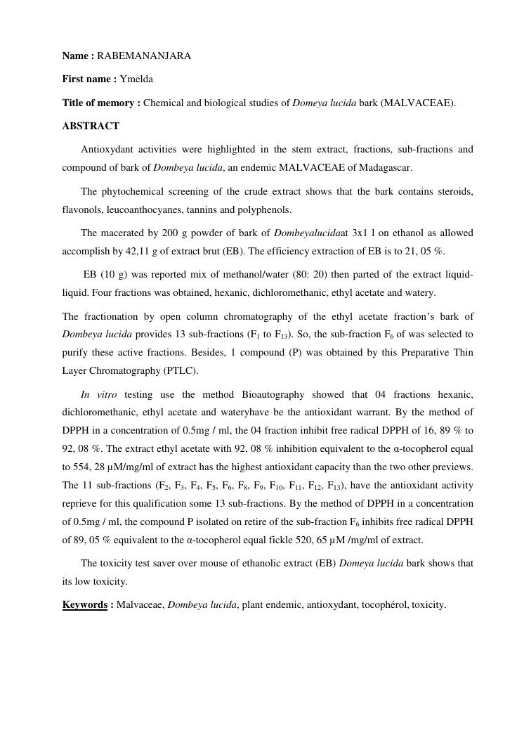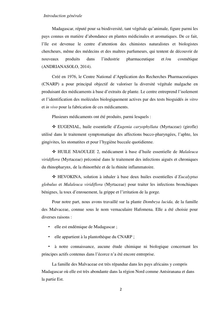 etudes chimique et biologique de l'ecorce de tronc de dombeya lucida baill. (malvaceae