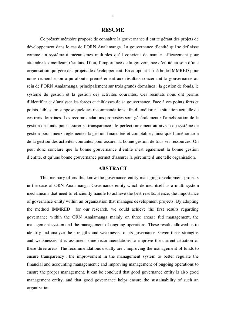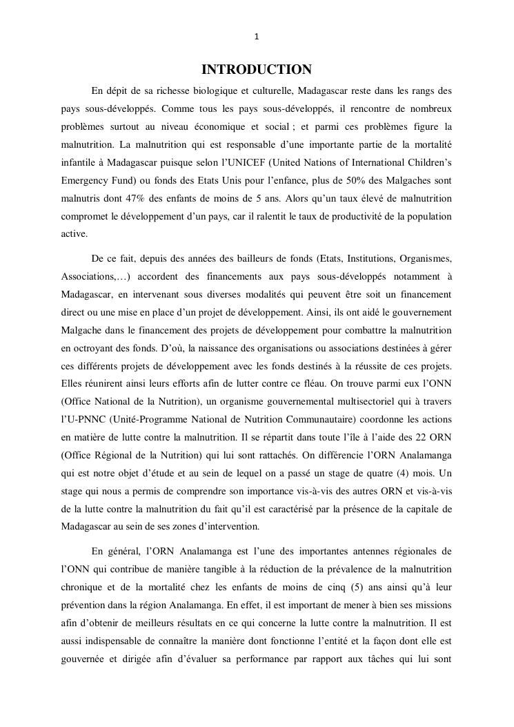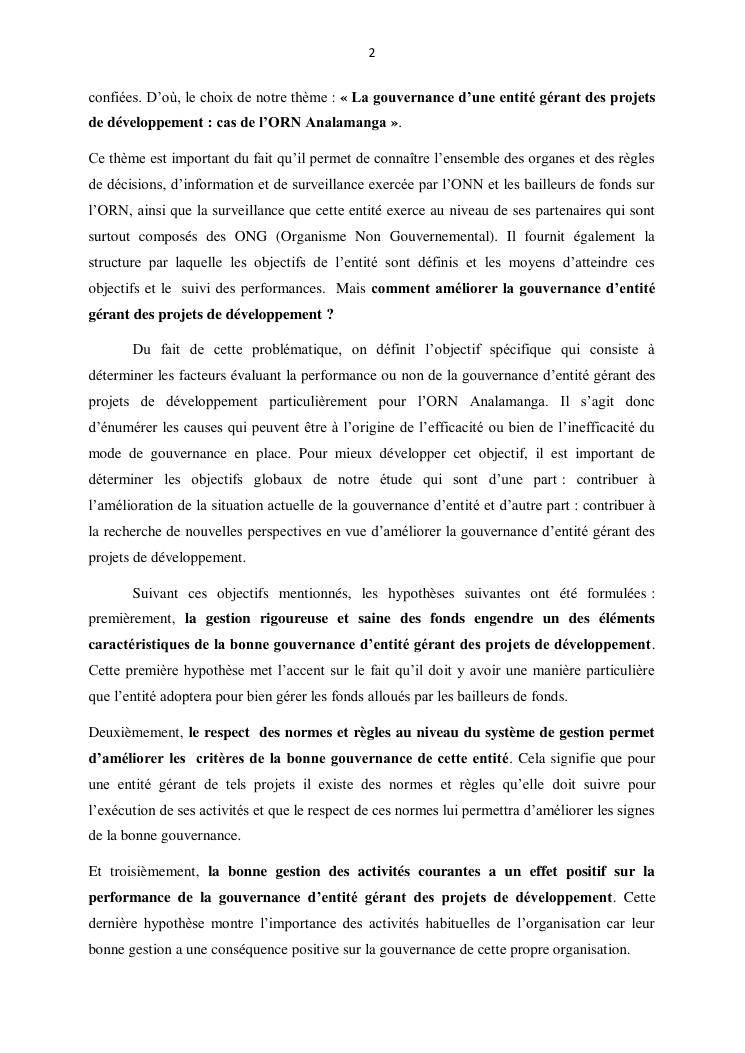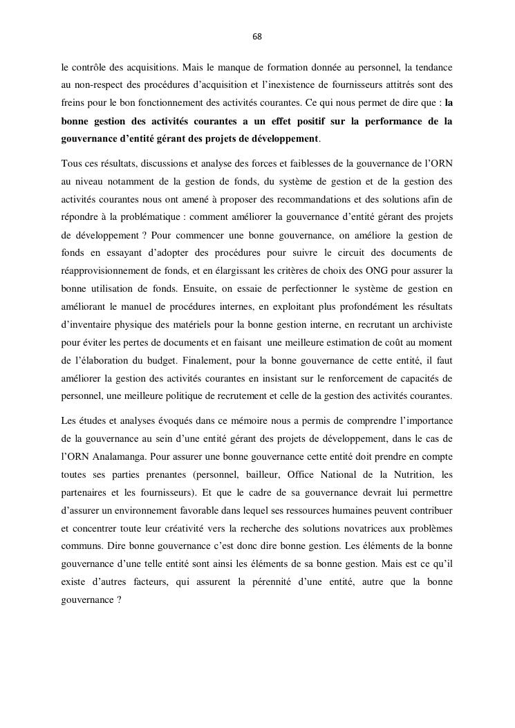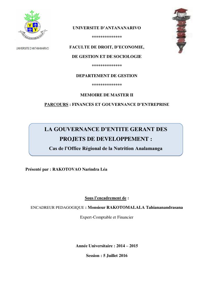 la gouvernance d'entite gerant des projets de developpement : cas de l'office régional de la nutrition analamanga