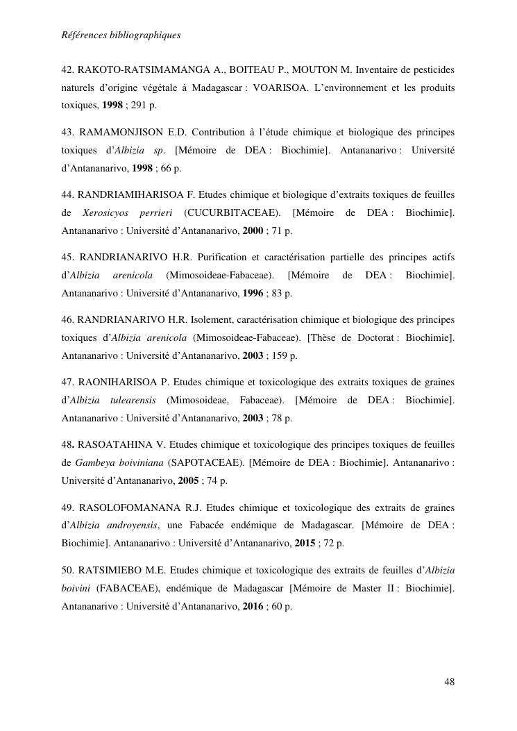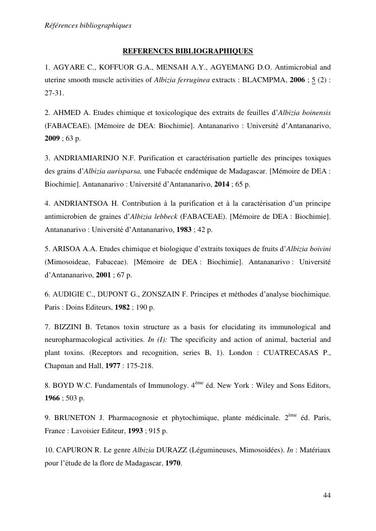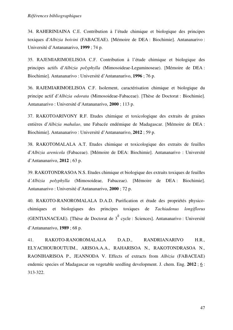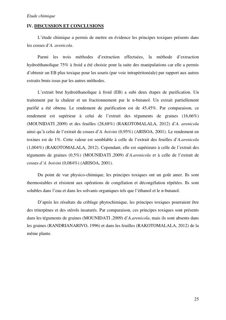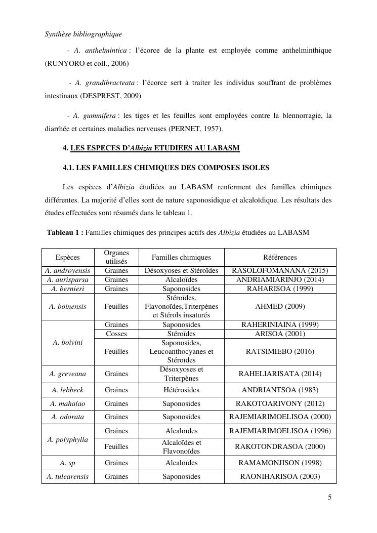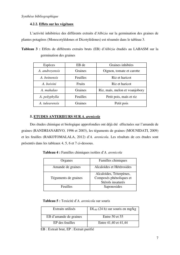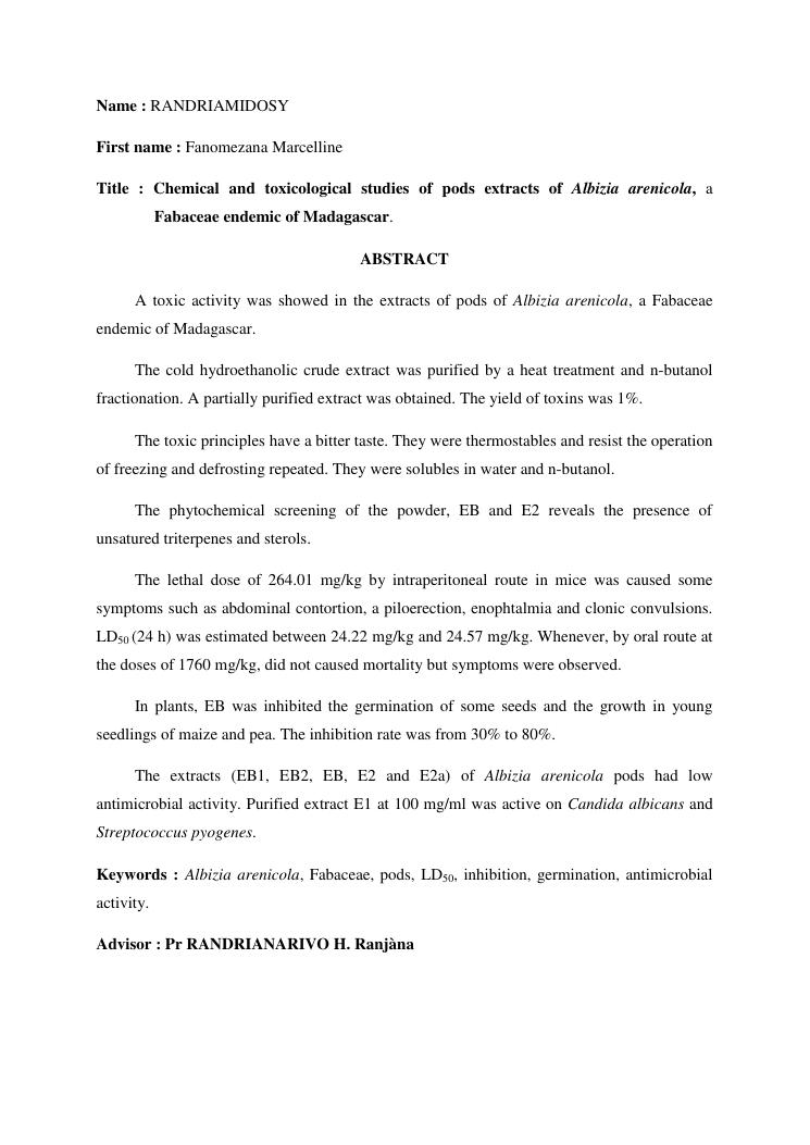etudes chimique et toxicologique des extraits de cosses d'albizia arenicola, une fabacee endemique de madagascar