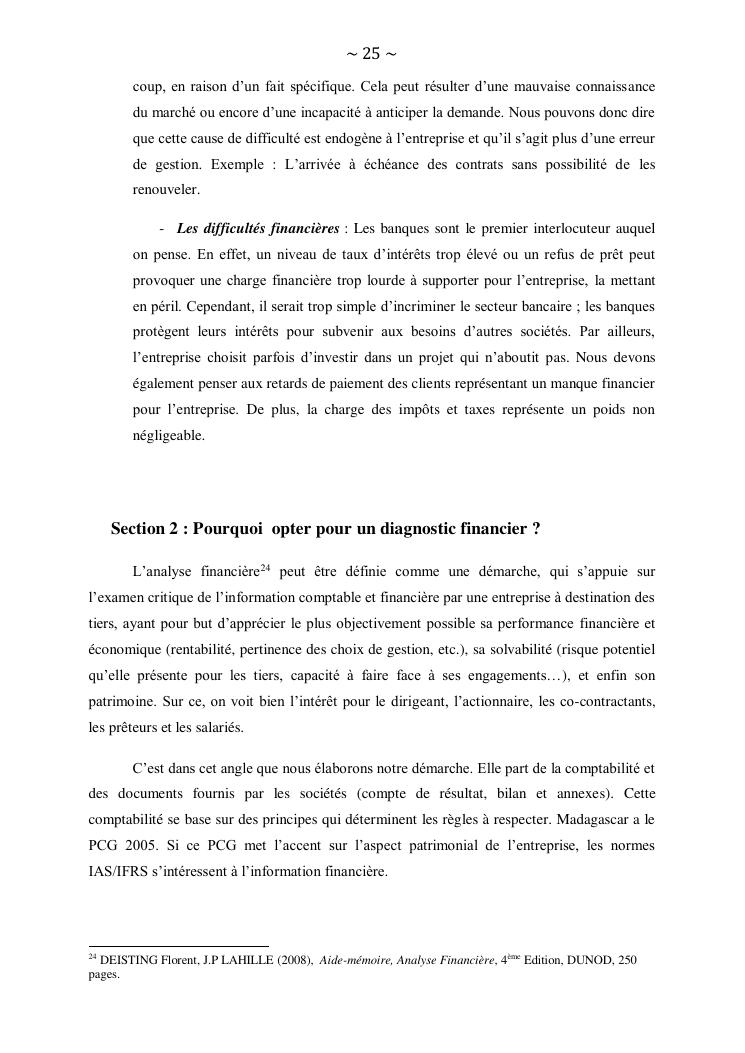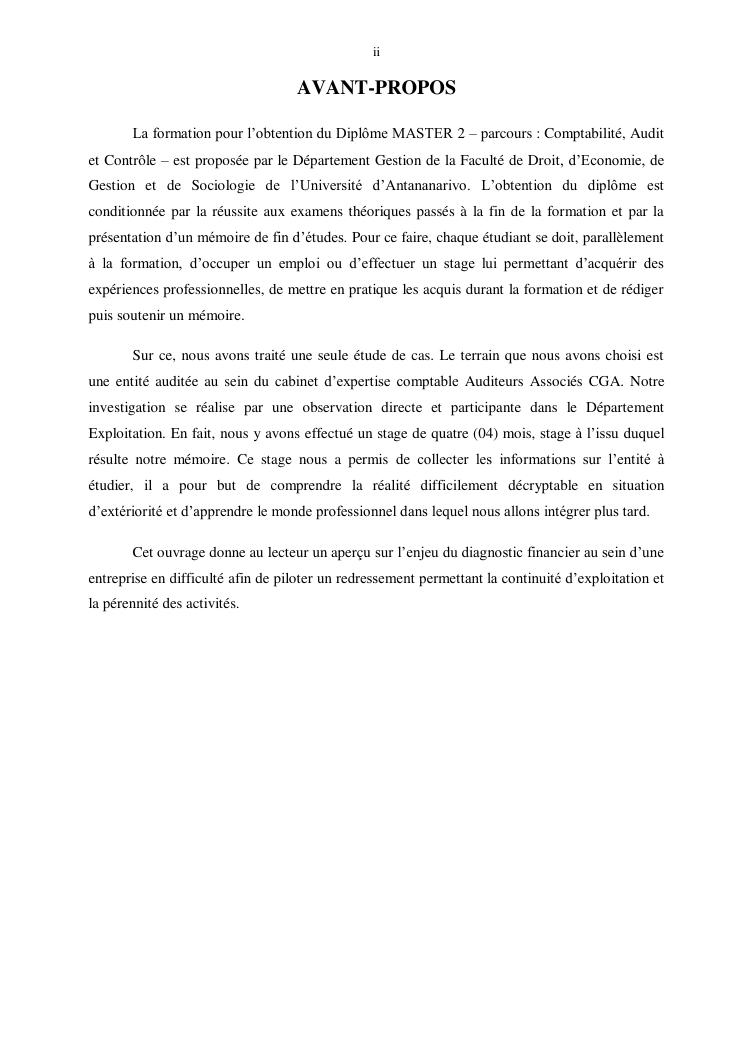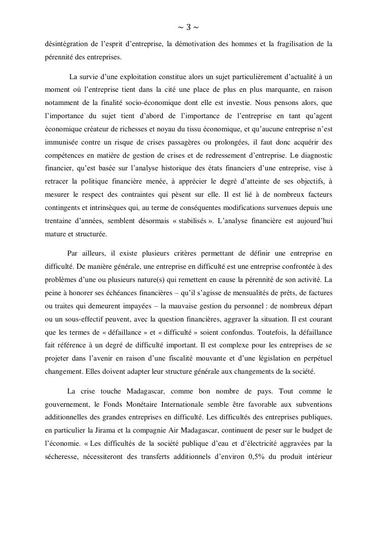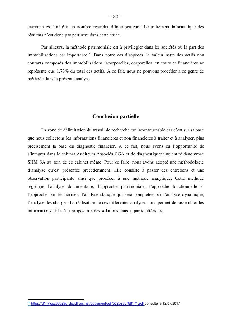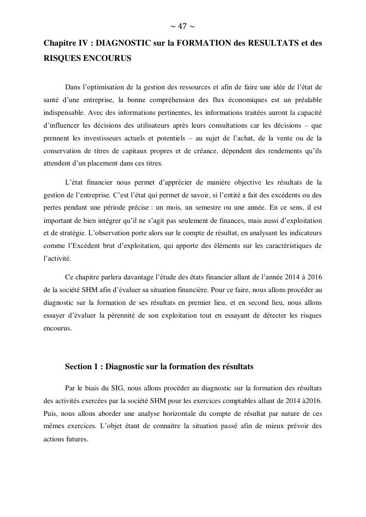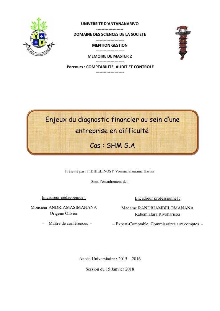 enjeux du diagnostic financier au sein d'une entreprise en difficulté. cas : shm s.a