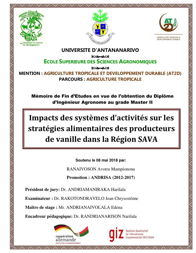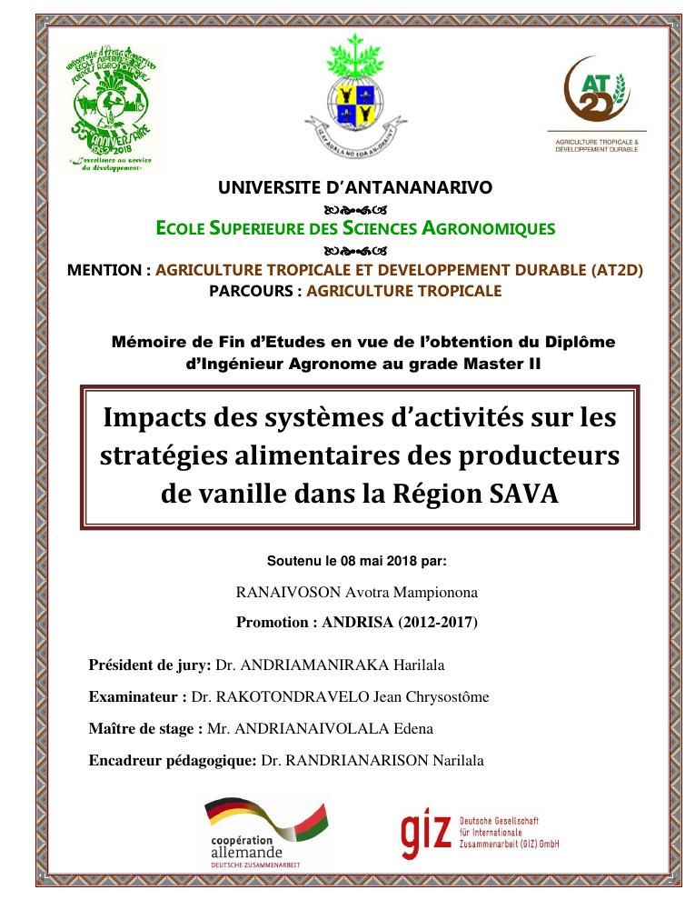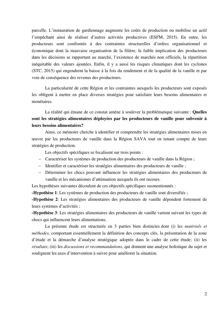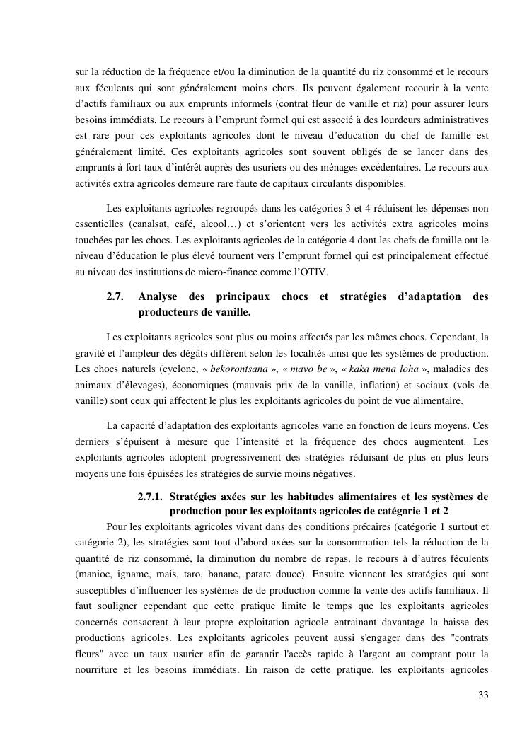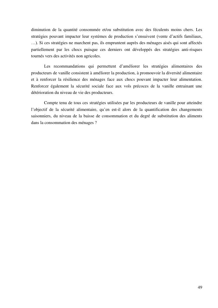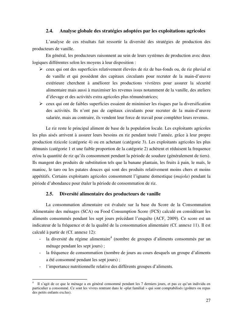 impacts des systèmes d'activités sur les stratégies alimentaires des producteurs de vanille dans la région sava