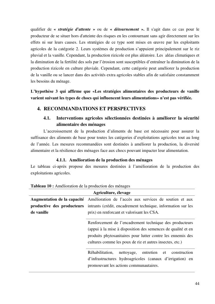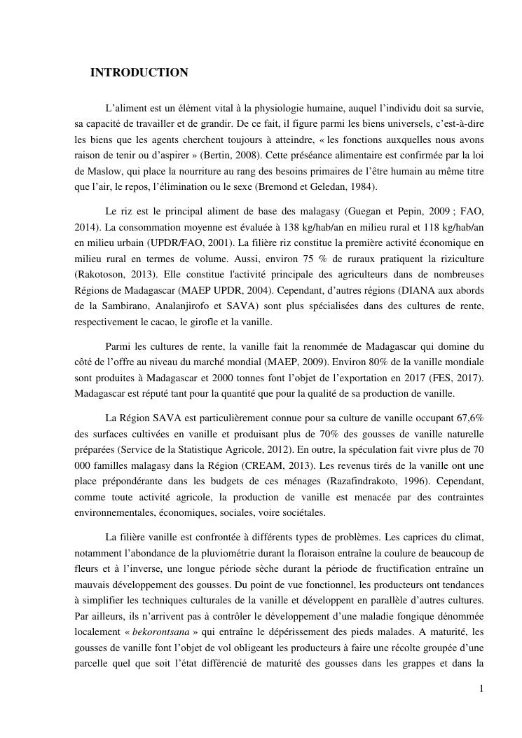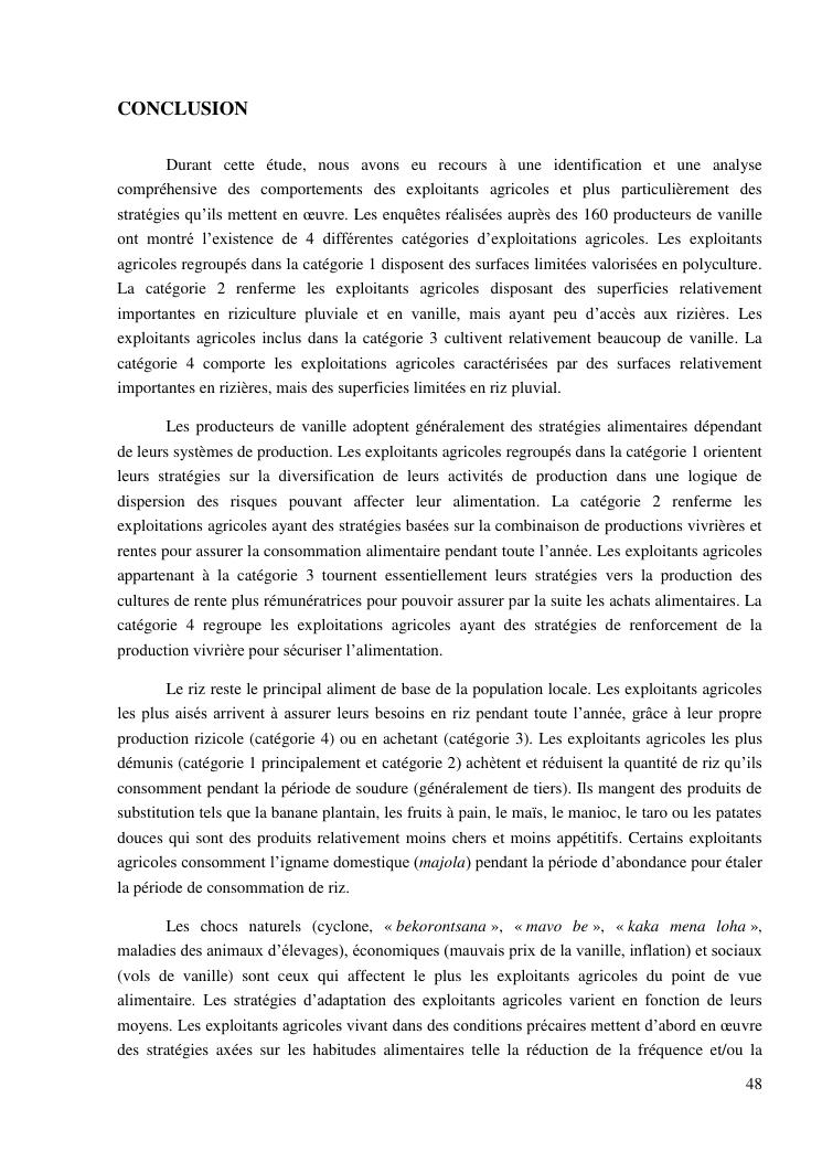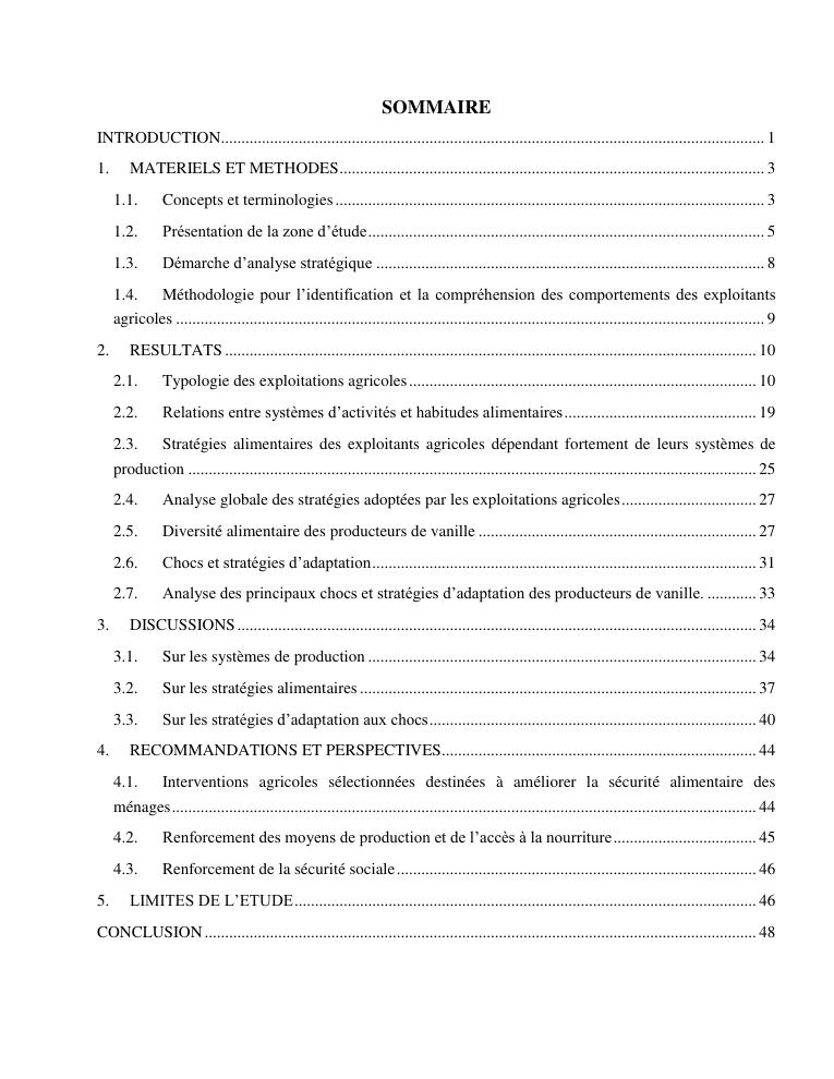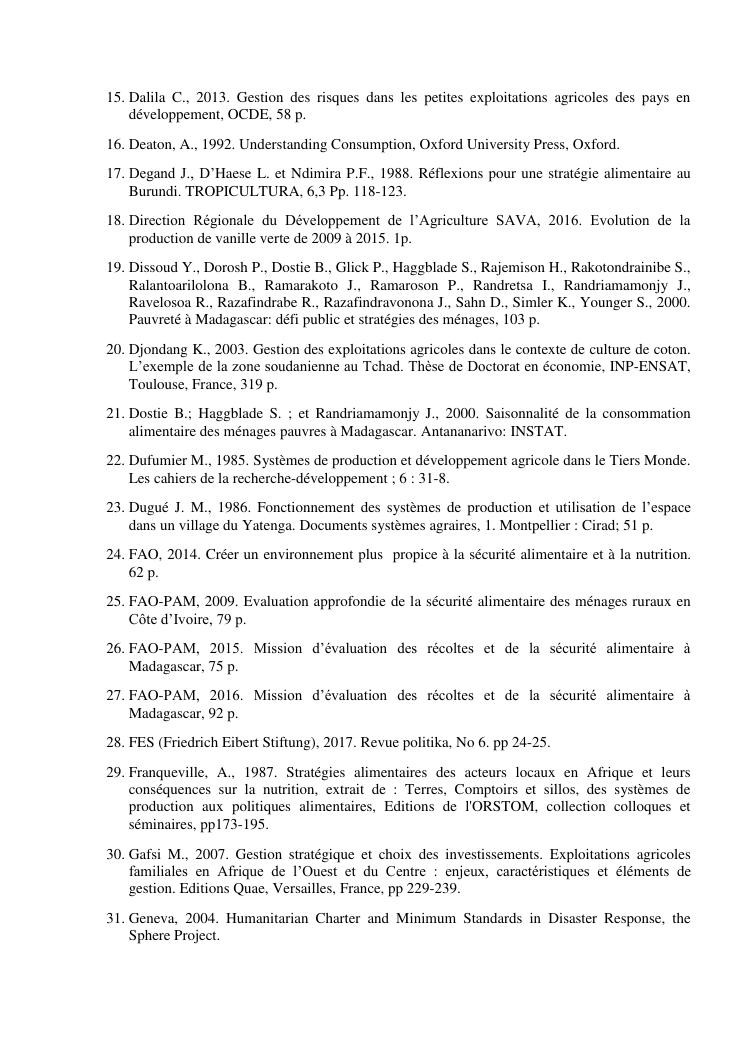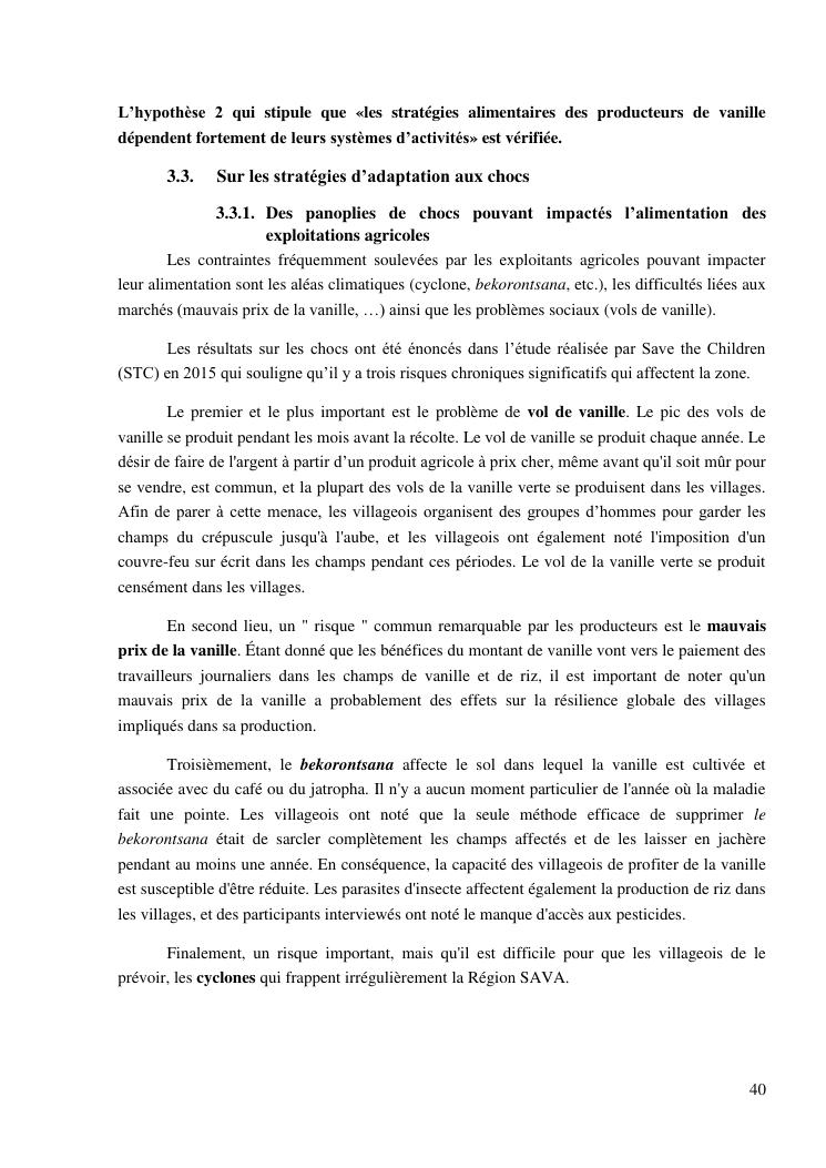 impacts des systèmes d'activités sur les stratégies alimentaires des producteurs de vanille dans la région sava