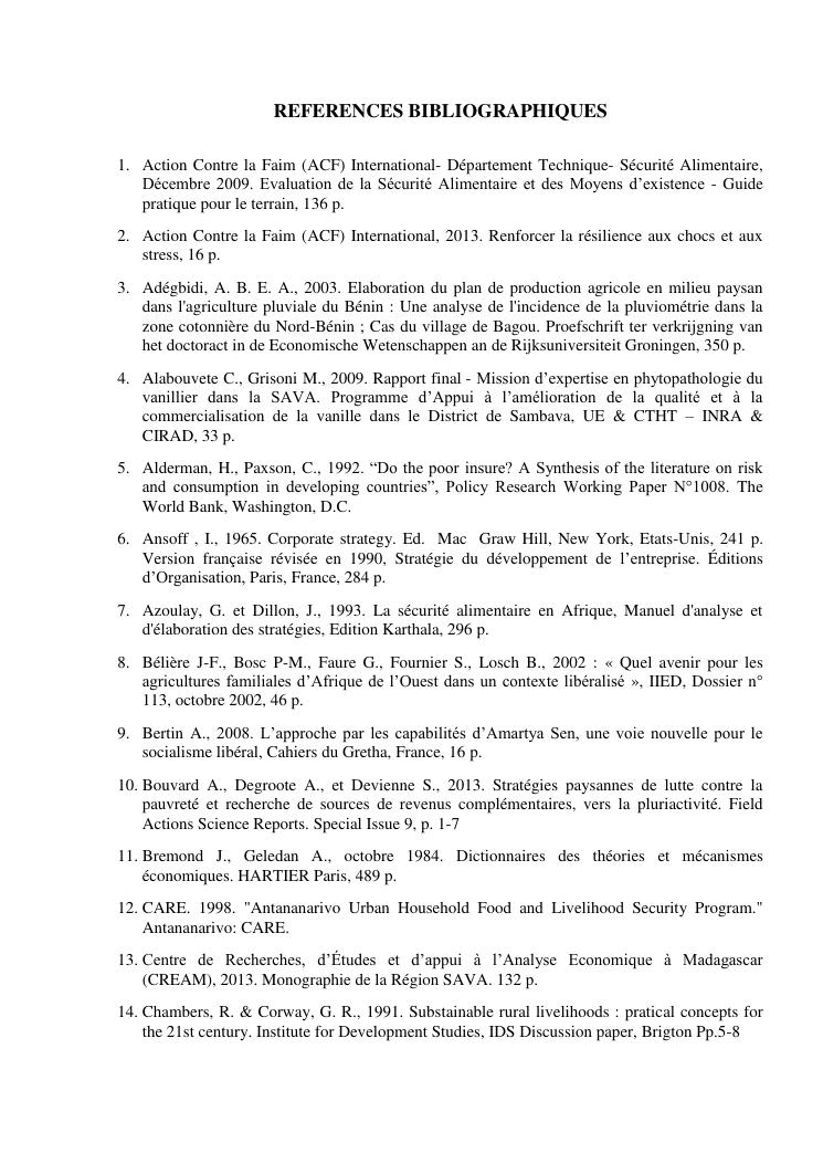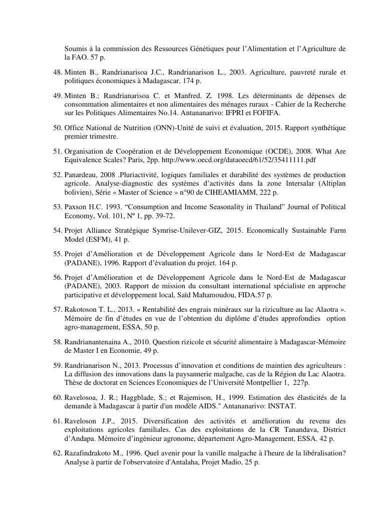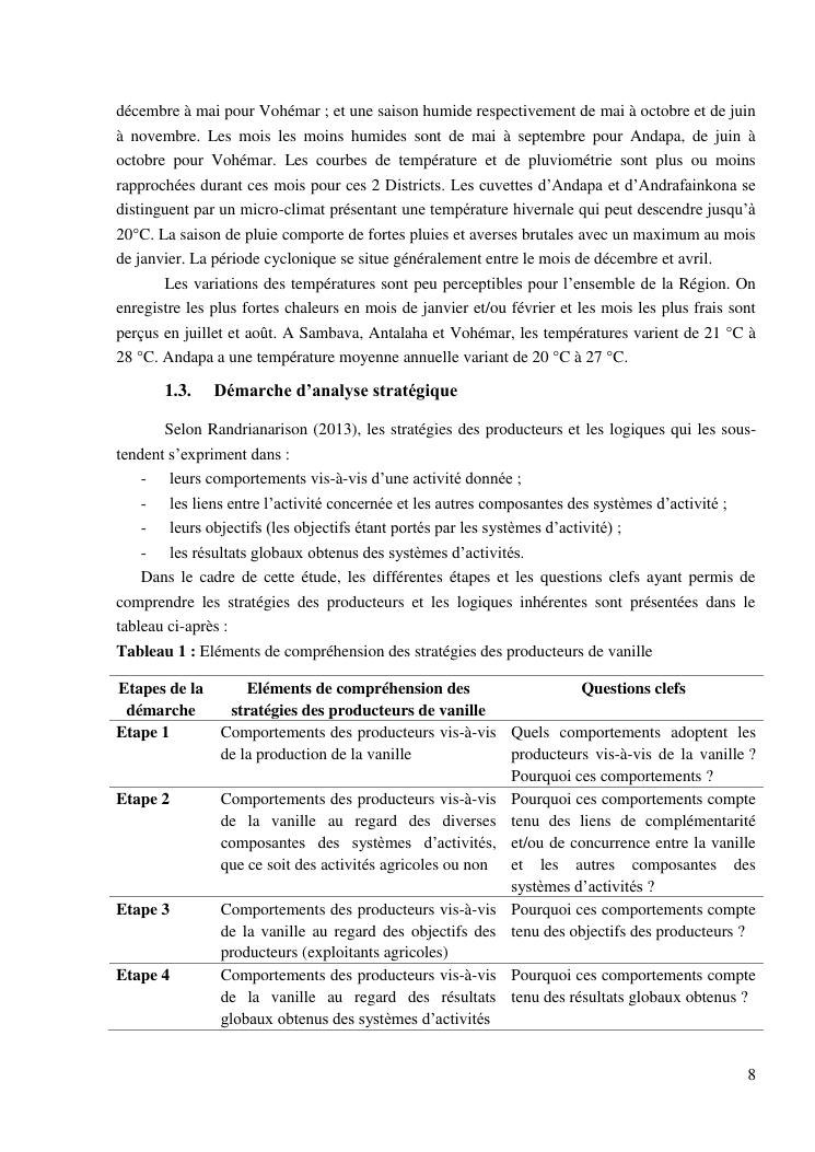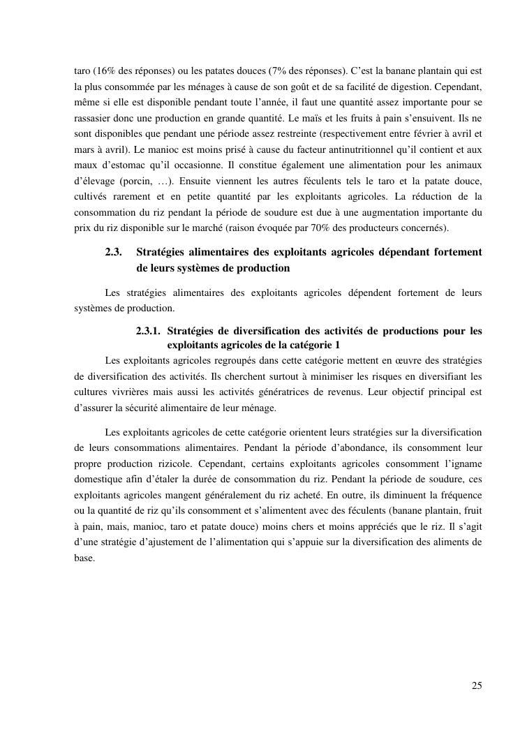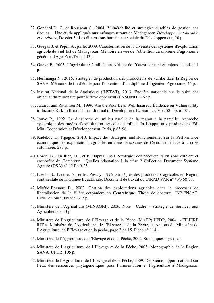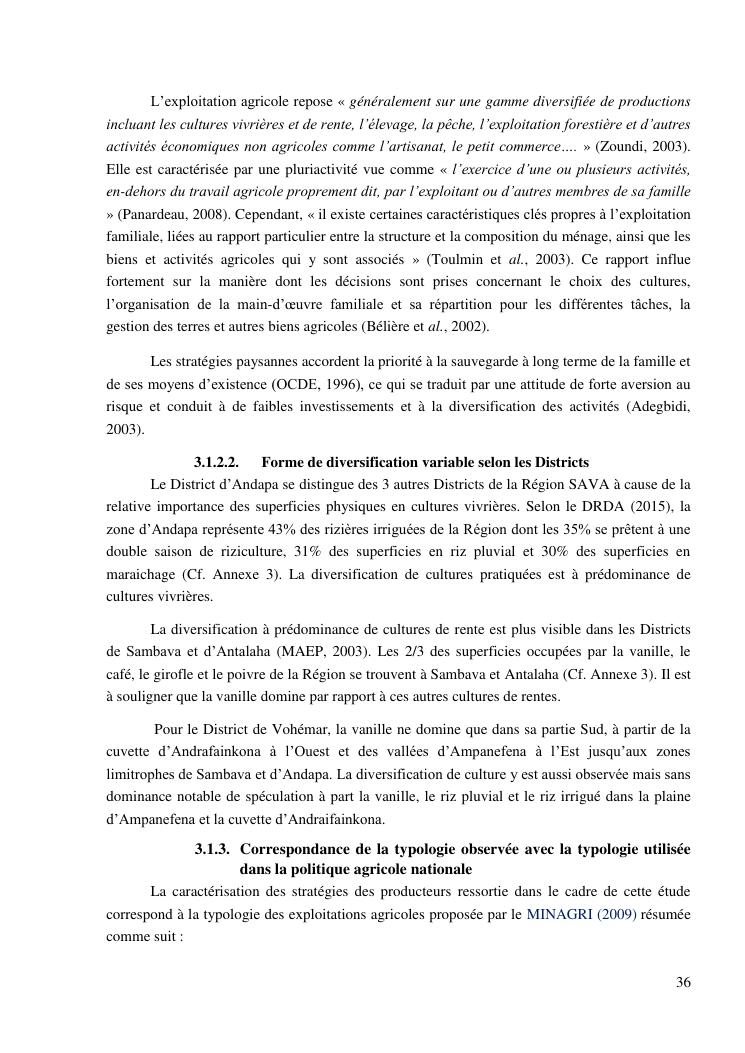 impacts des systèmes d'activités sur les stratégies alimentaires des producteurs de vanille dans la région sava