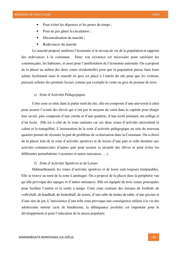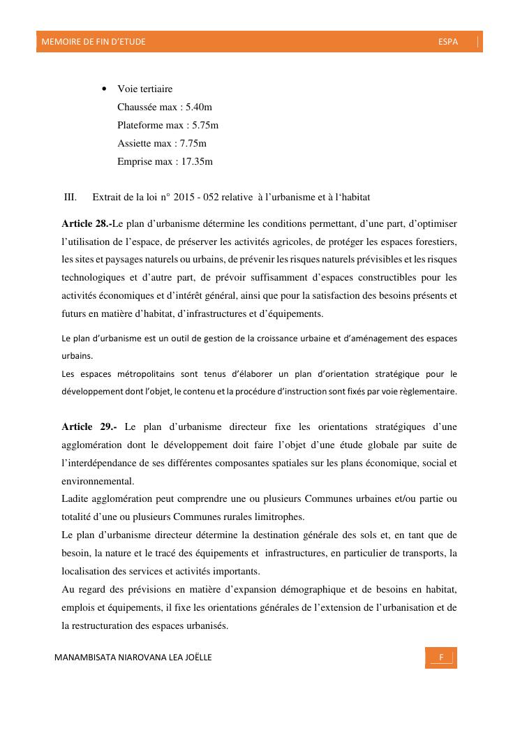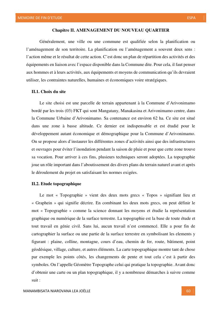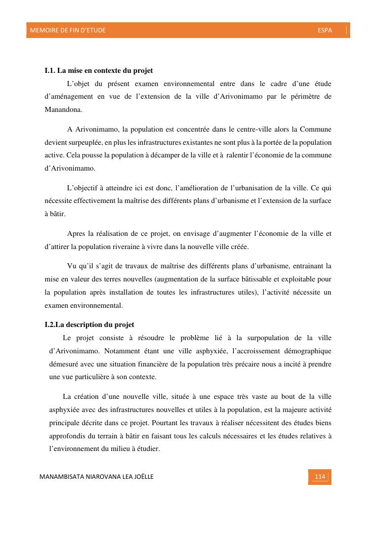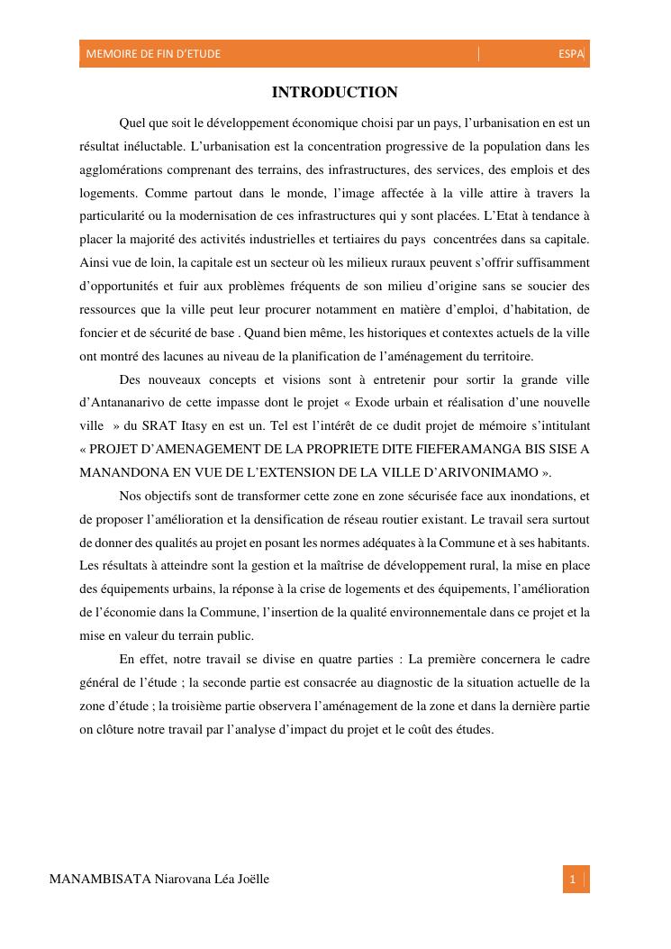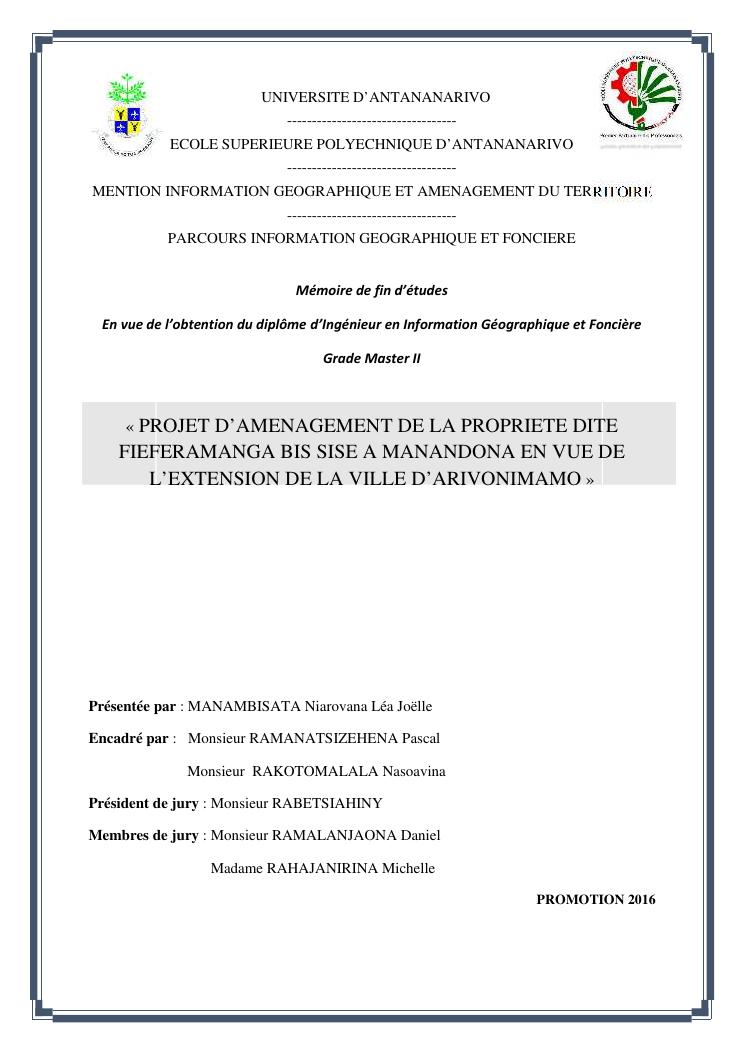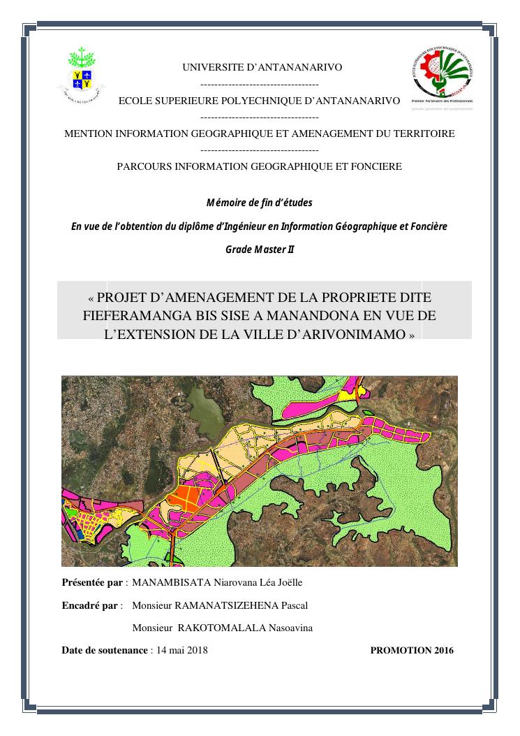 projet d'amenagement de la propriete dite fieferamanga bis sise a manandona en vue de l'extension de la ville d'arivonimamo