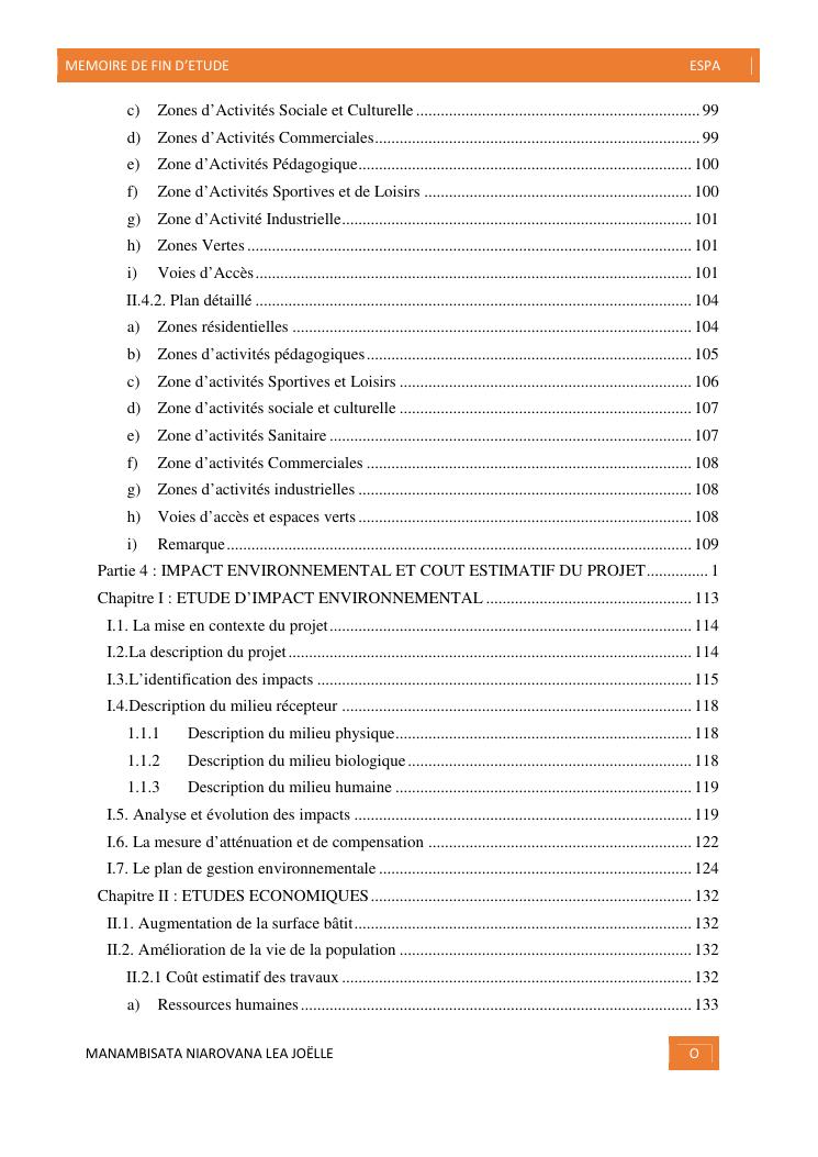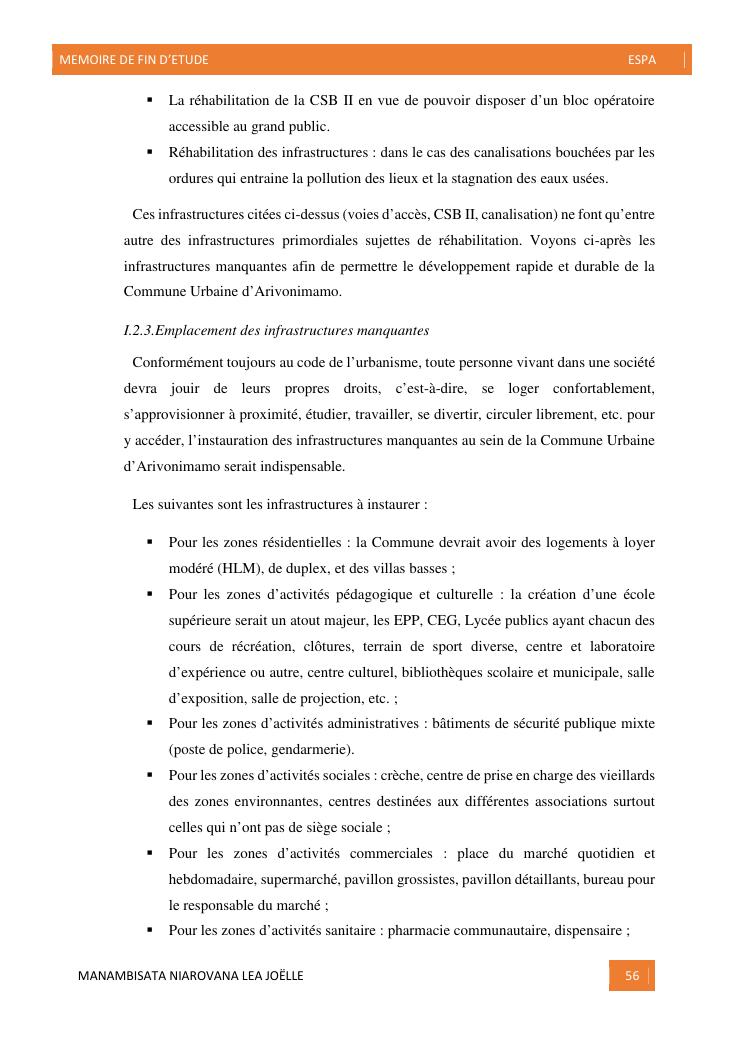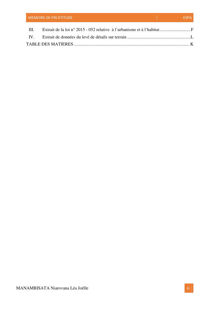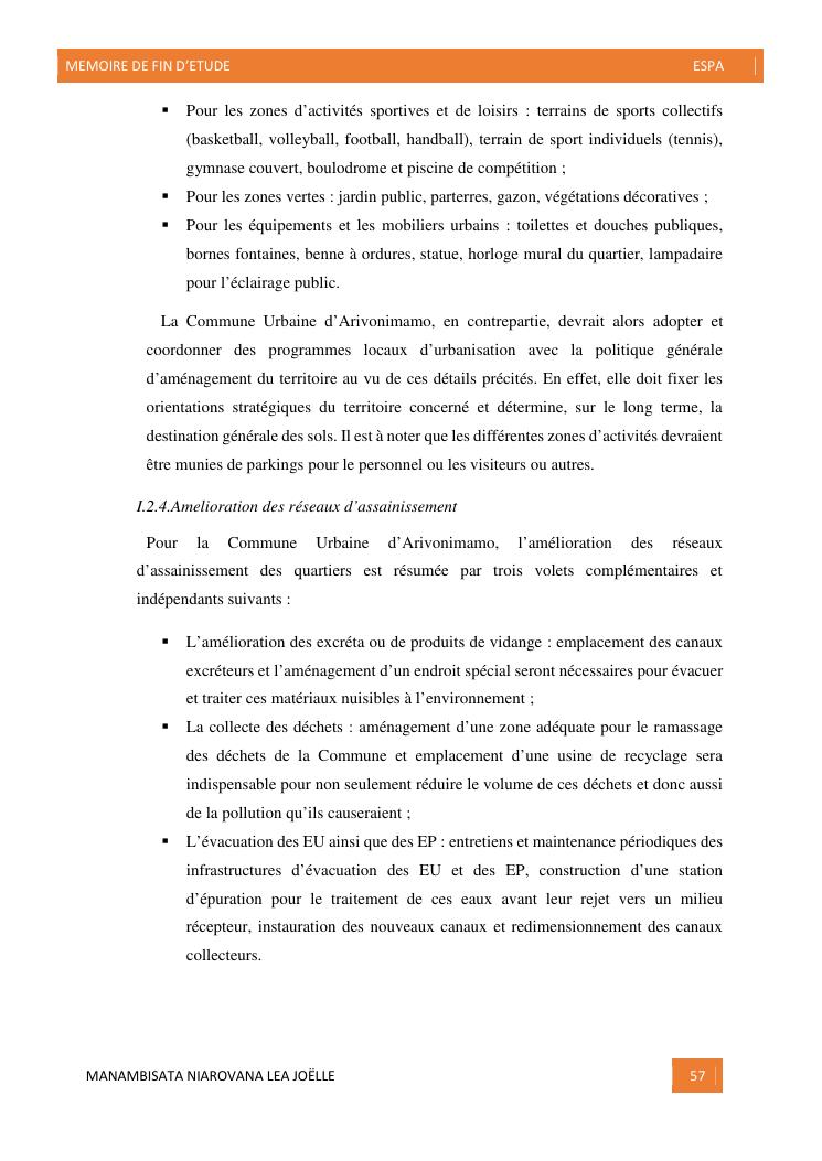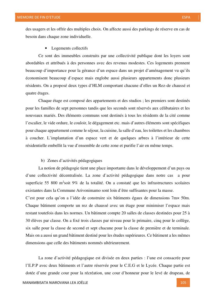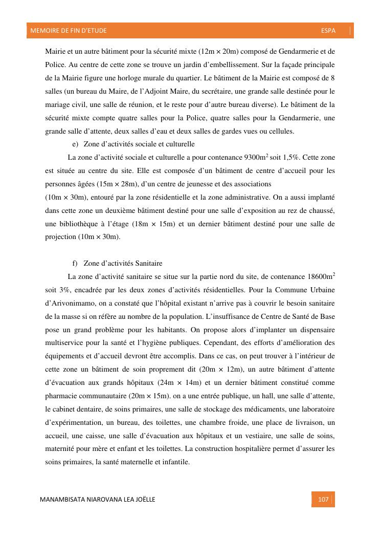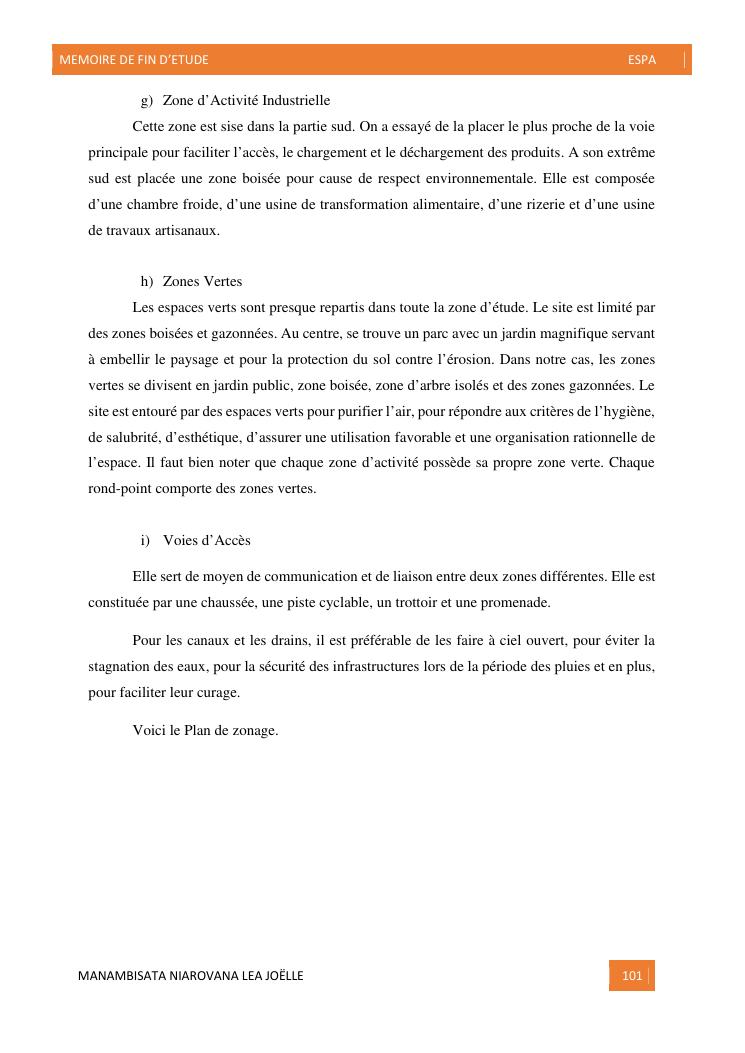 projet d'amenagement de la propriete dite fieferamanga bis sise a manandona en vue de l'extension de la ville d'arivonimamo