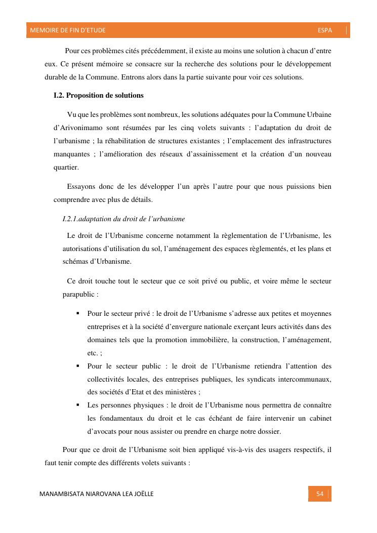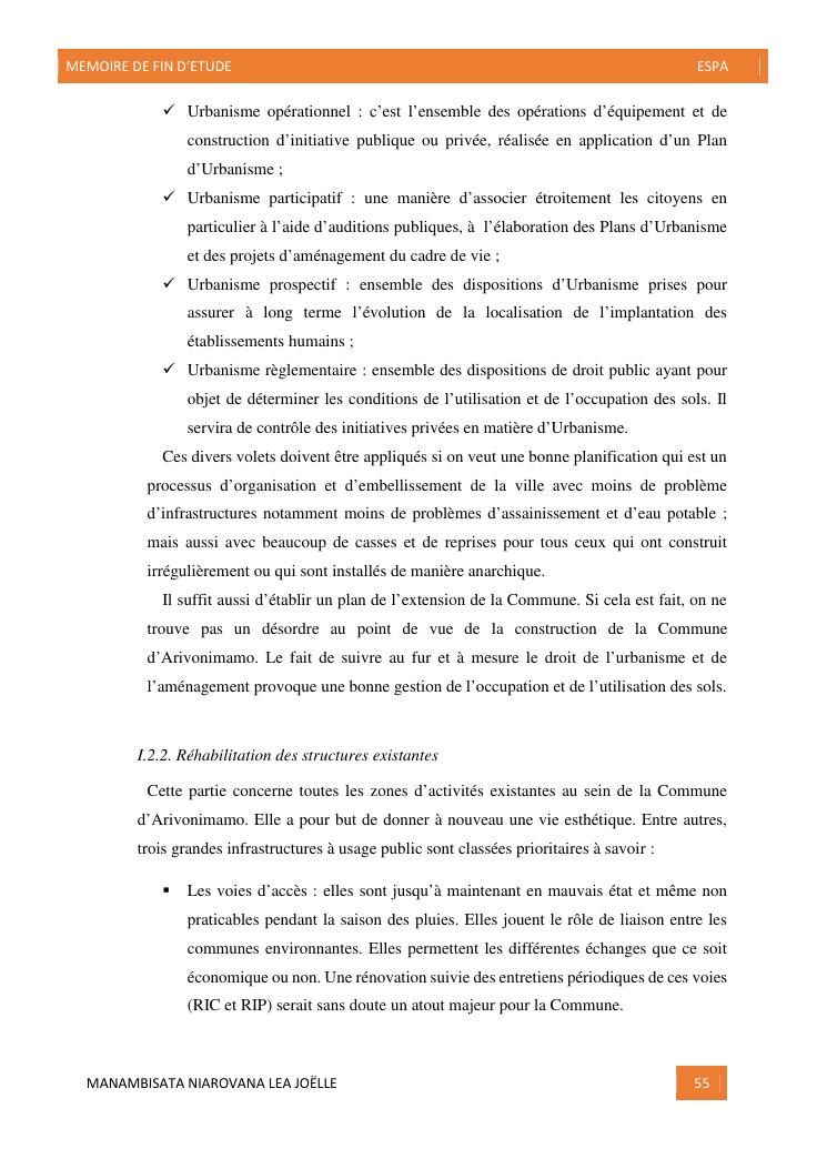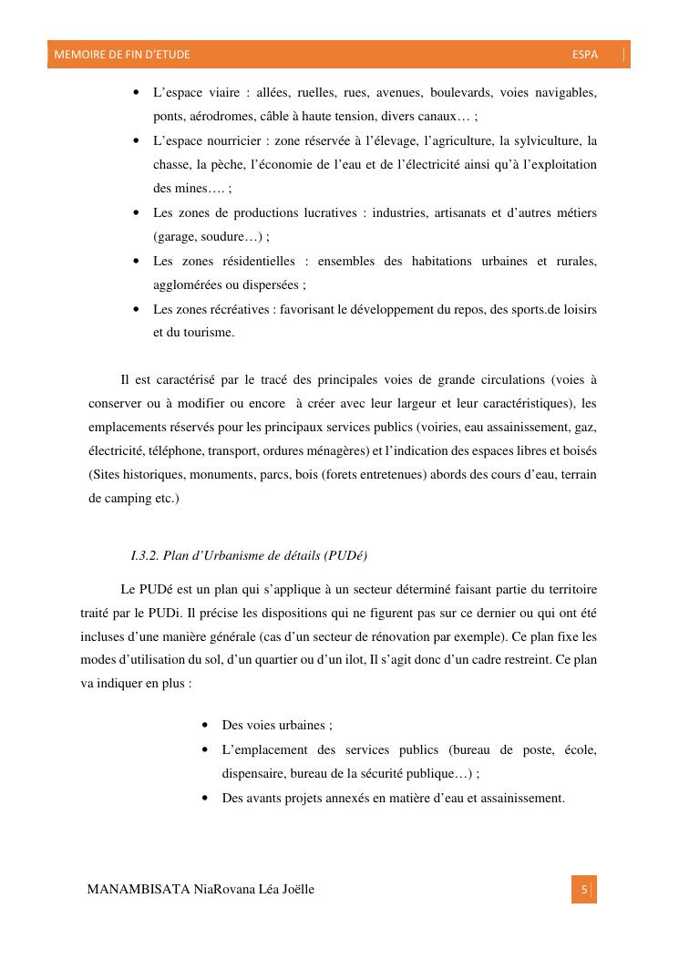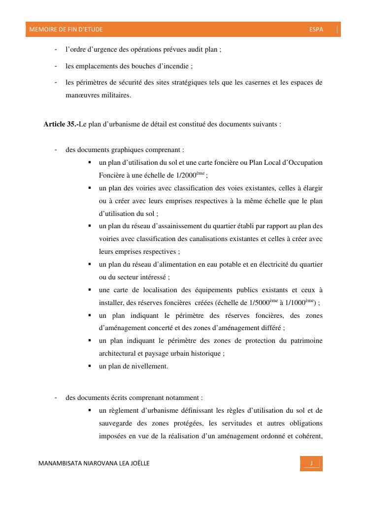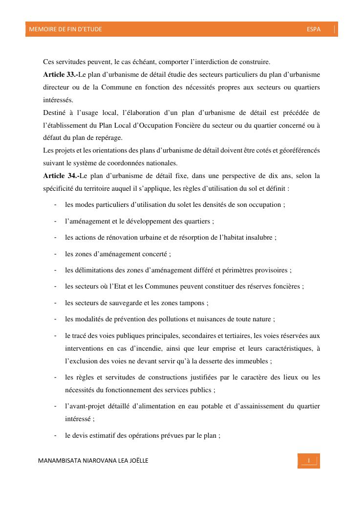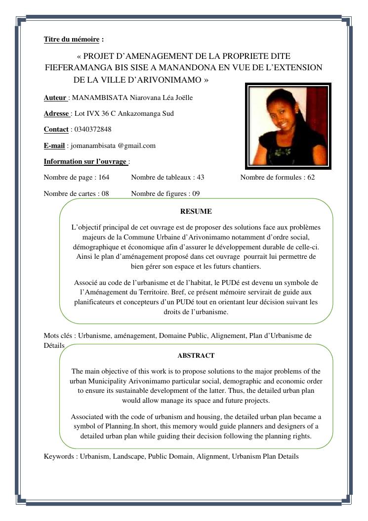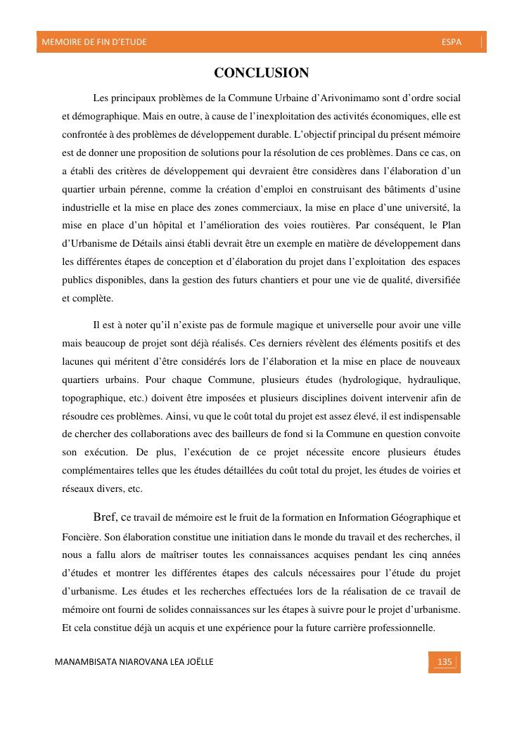 projet d'amenagement de la propriete dite fieferamanga bis sise a manandona en vue de l'extension de la ville d'arivonimamo