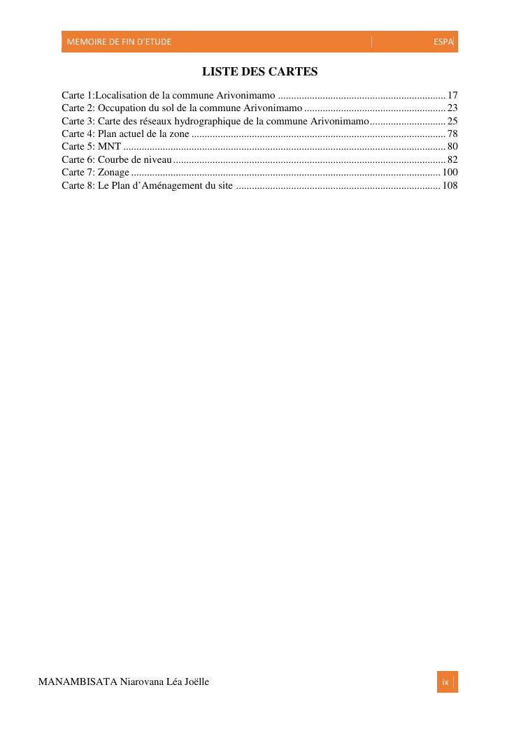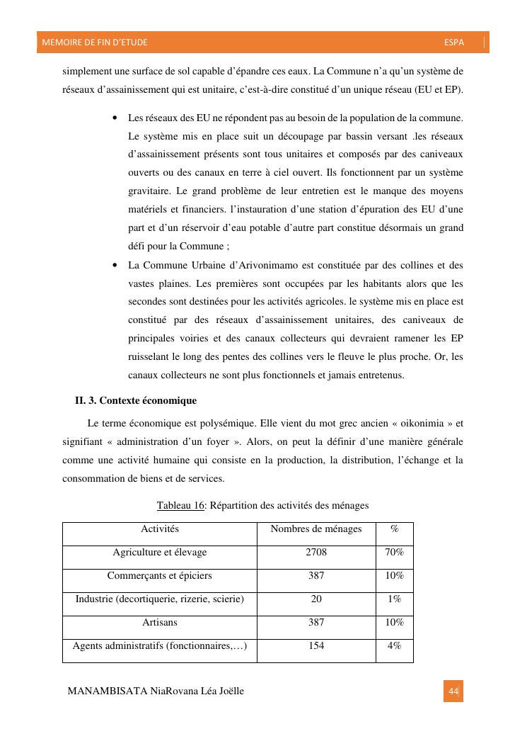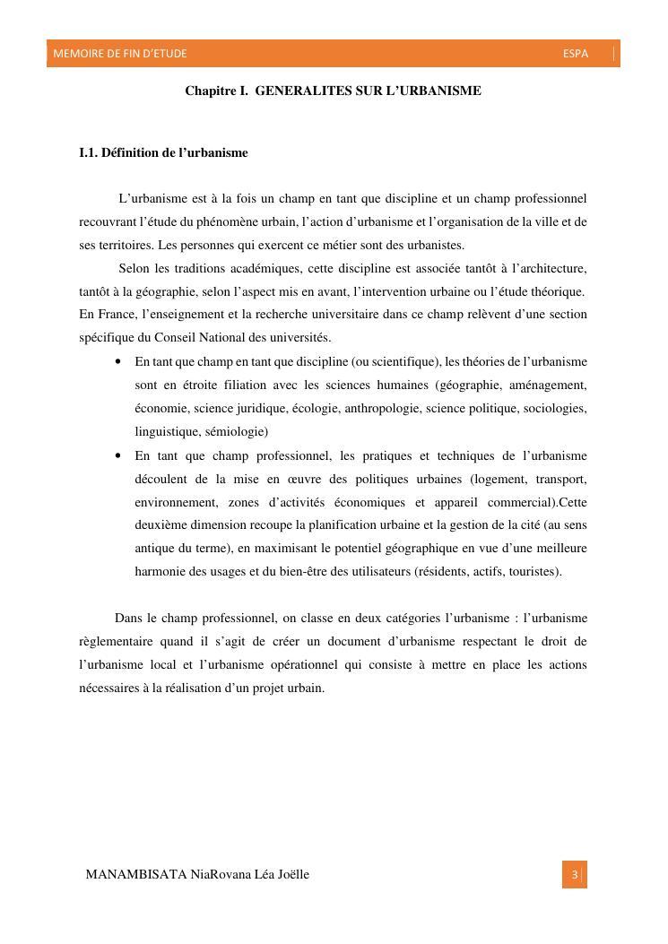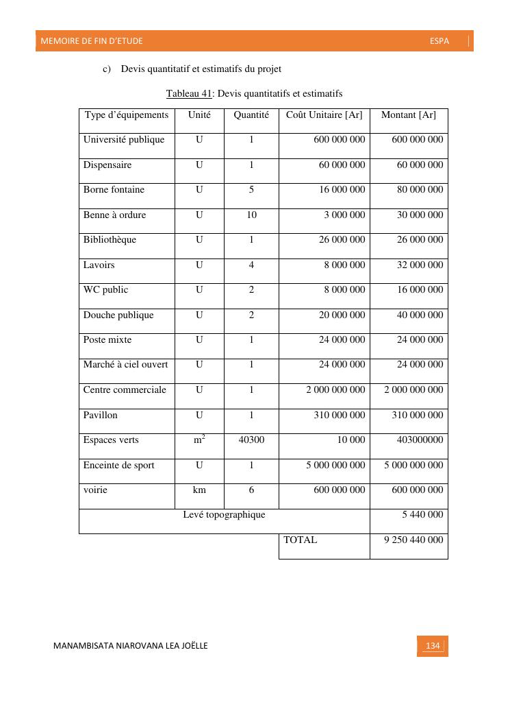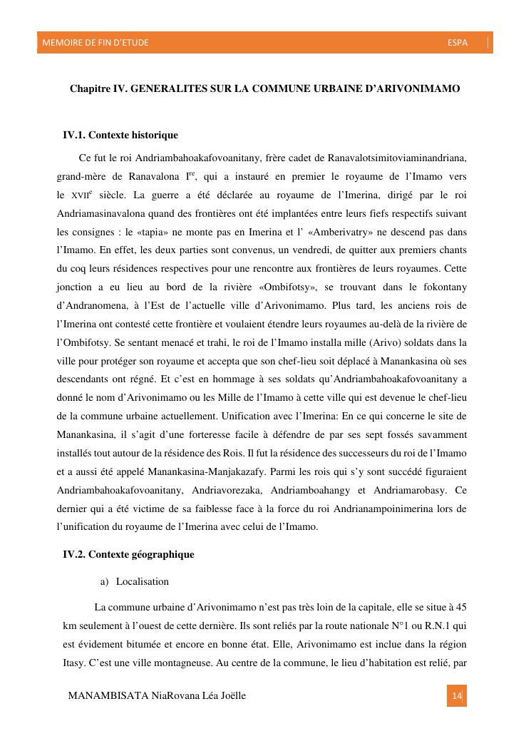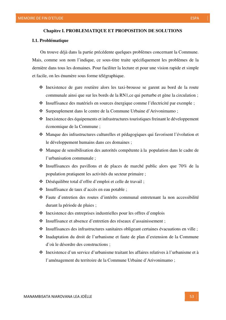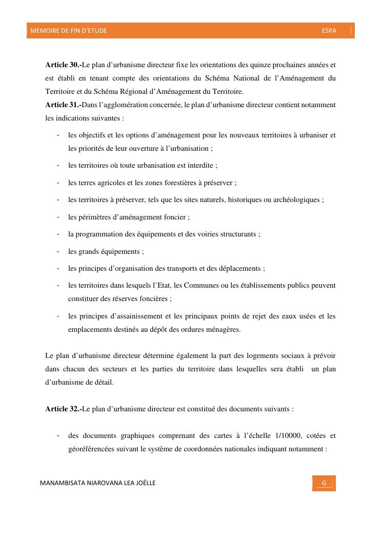 projet d'amenagement de la propriete dite fieferamanga bis sise a manandona en vue de l'extension de la ville d'arivonimamo