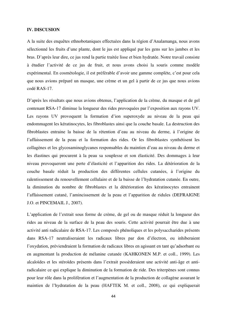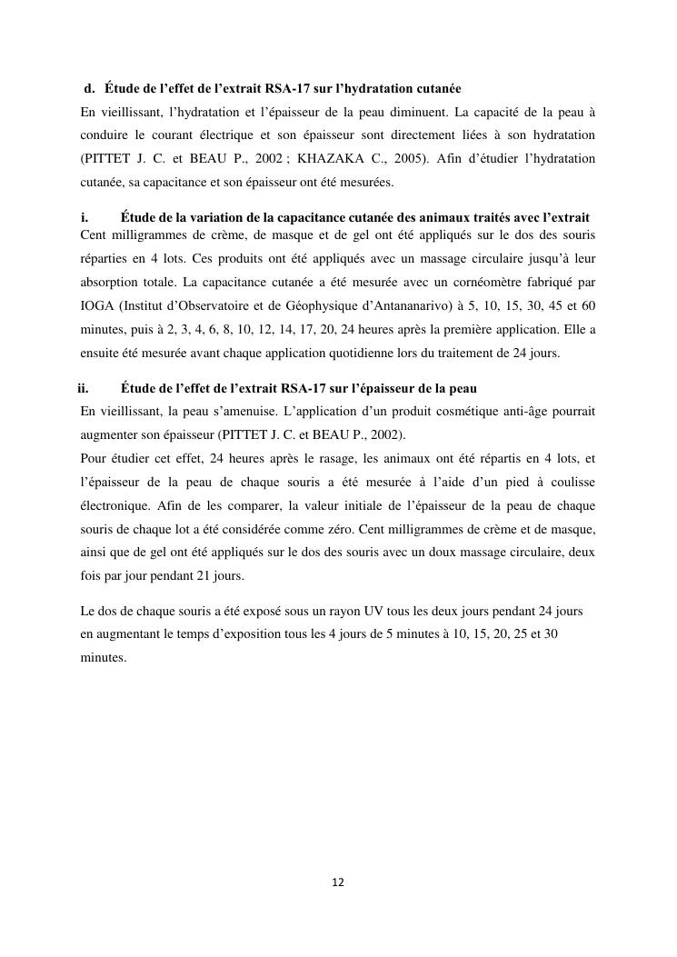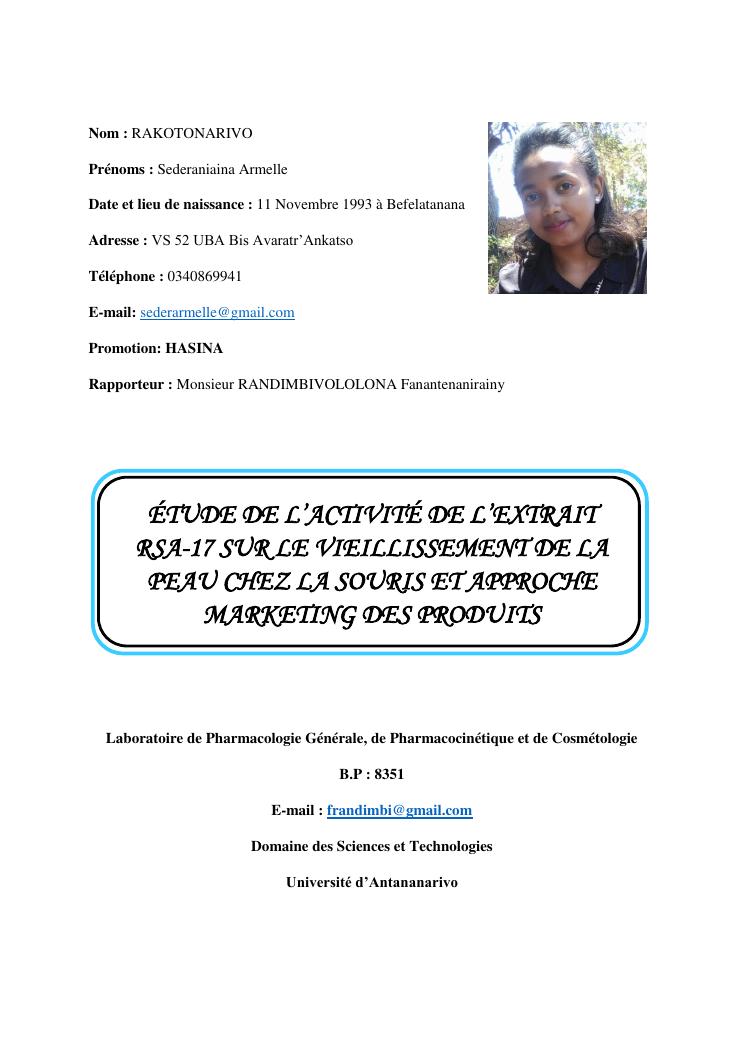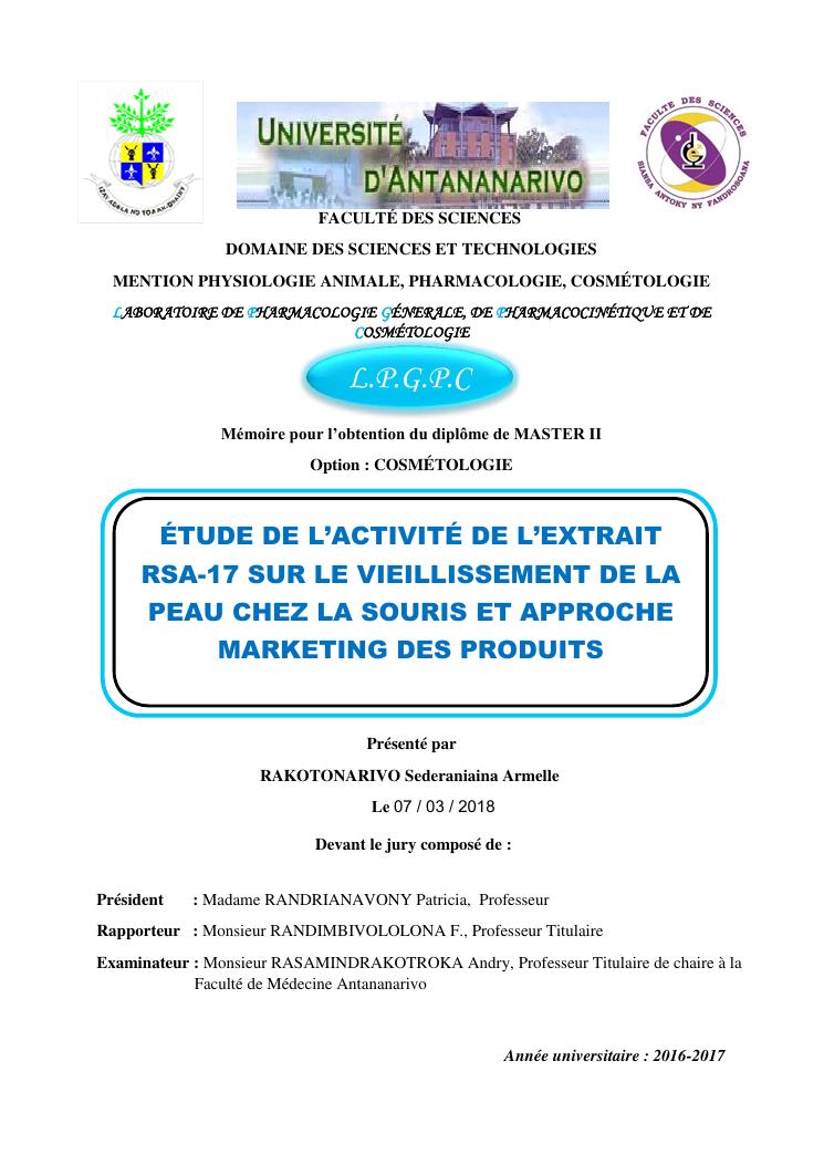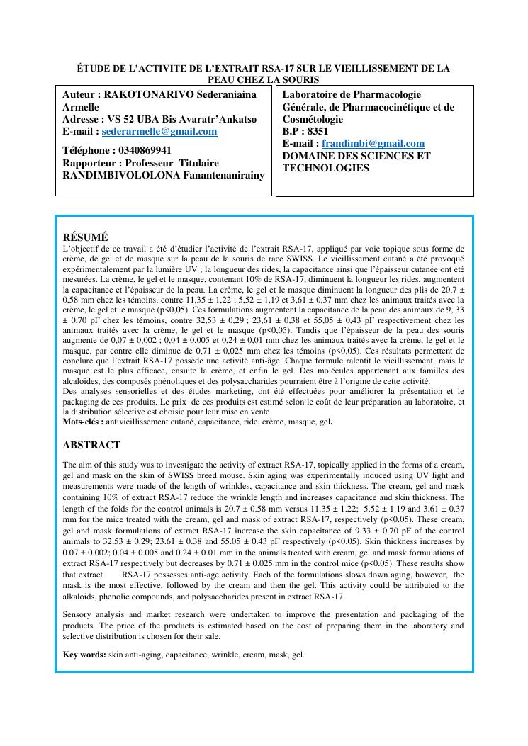 étude de l'activité de l'extrait rsa-17 sur le vieillissement de la peau chez la souris et approche marketing des produits