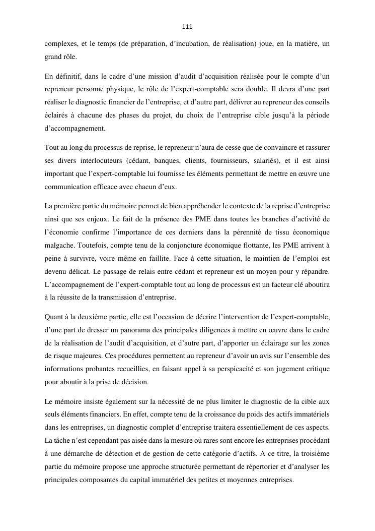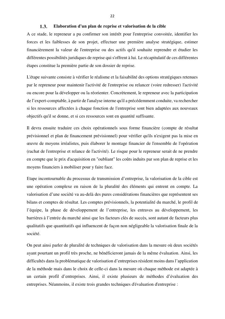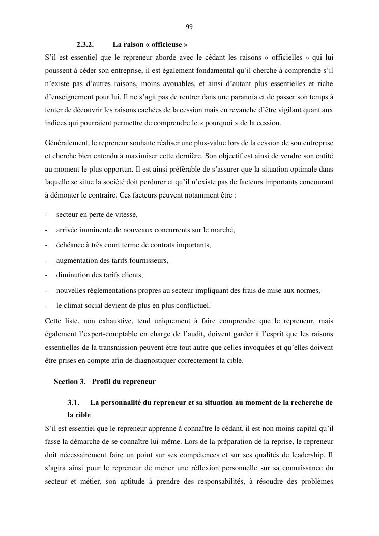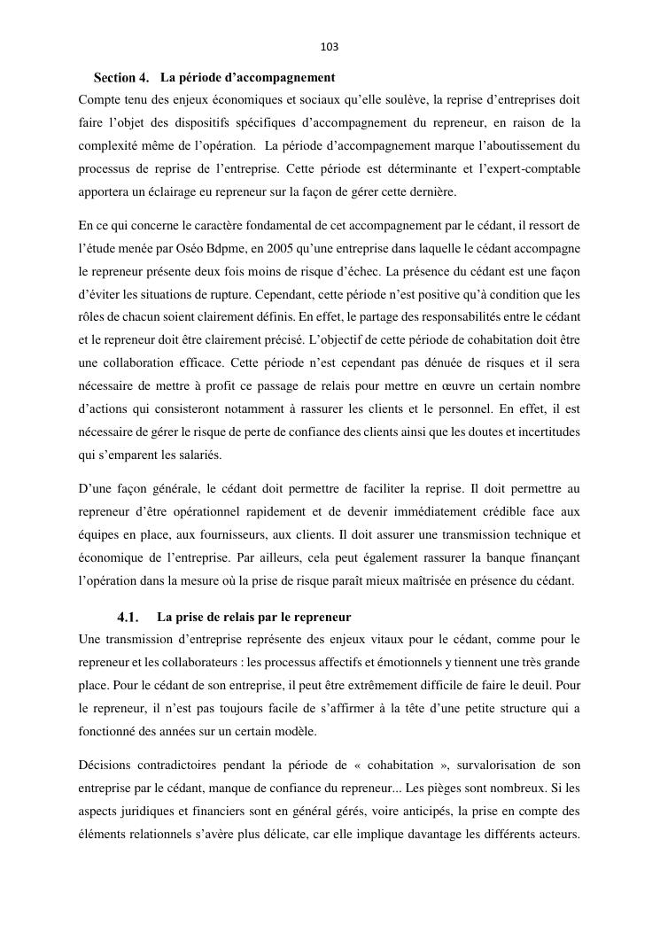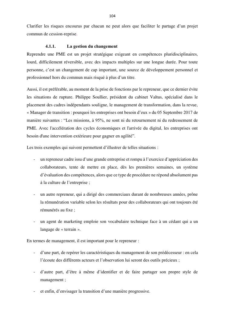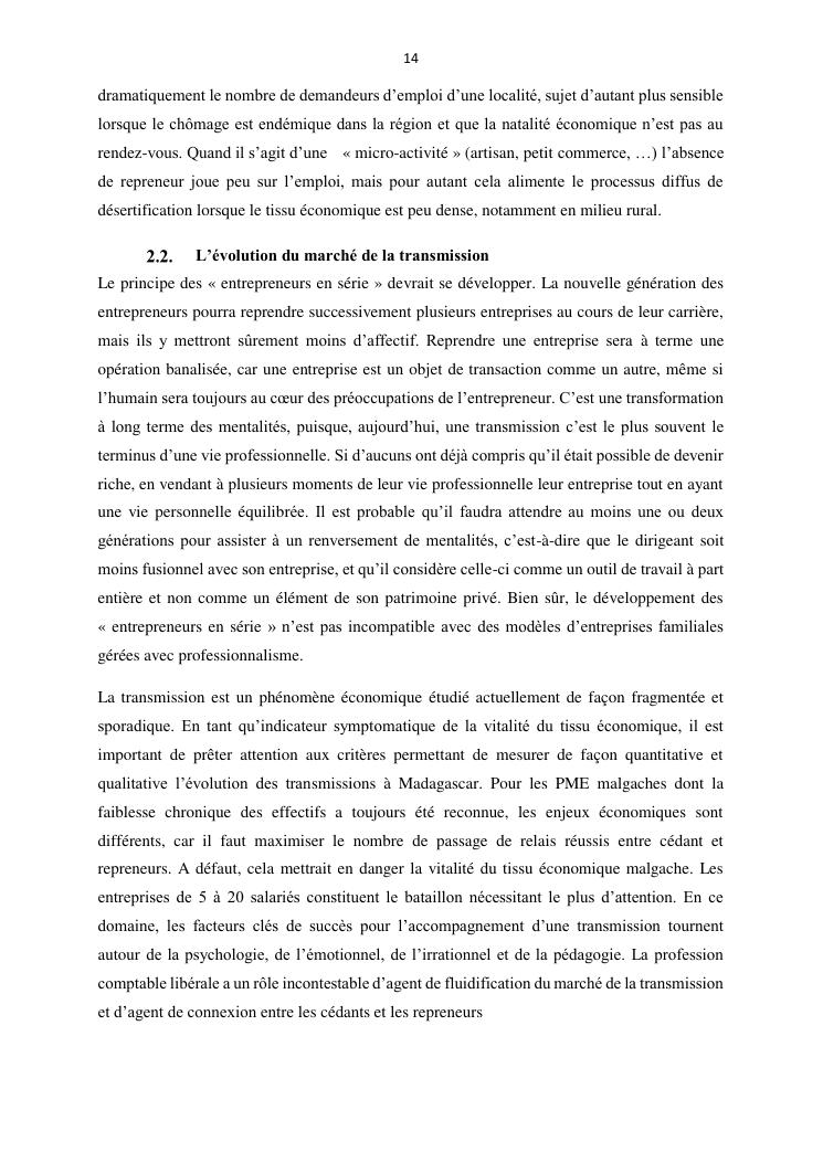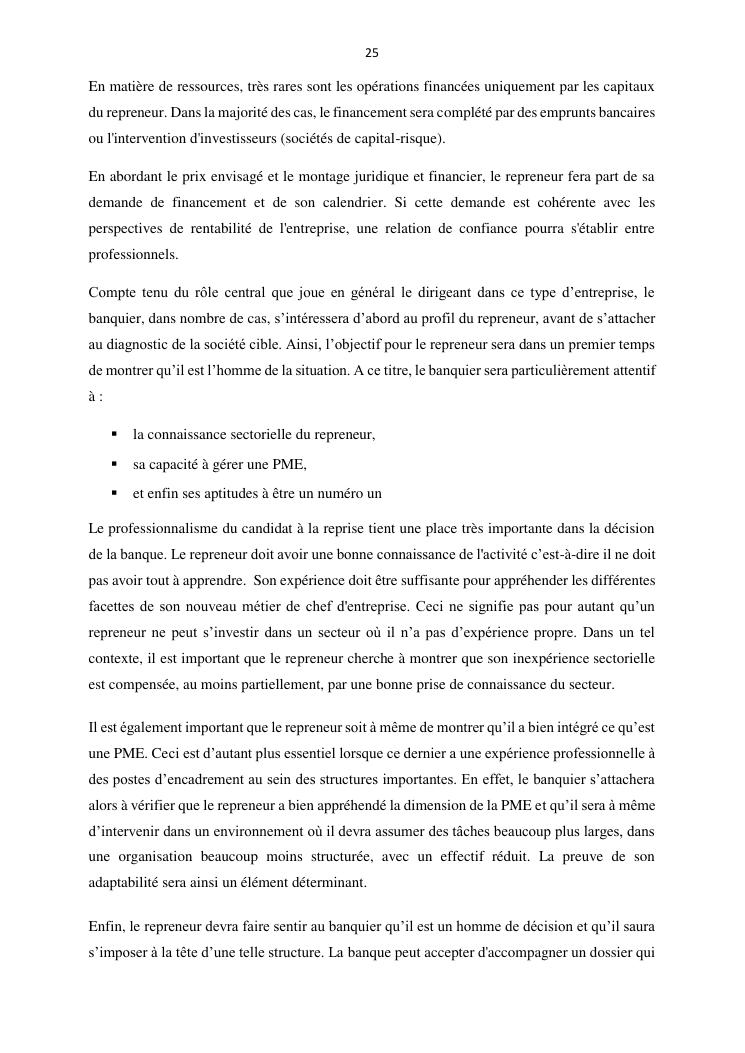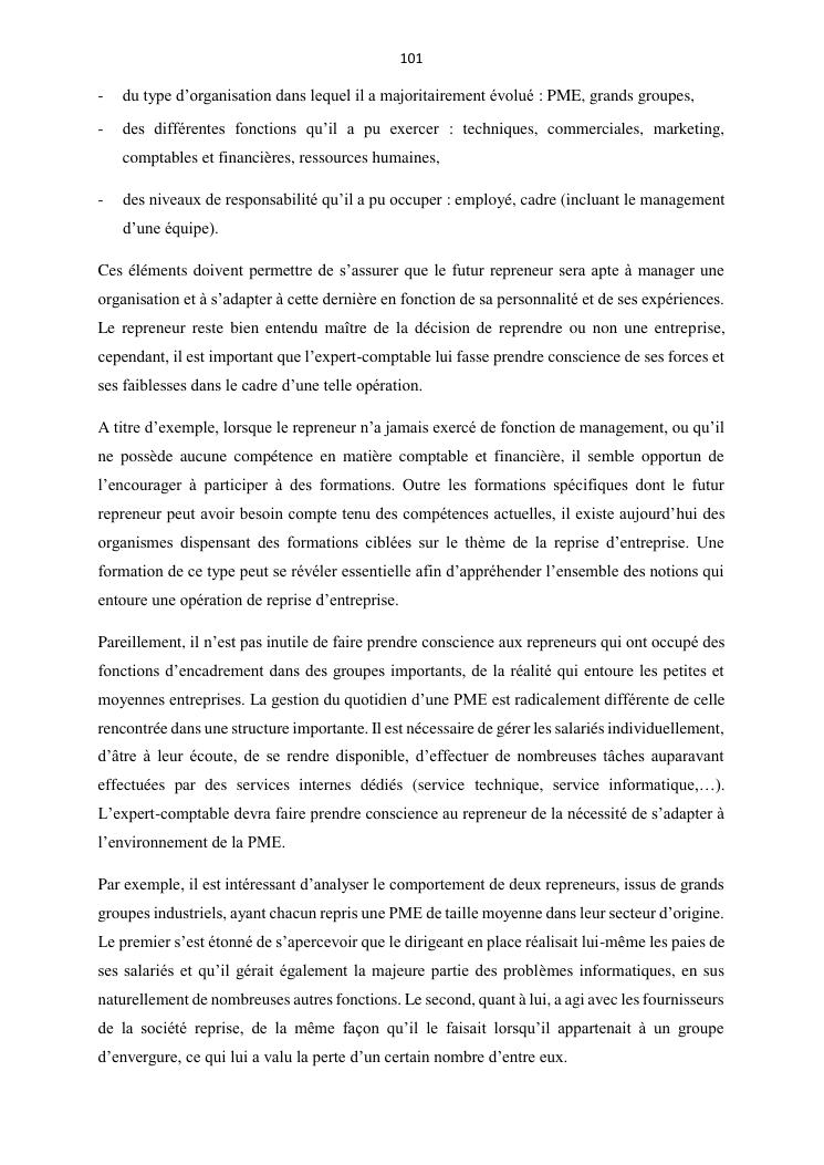 la reprise d'entreprise par une personne physique : approche structuree et efficace, cas des pme a madagascar cas au sein du cabinet cadre
