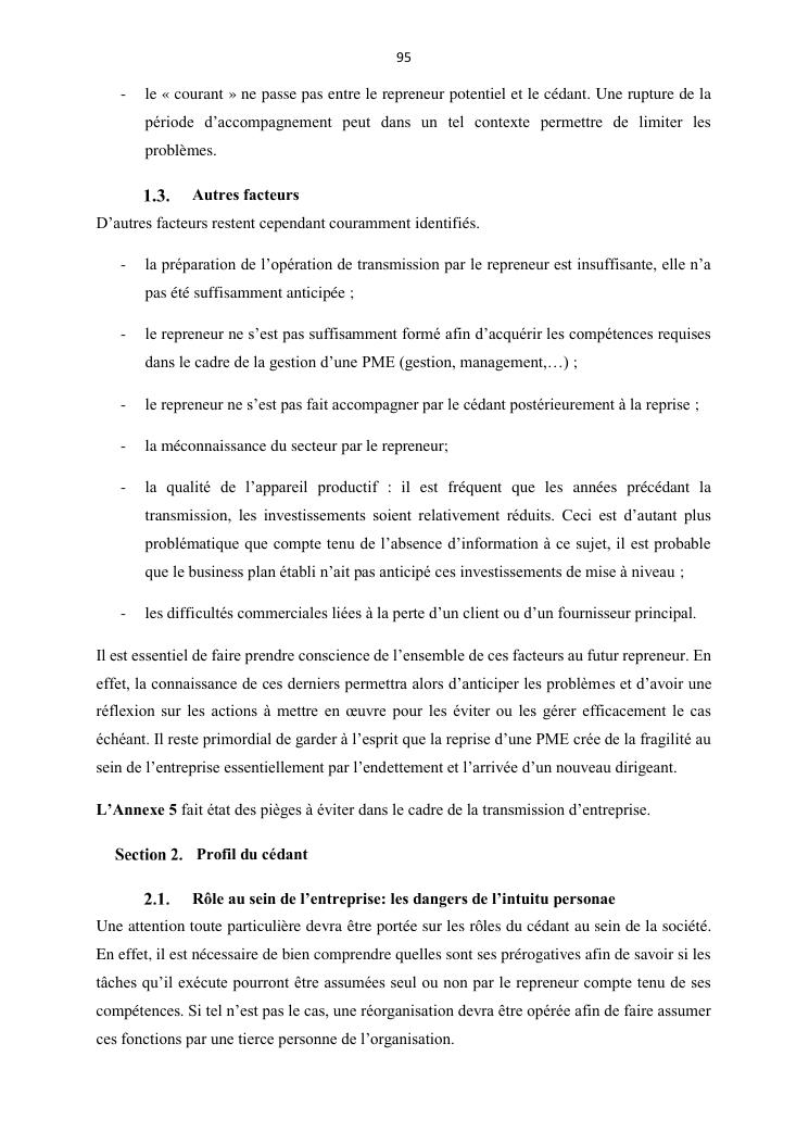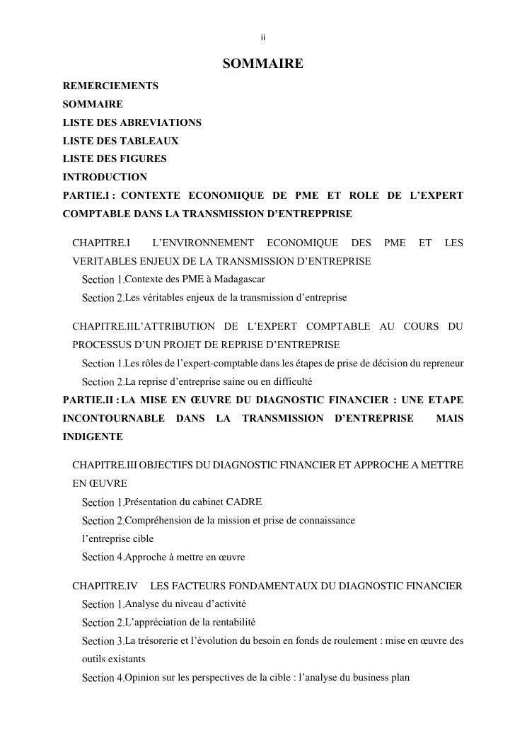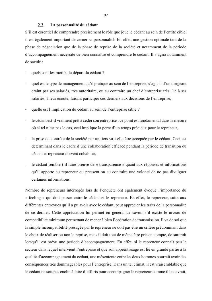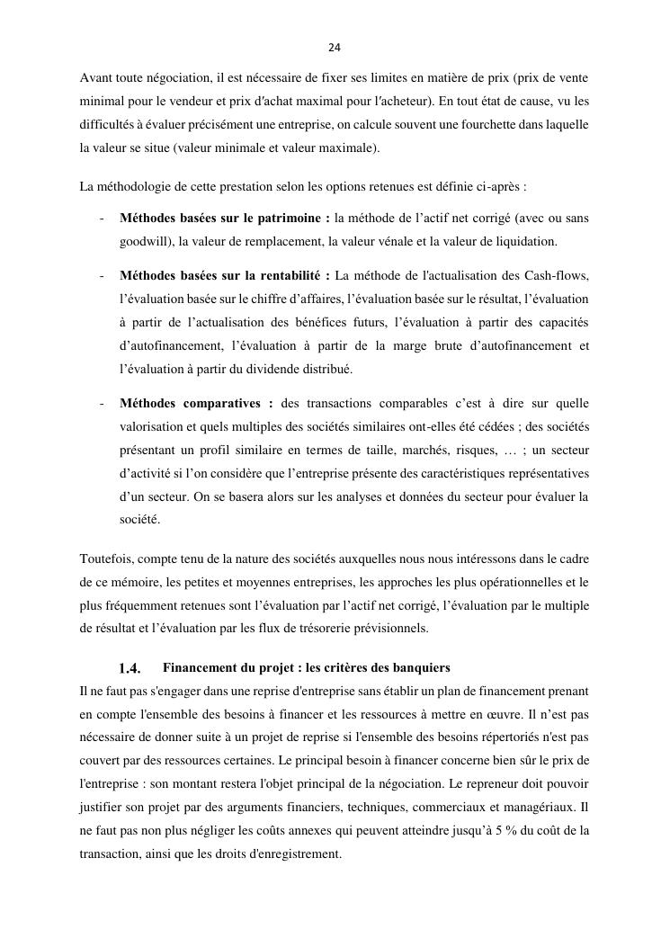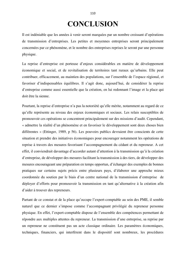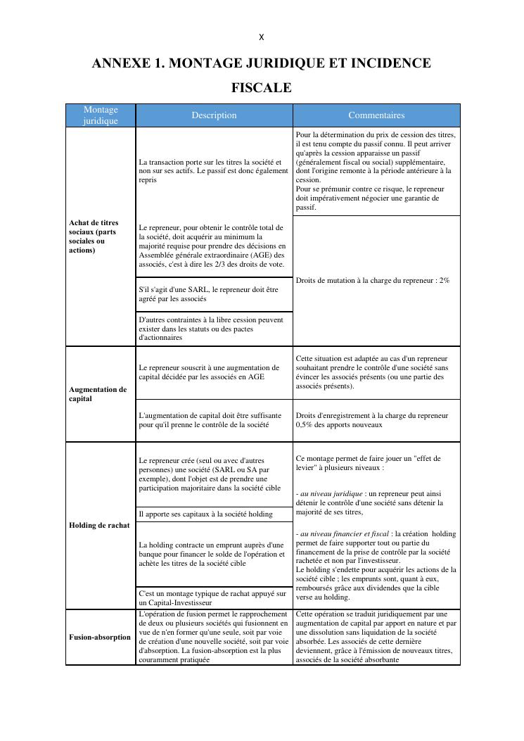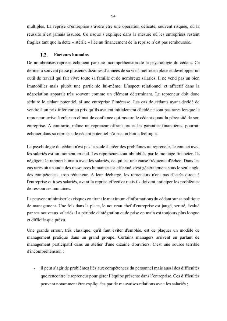 la reprise d'entreprise par une personne physique : approche structuree et efficace, cas des pme a madagascar cas au sein du cabinet cadre