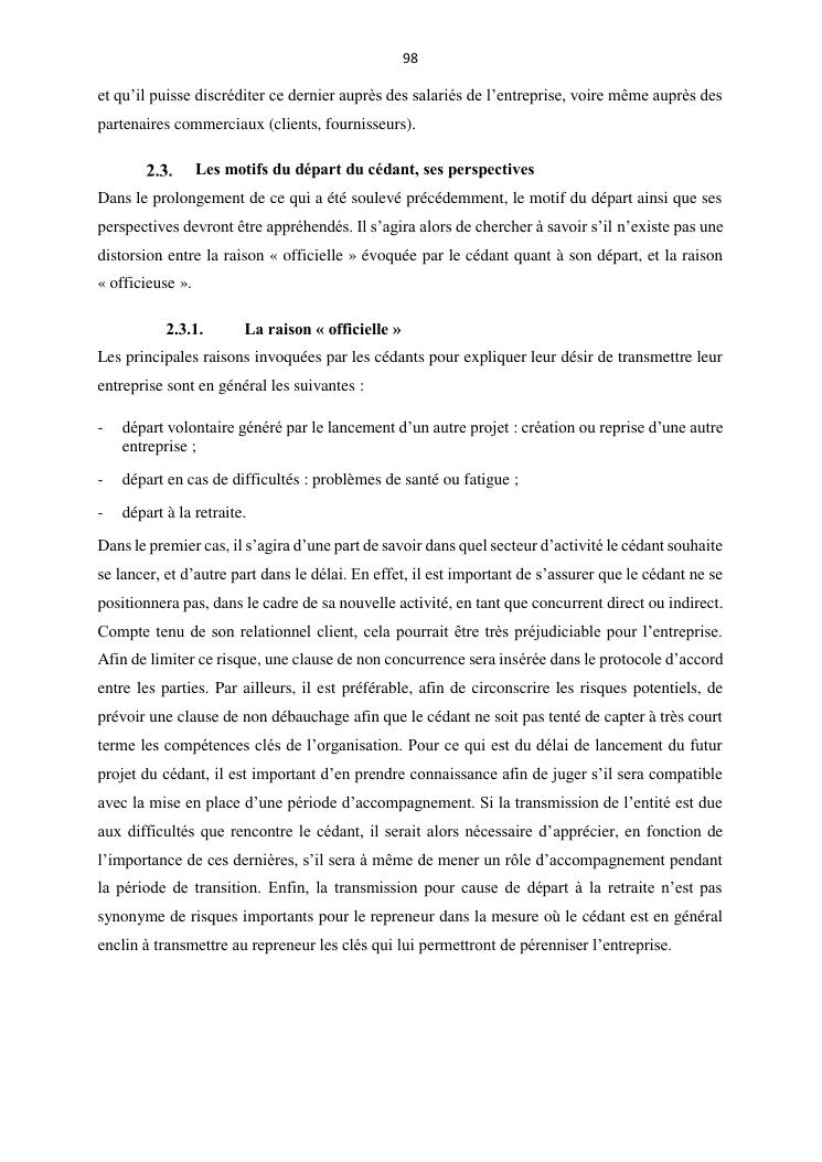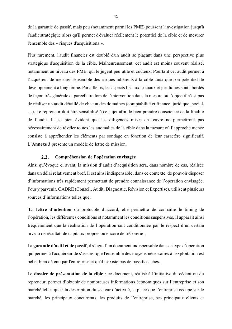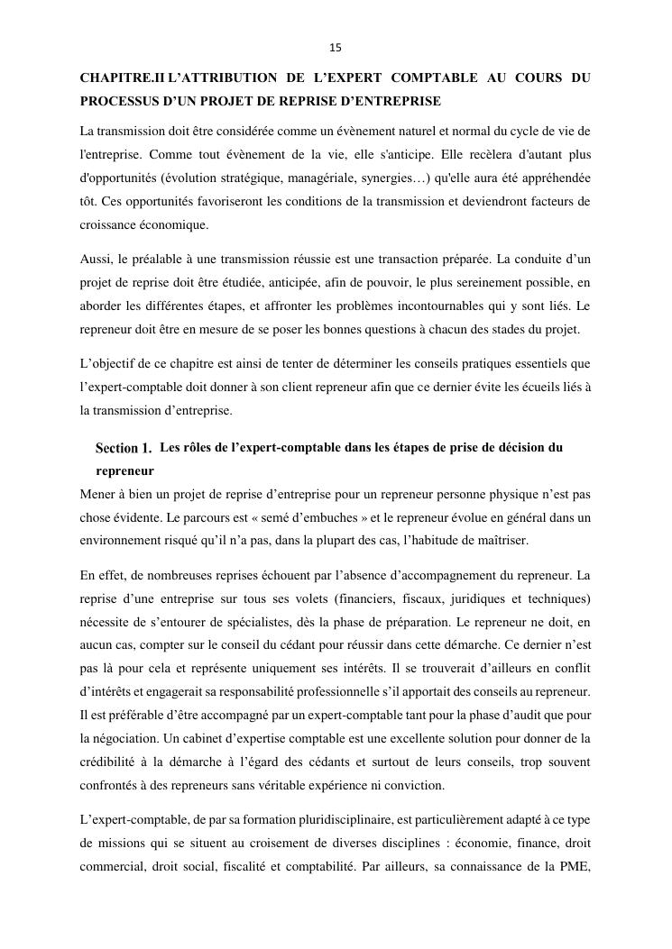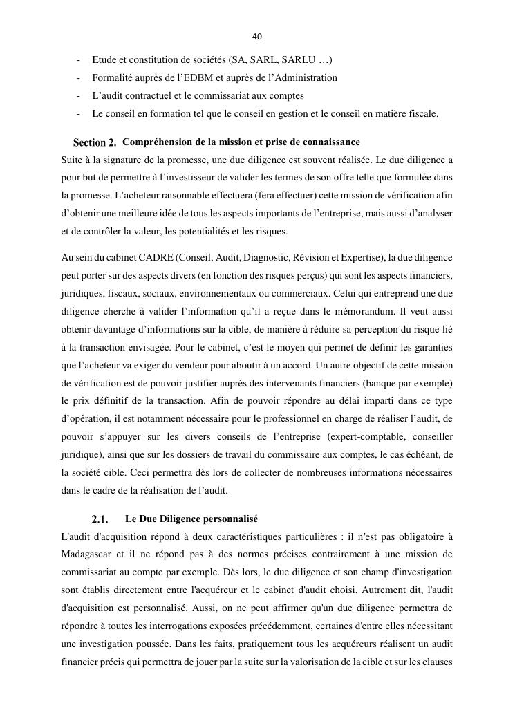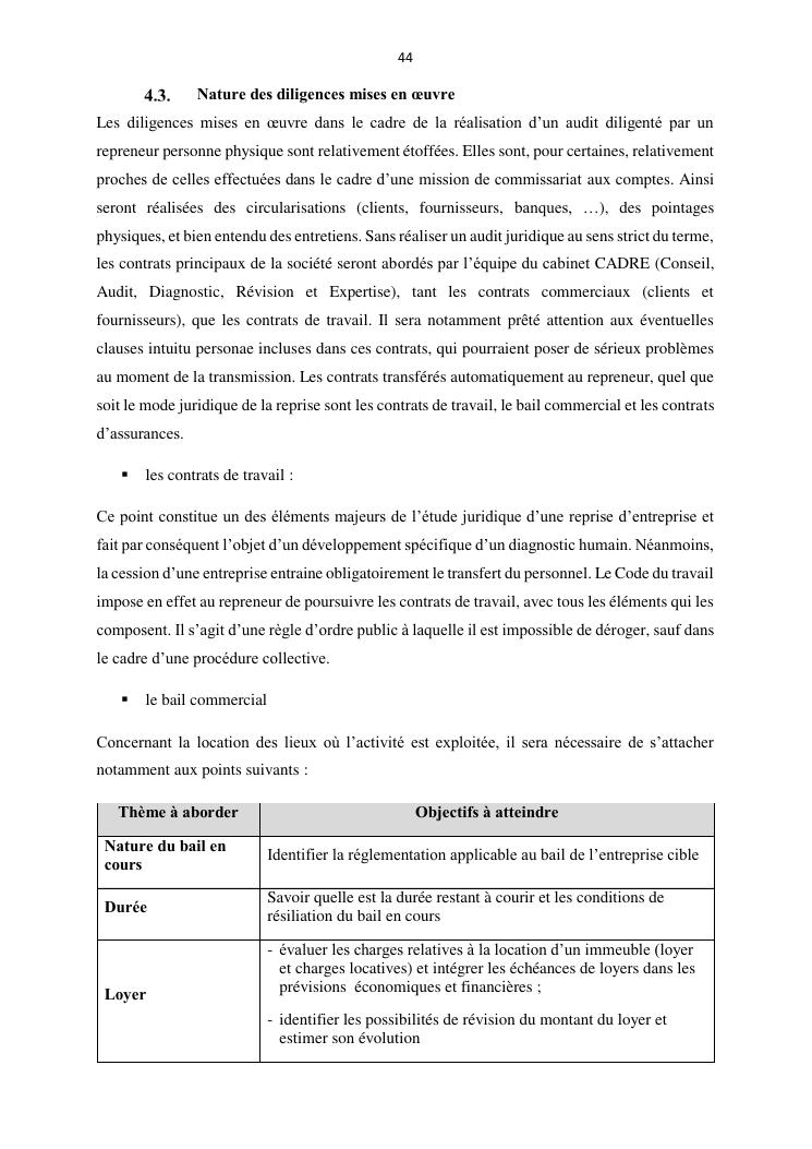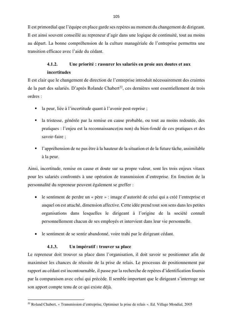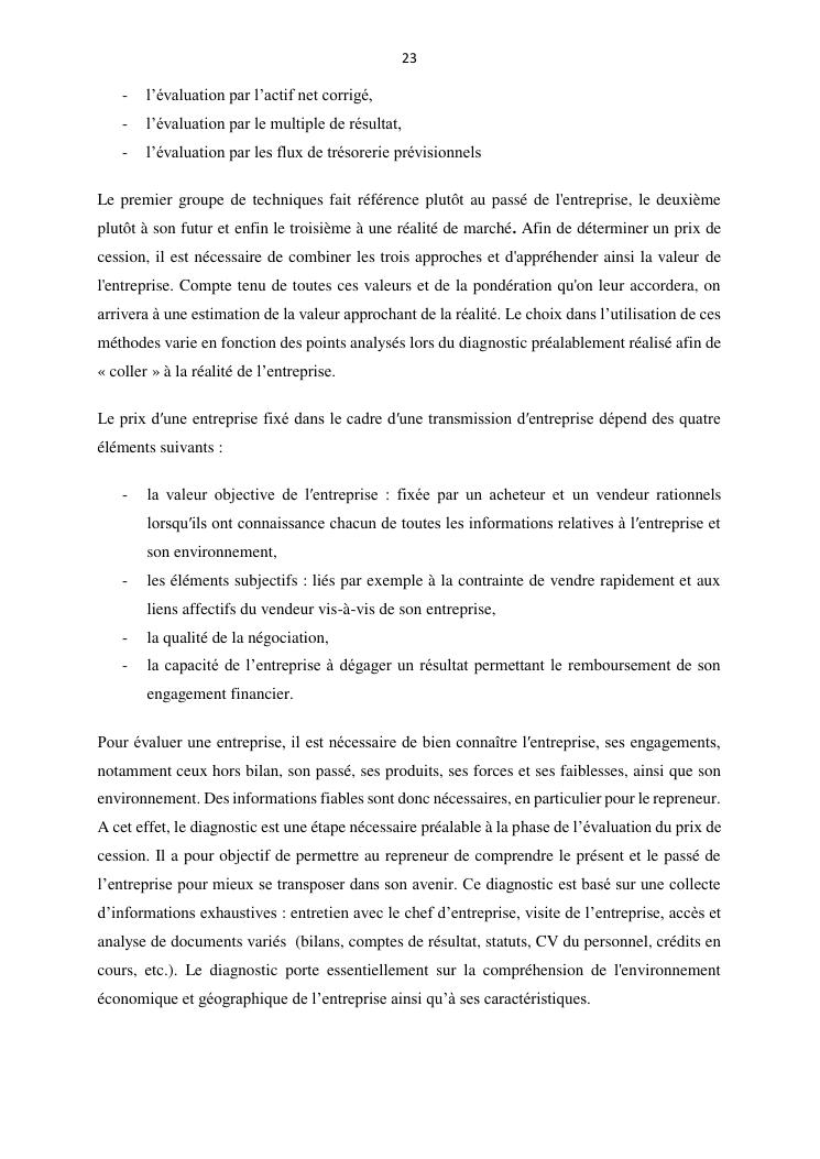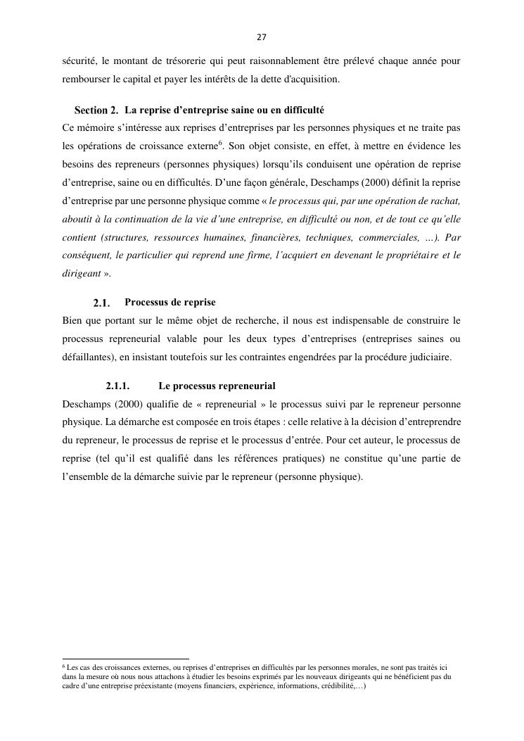 la reprise d'entreprise par une personne physique : approche structuree et efficace, cas des pme a madagascar cas au sein du cabinet cadre