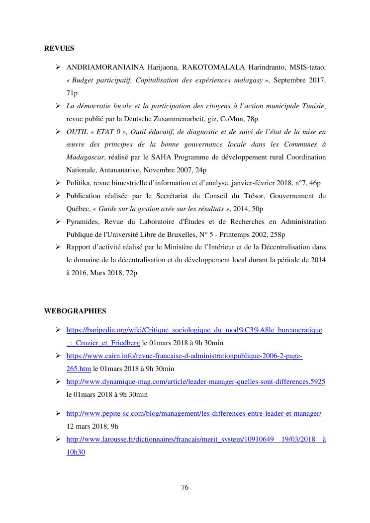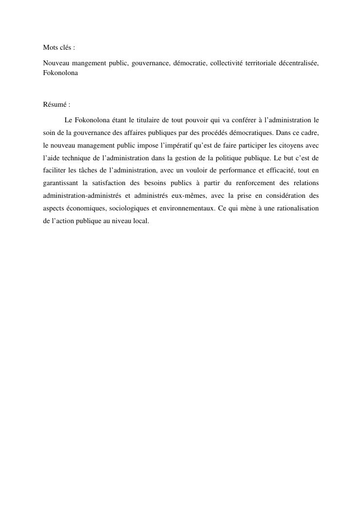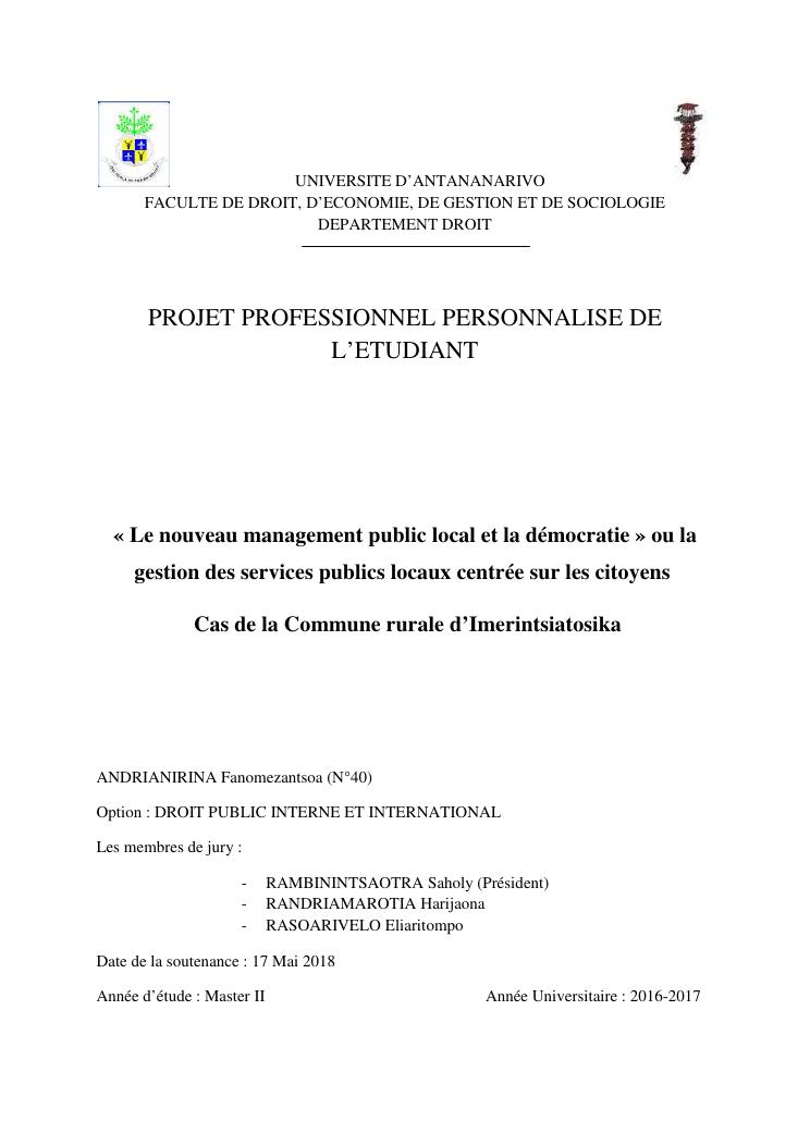 le nouveau management public local et la démocratie ou la gestion des services publics locaux centrée sur les citoyens : cas de la commune rurale d'imerintsiatosika