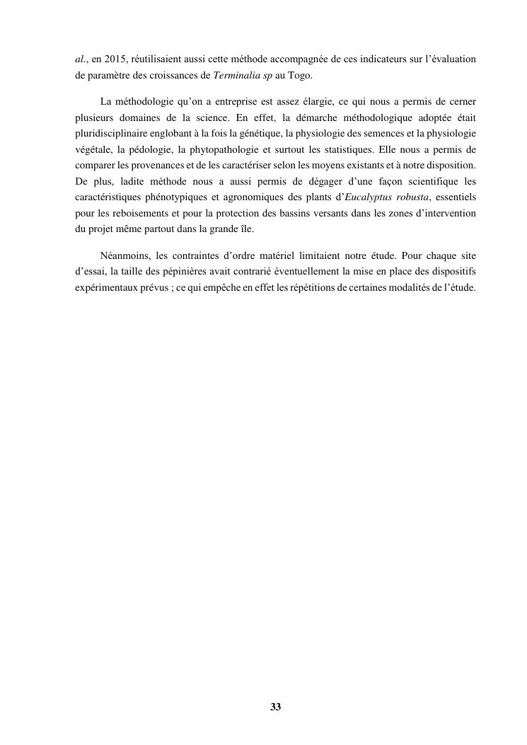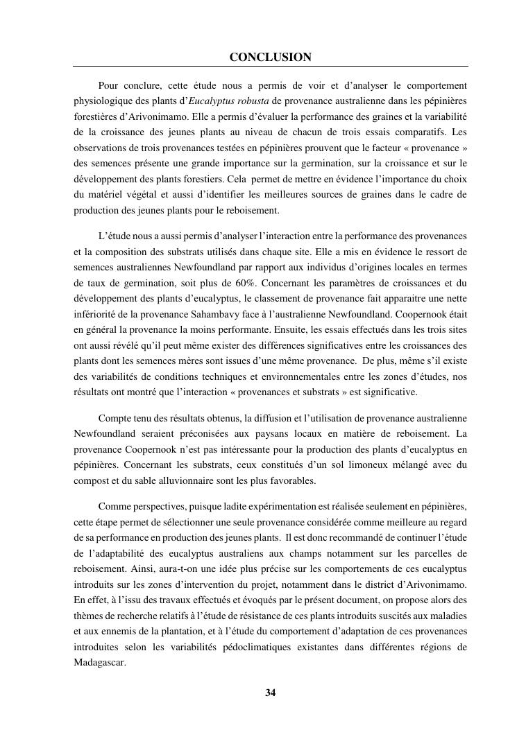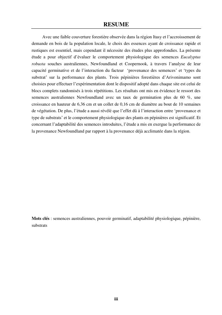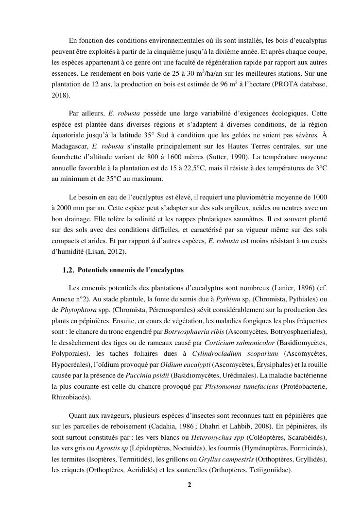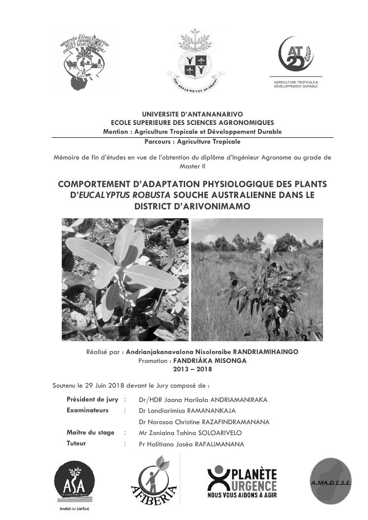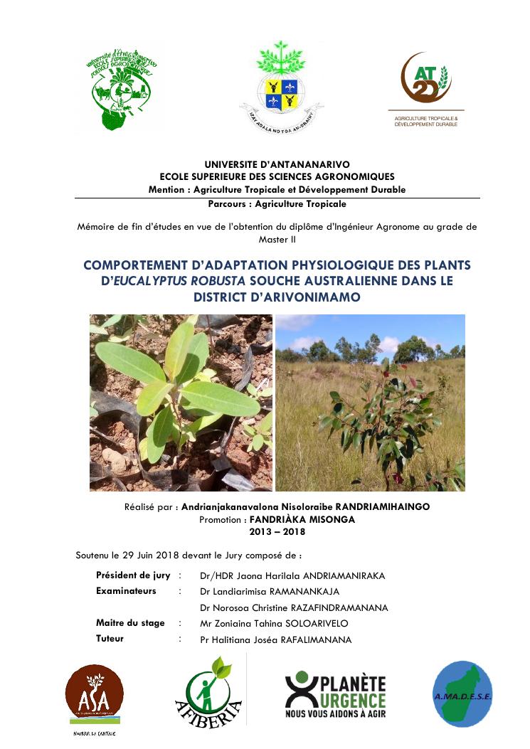 comportement d'adaptation physiologique des plants d'eucalyptus robusta souche australienne dans le district d'arivonimamo