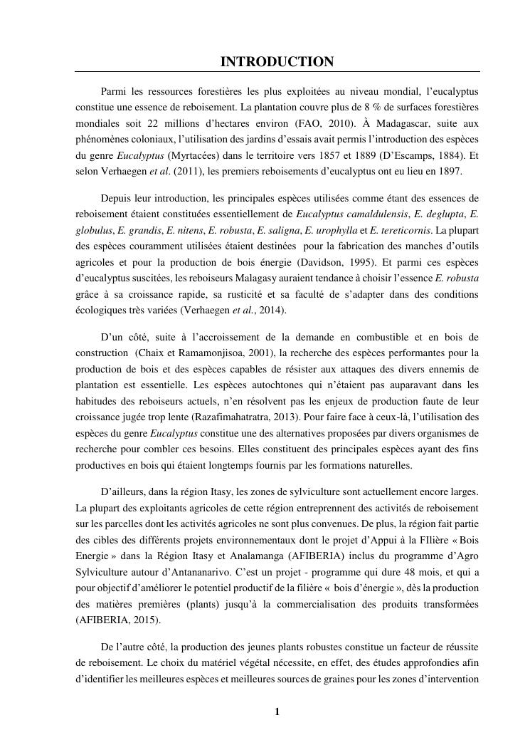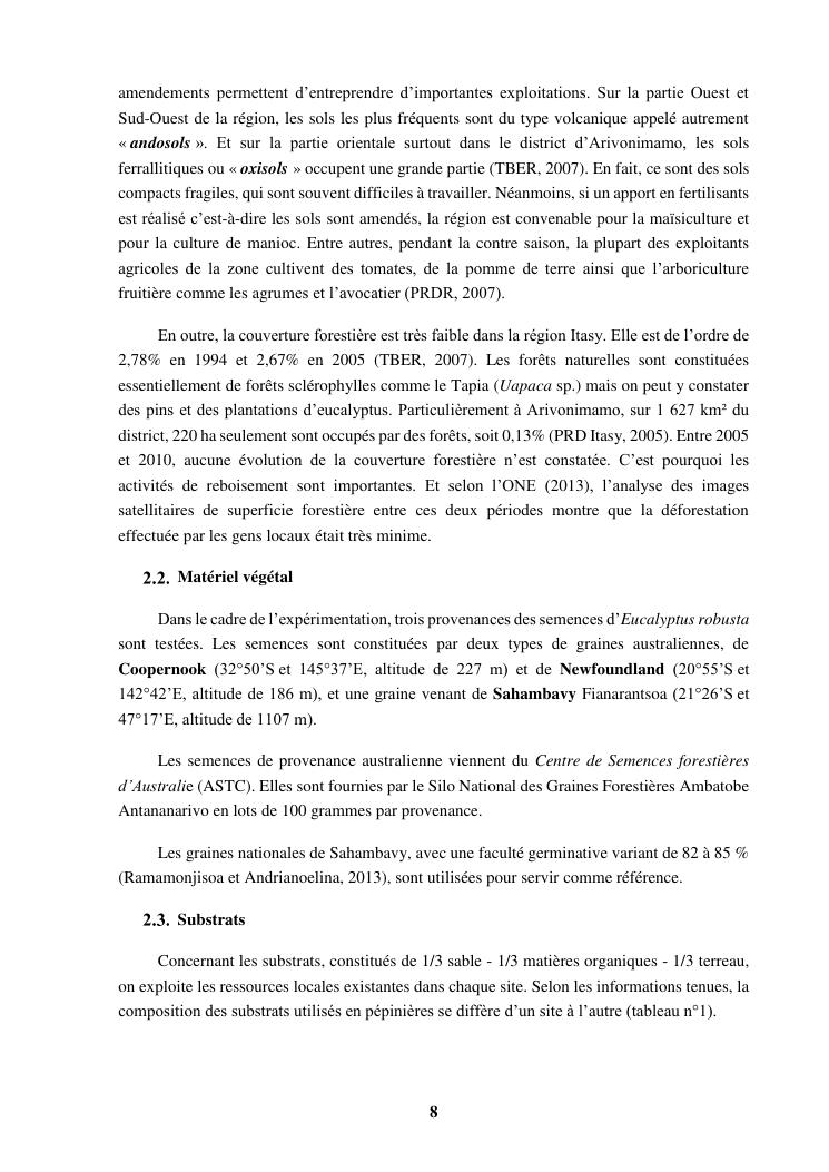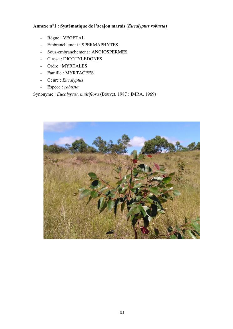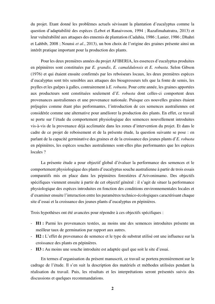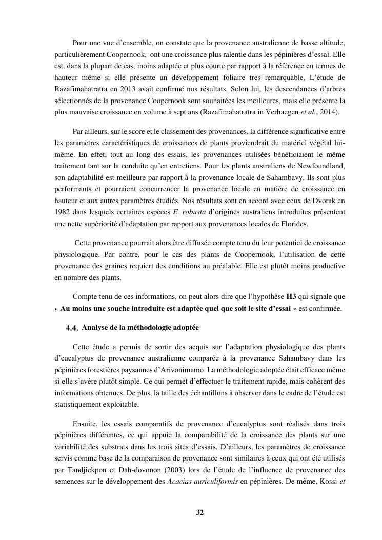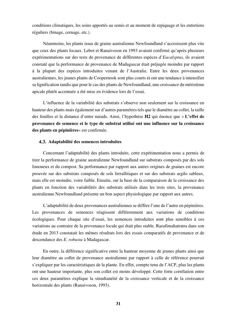 comportement d'adaptation physiologique des plants d'eucalyptus robusta souche australienne dans le district d'arivonimamo