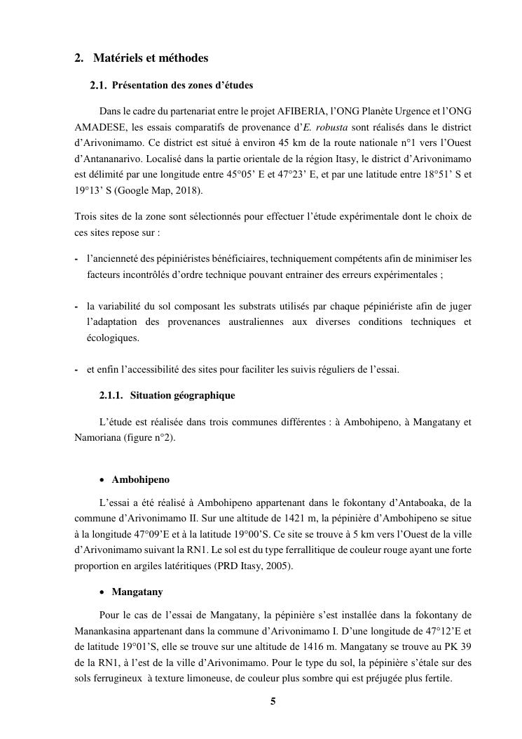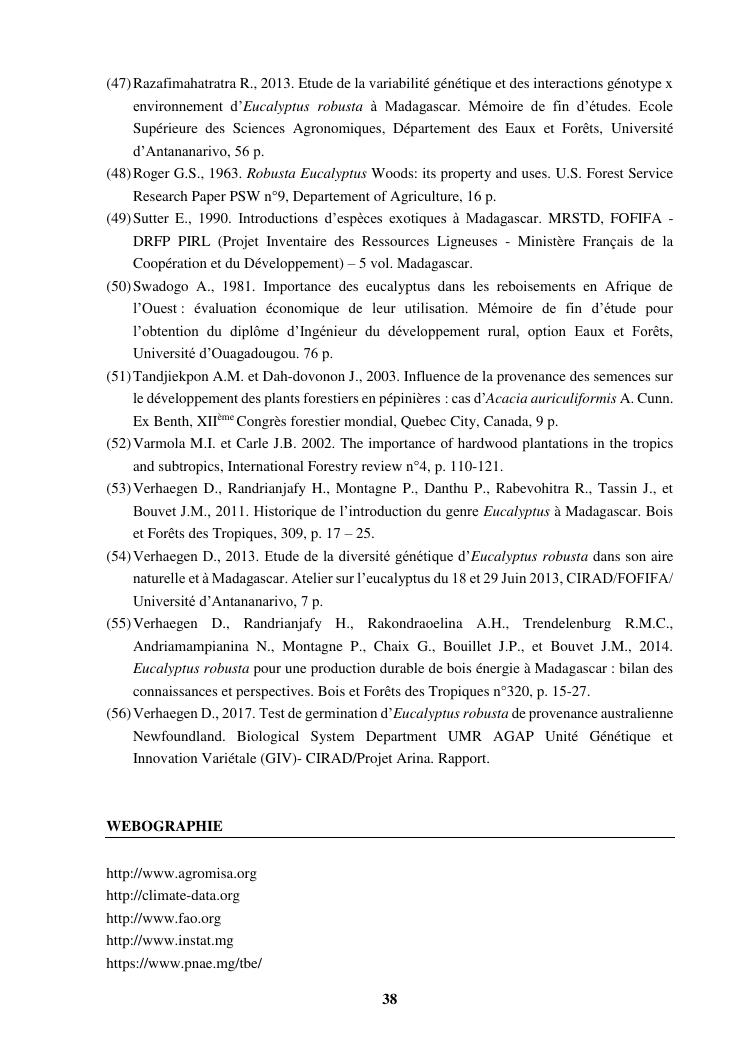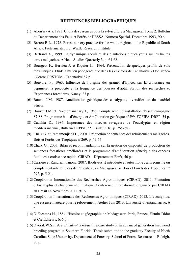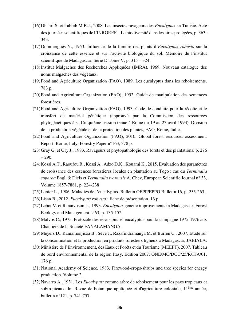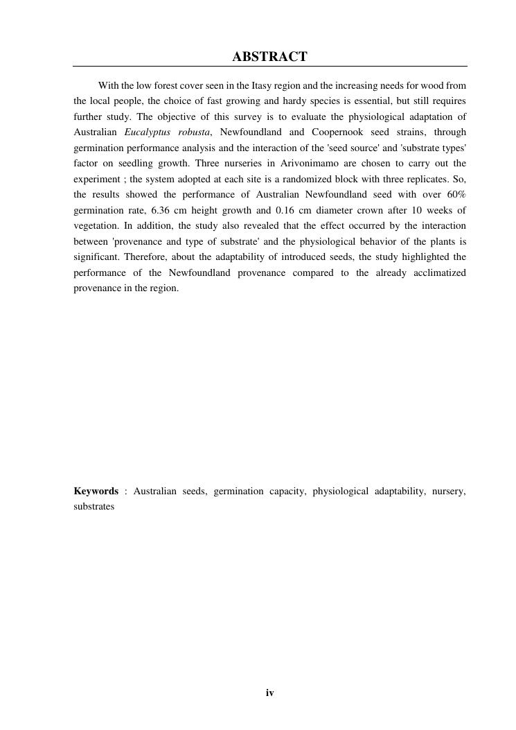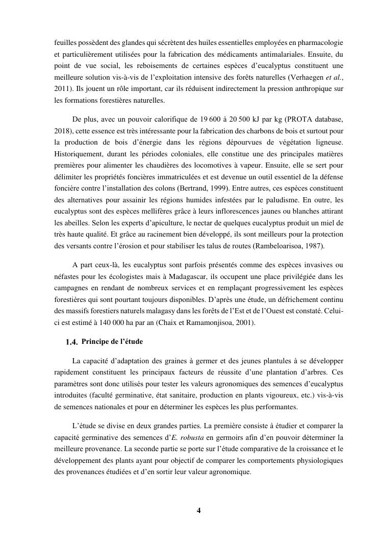 comportement d'adaptation physiologique des plants d'eucalyptus robusta souche australienne dans le district d'arivonimamo