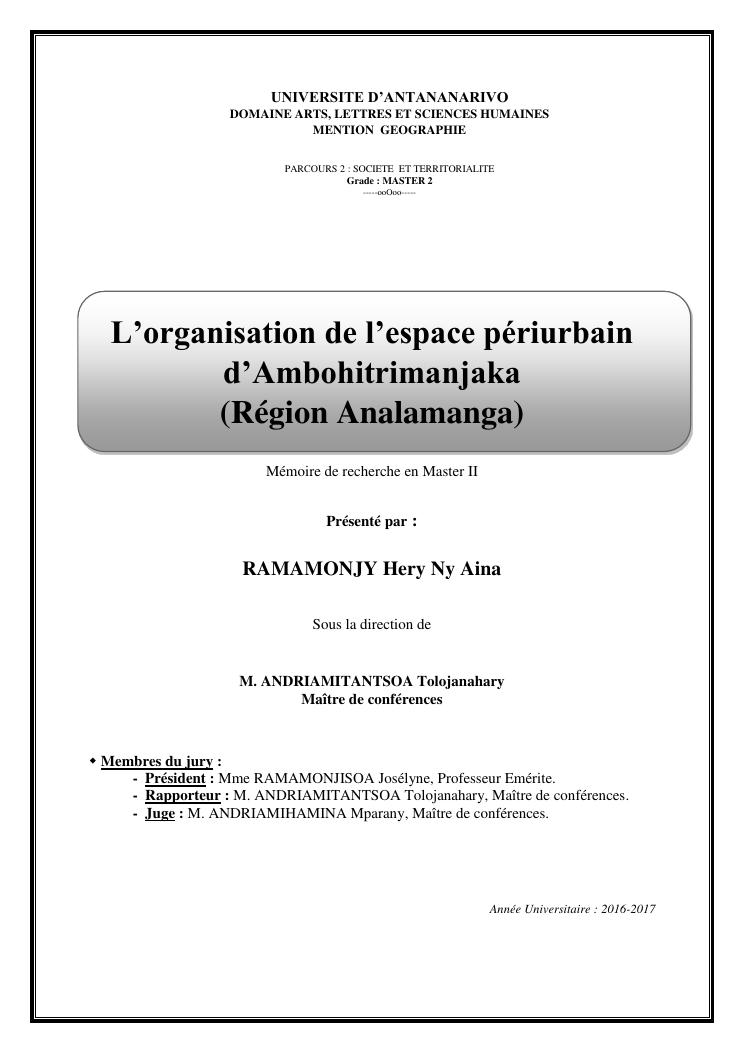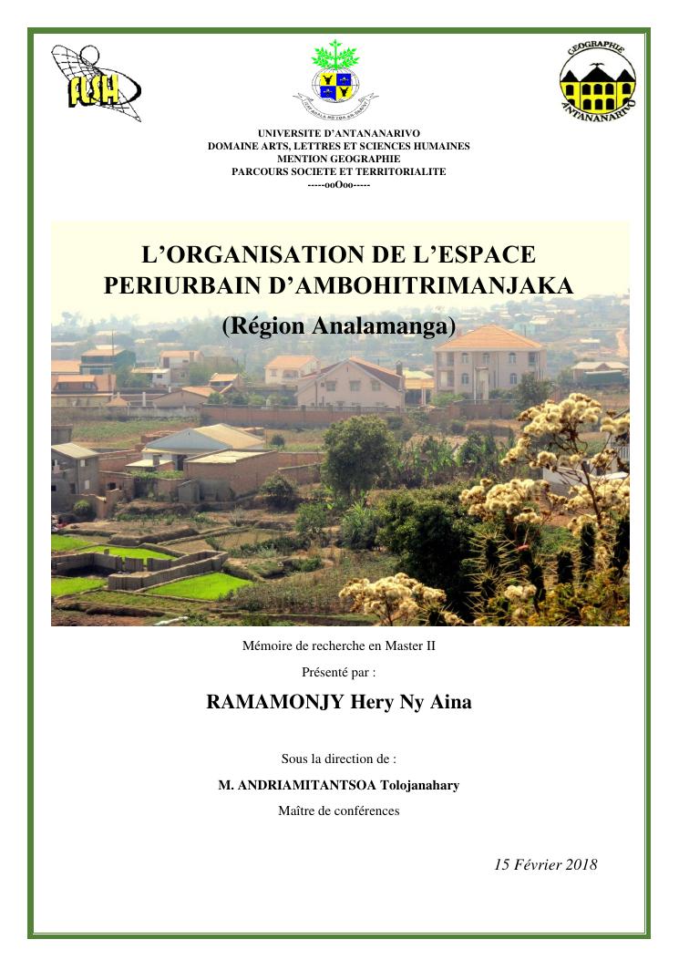 l'organisation de l'espace periurbain d'ambohitrimanjaka (région analamanga)