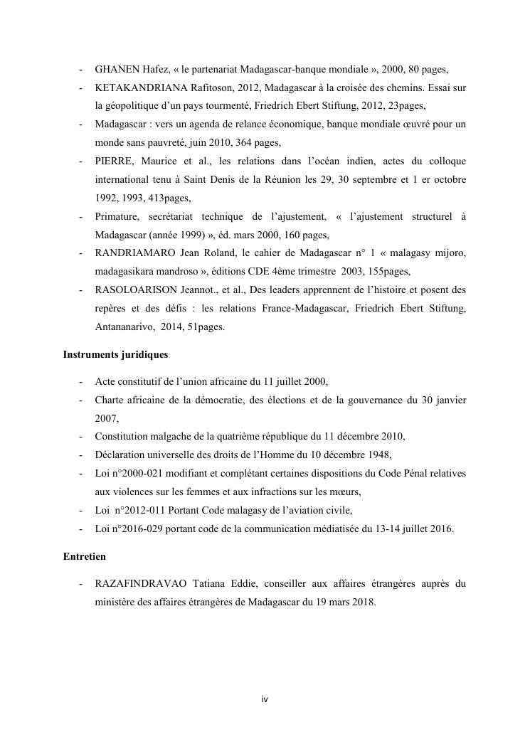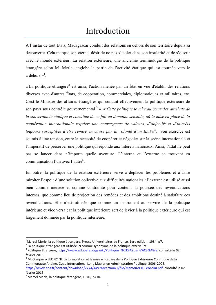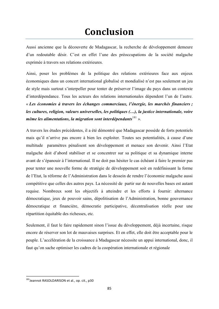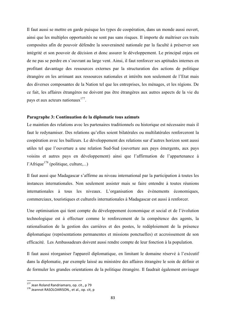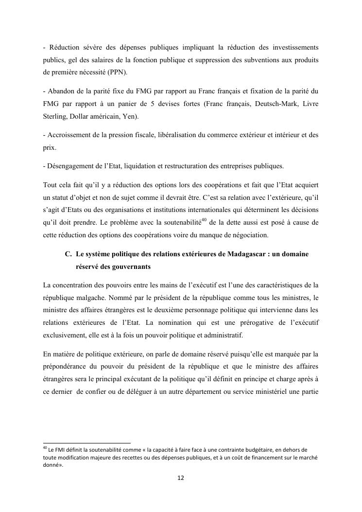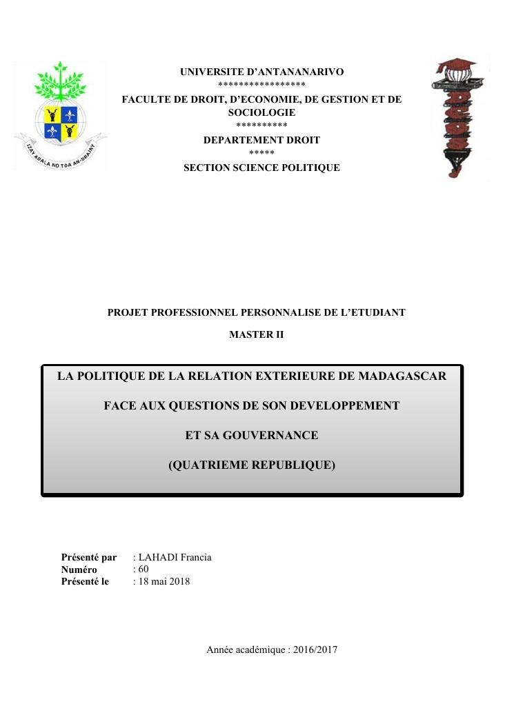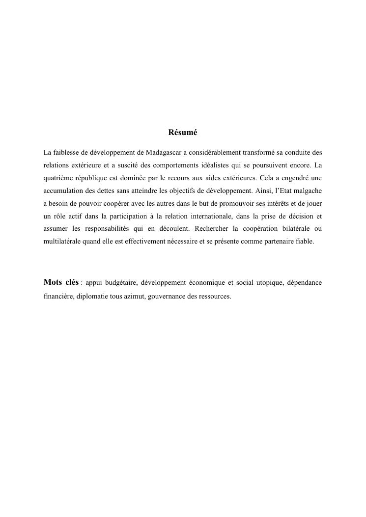 la politique de la relation exterieure de madagascar face aux questions de son developpement et sa gouvernance (quatrieme republique)