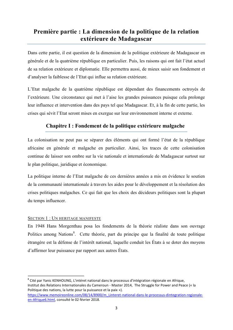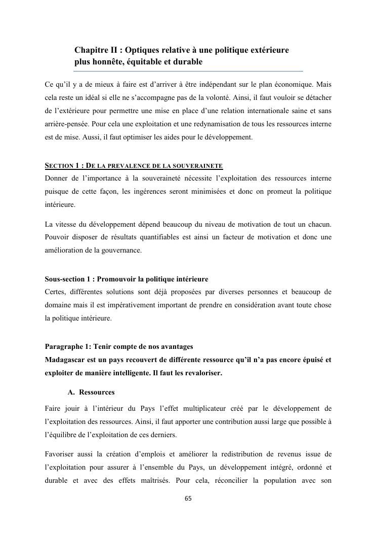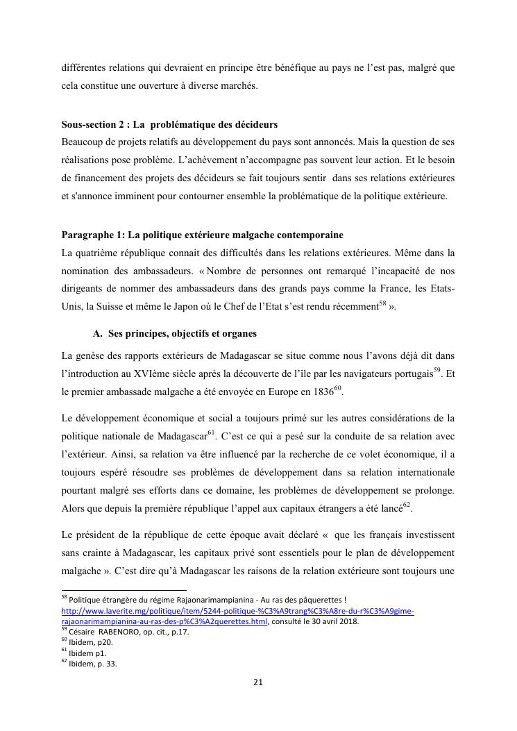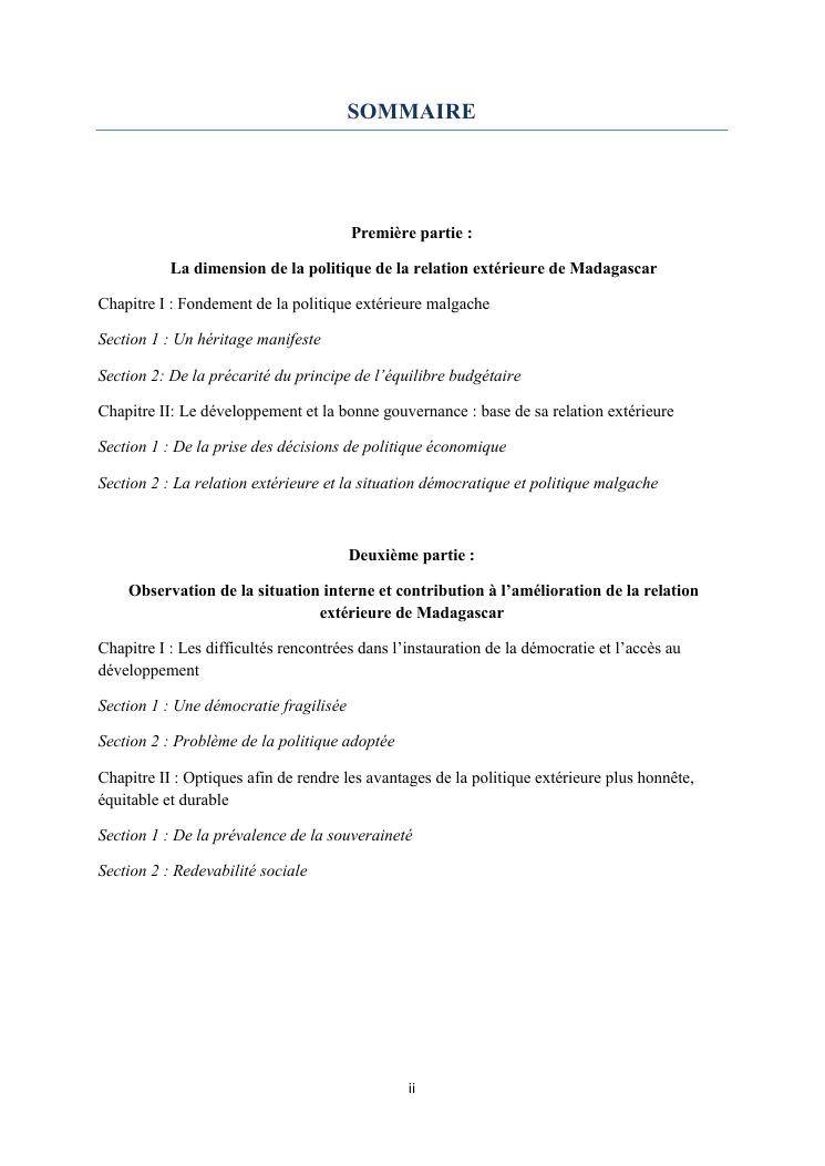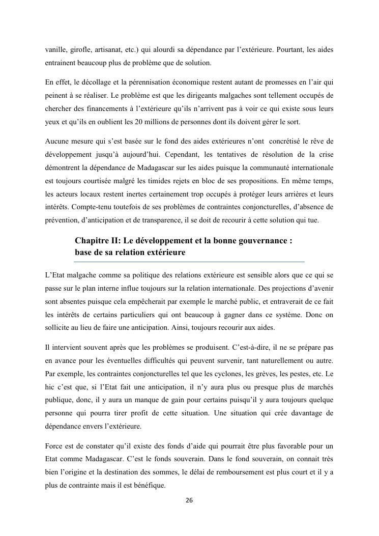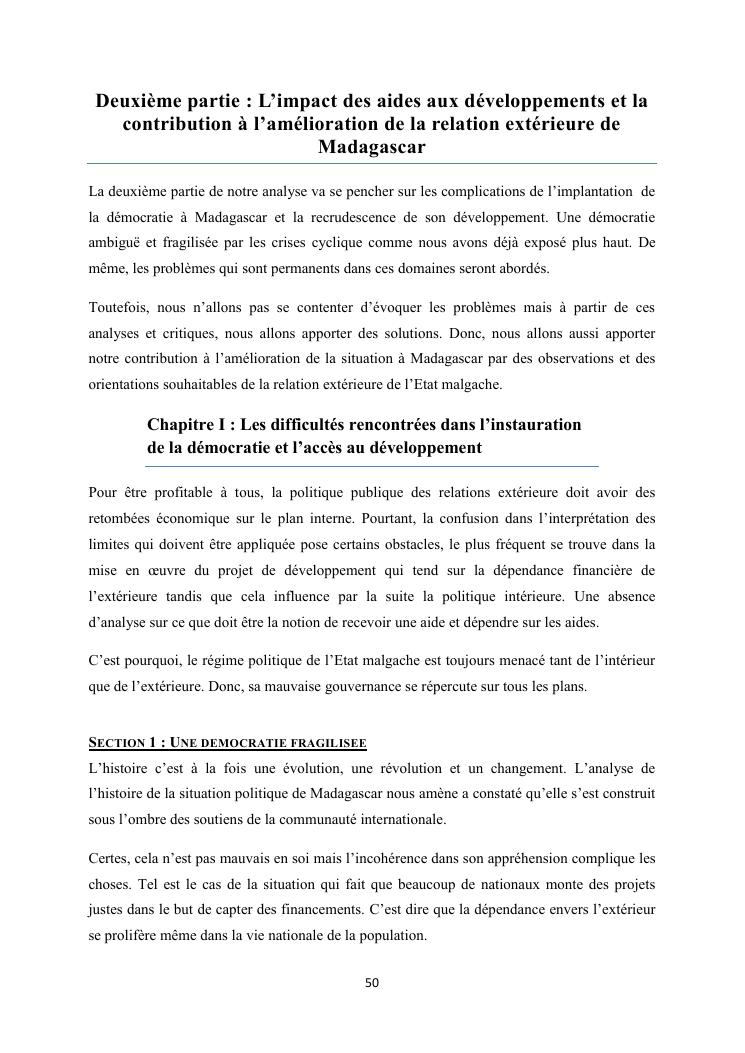 la politique de la relation exterieure de madagascar face aux questions de son developpement et sa gouvernance (quatrieme republique)