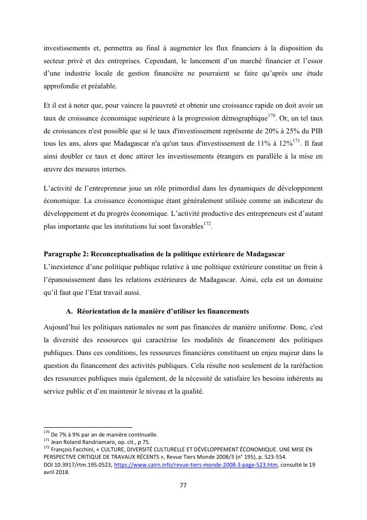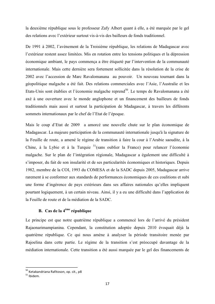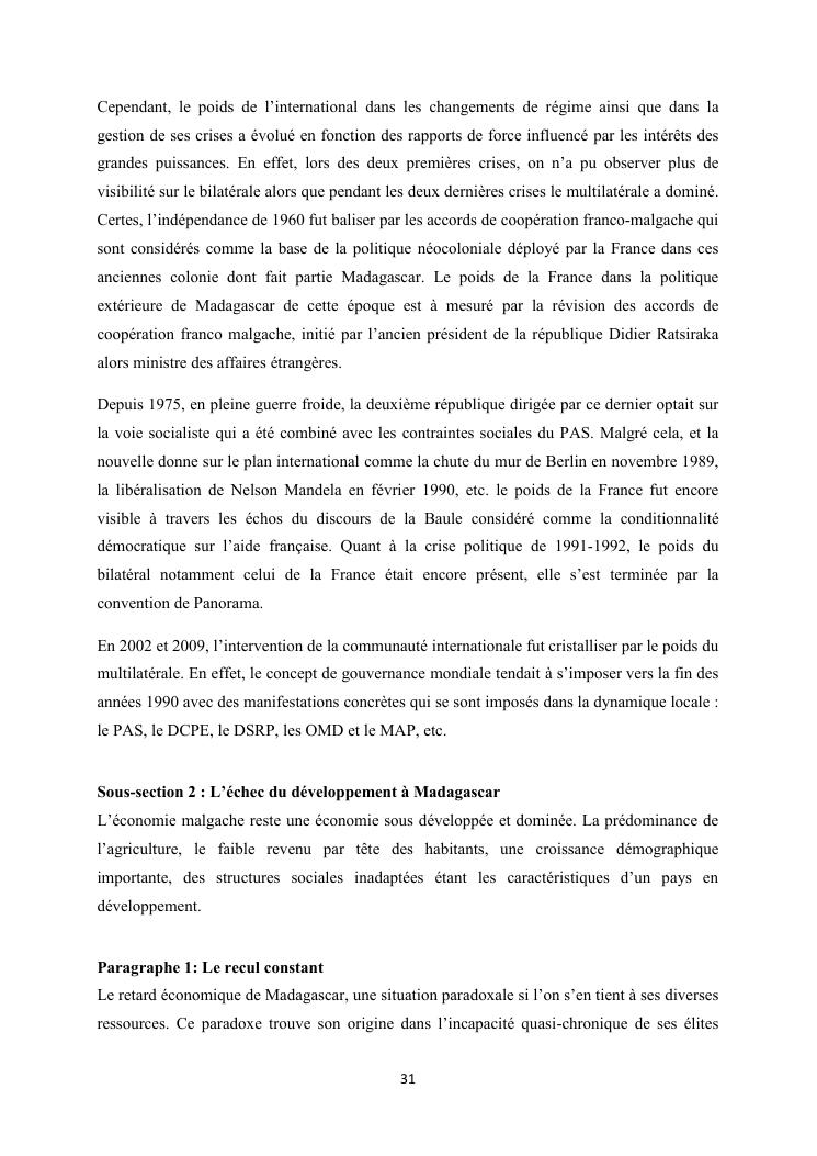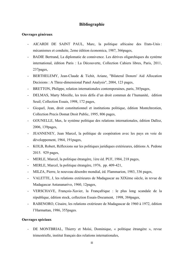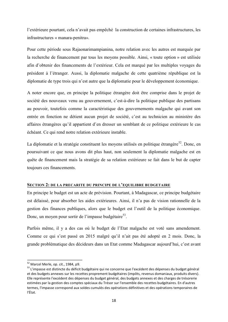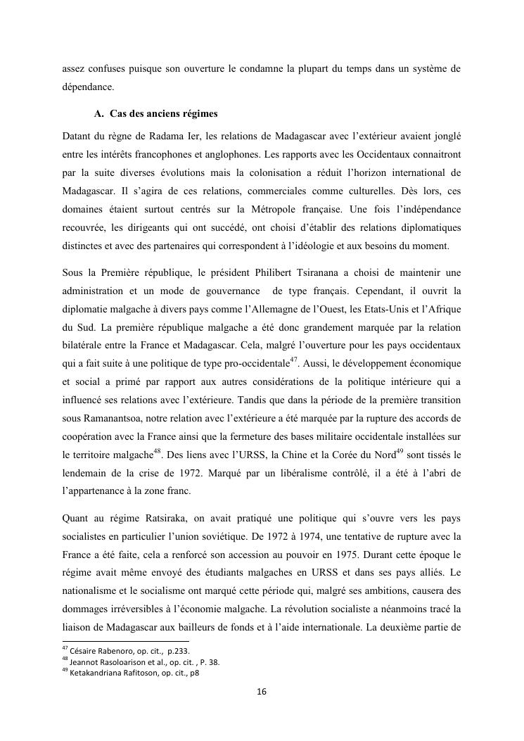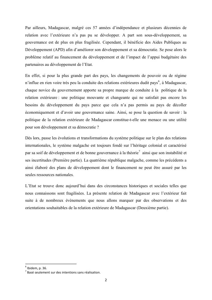 la politique de la relation exterieure de madagascar face aux questions de son developpement et sa gouvernance (quatrieme republique)