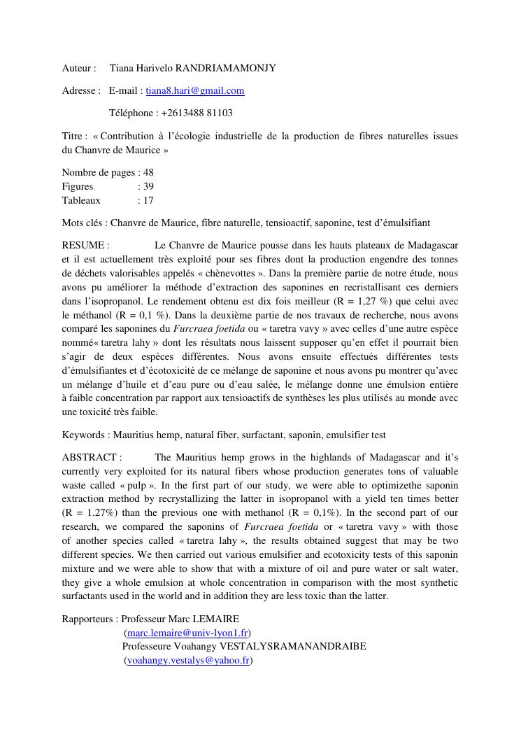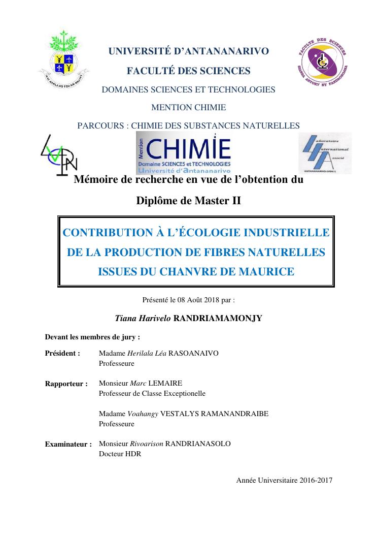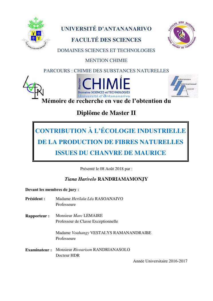 contribution à l'écologie industrielle de la production de fibres naturelles issues du chanvre de maurice