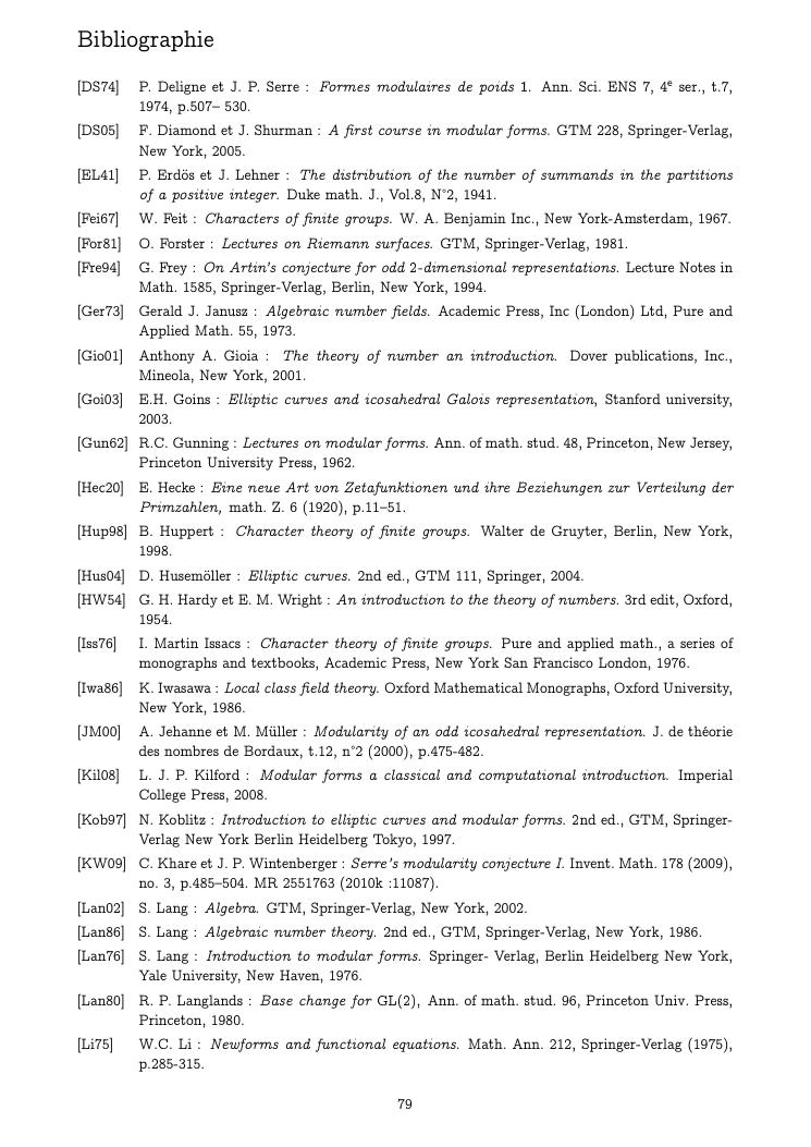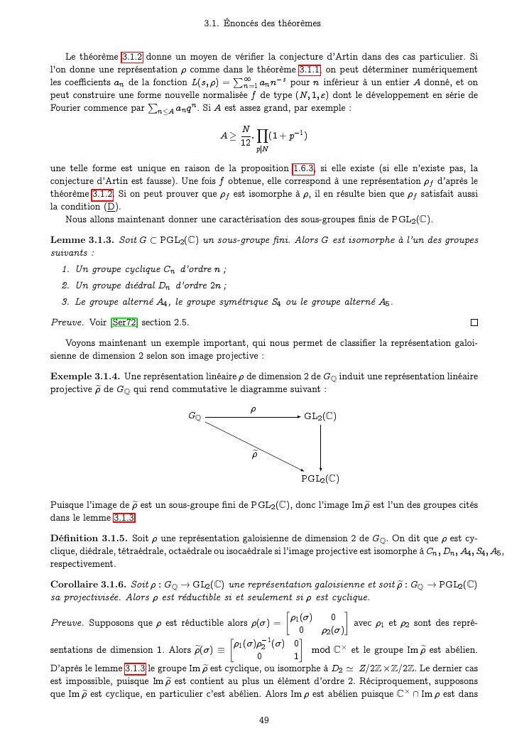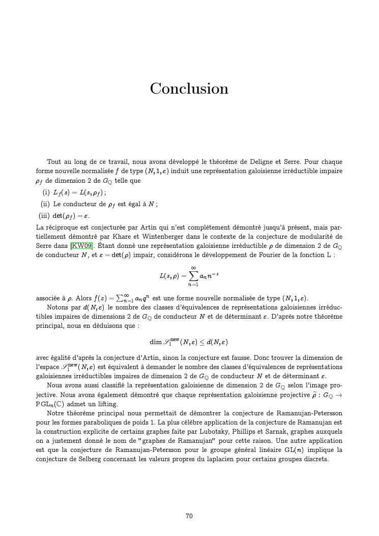 formes modulaires de poids un et représentations galoisiennes