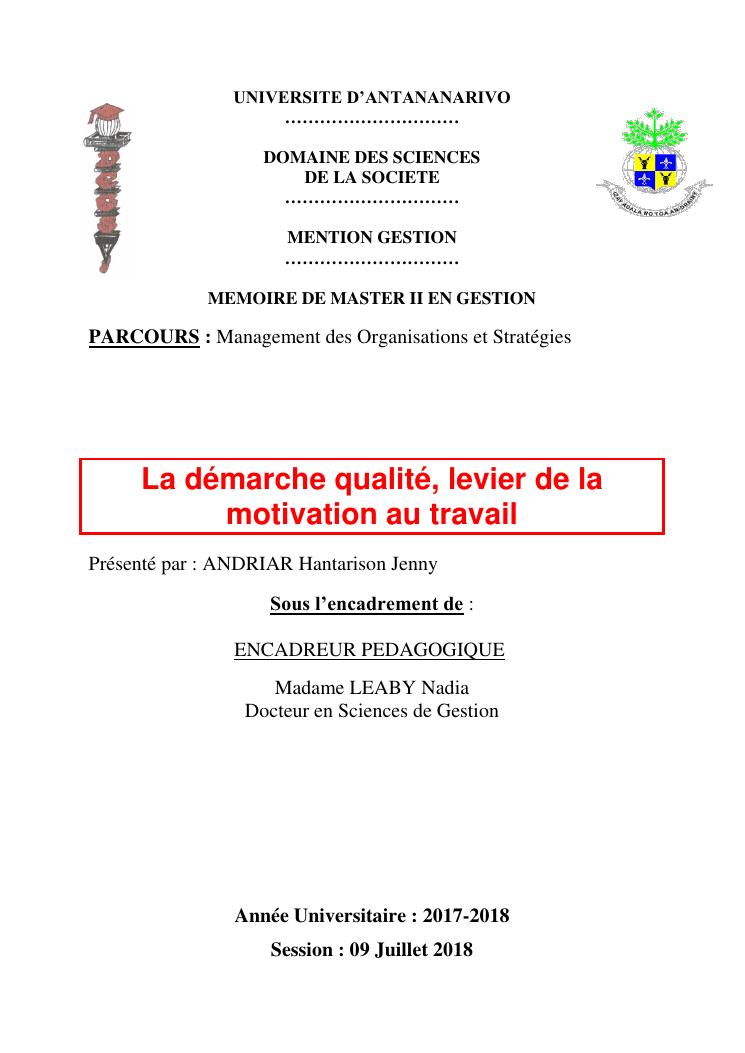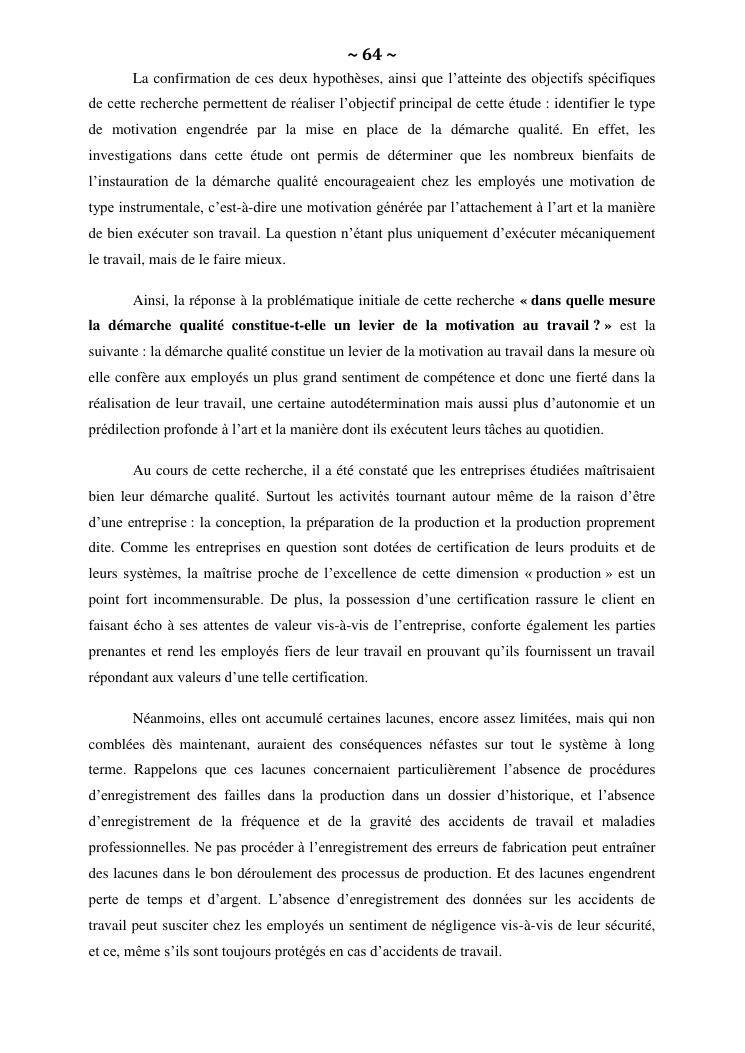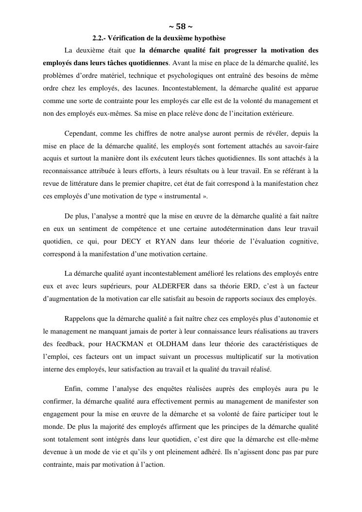 la démarche qualité, levier de la motivation au travail