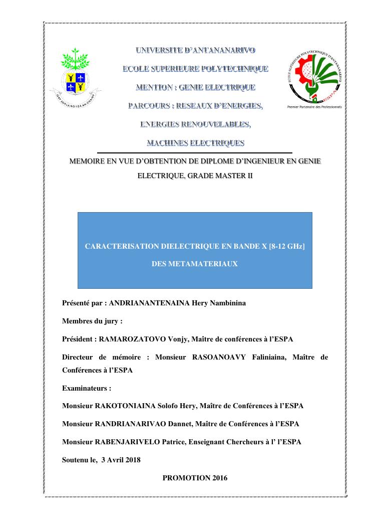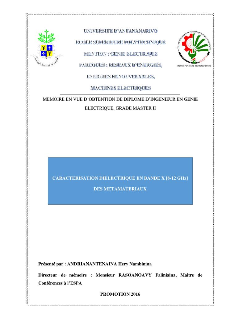 caracterisation dielectrique en bande x [8-12 ghz] des metamateriaux