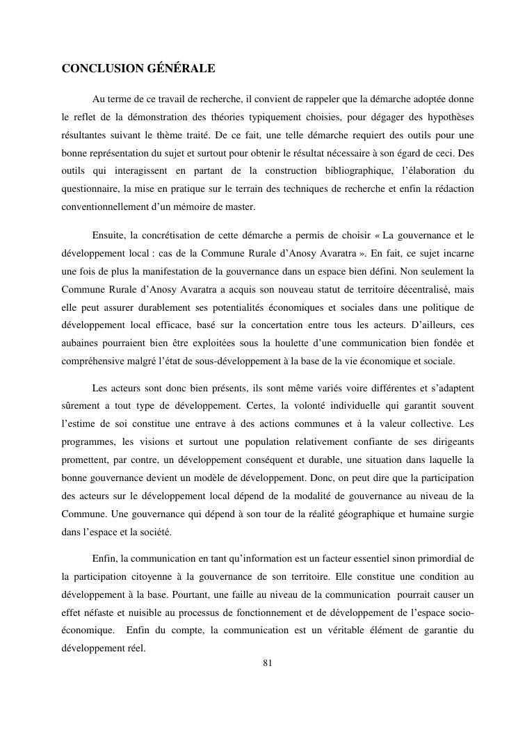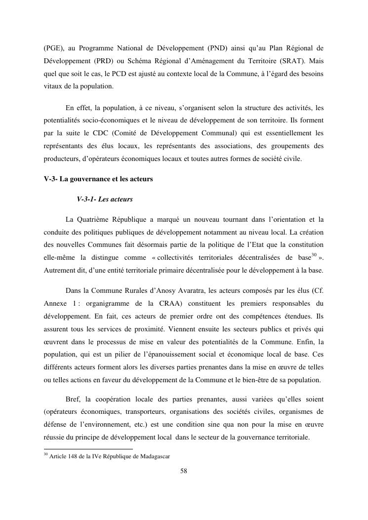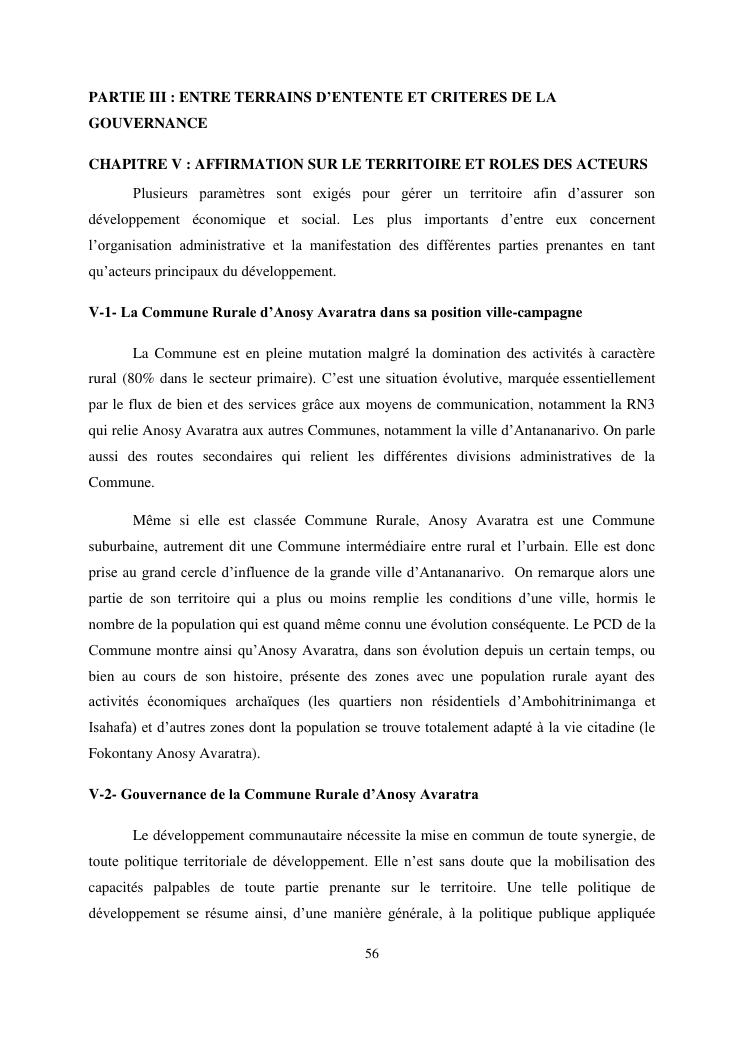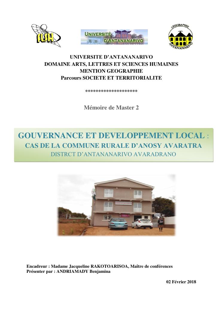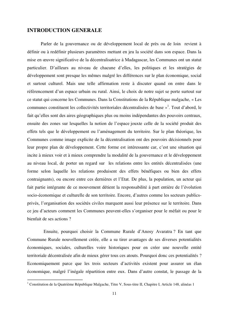 gouvernance et developpement local : cas de la commune rurale d'anosy avaratra distrct d'antananarivo avaradrano