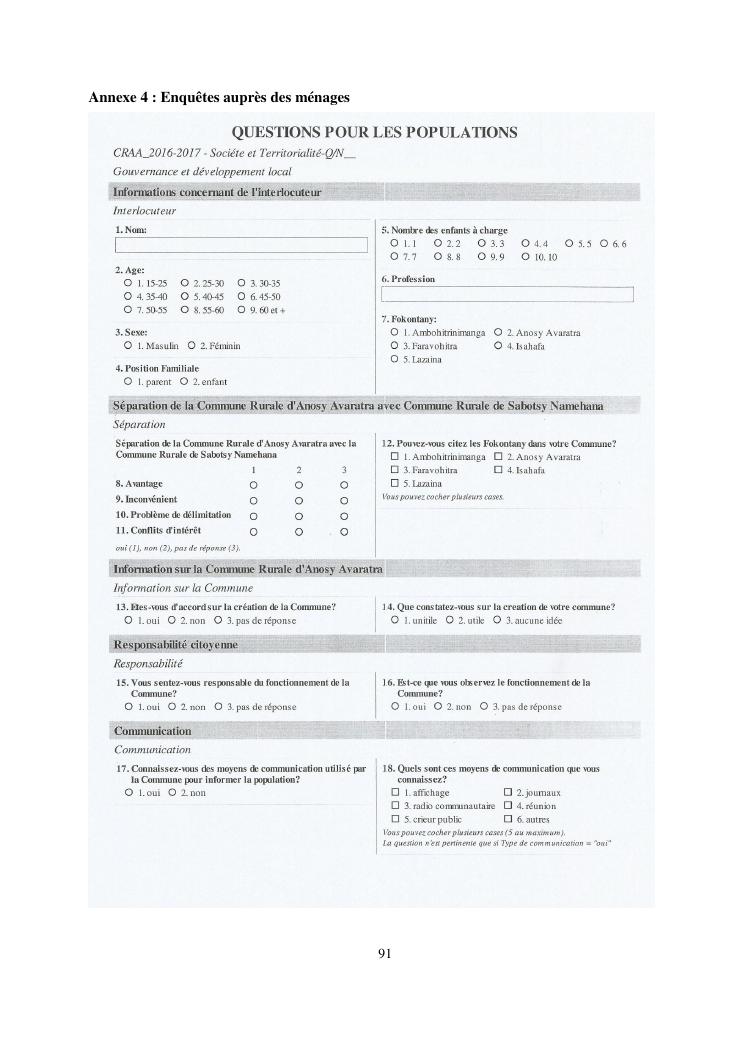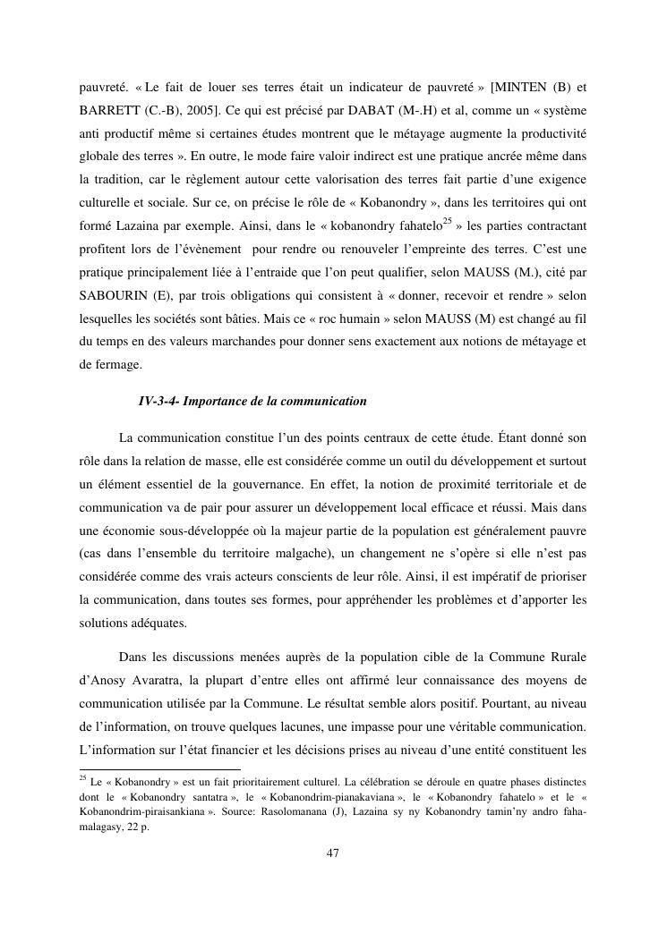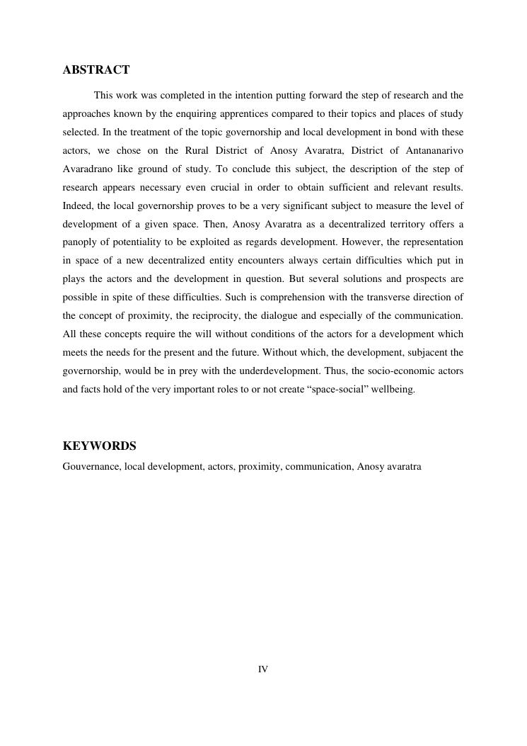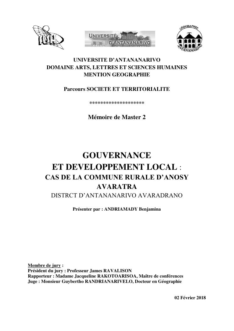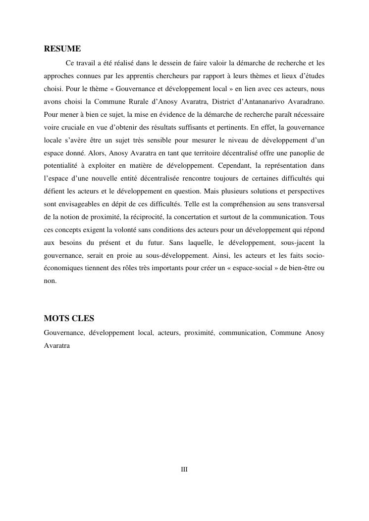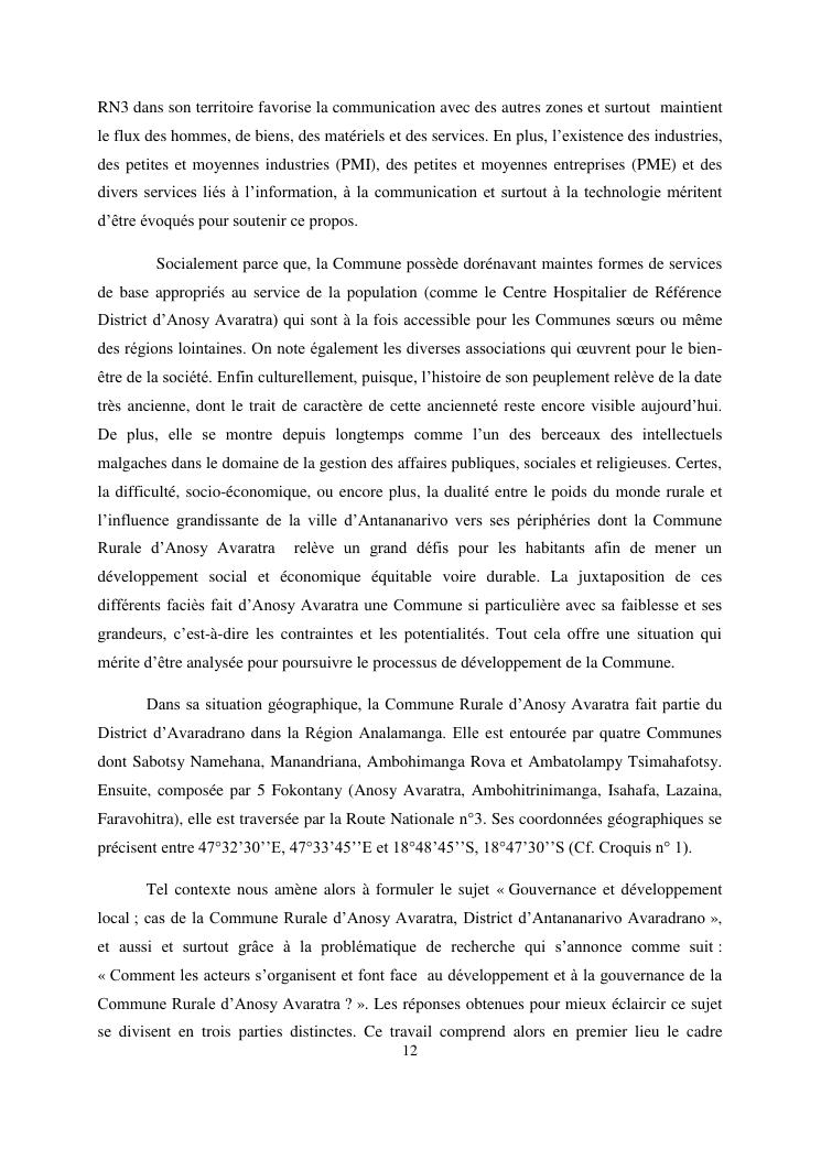 gouvernance et developpement local : cas de la commune rurale d'anosy avaratra distrct d'antananarivo avaradrano