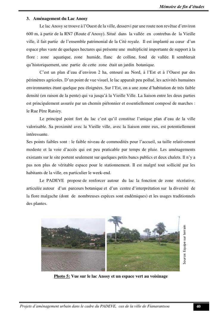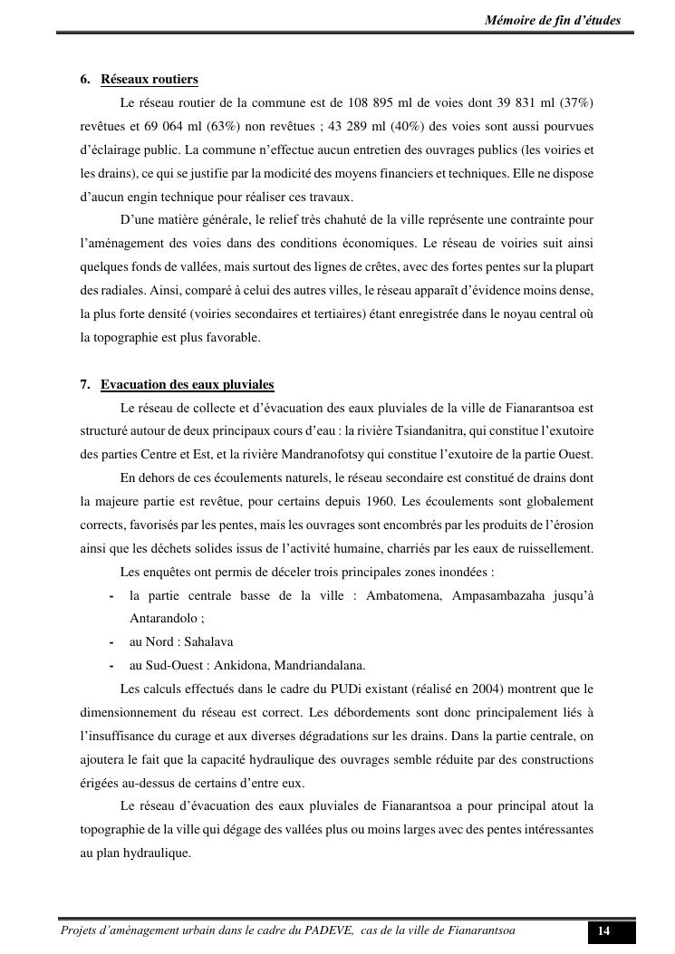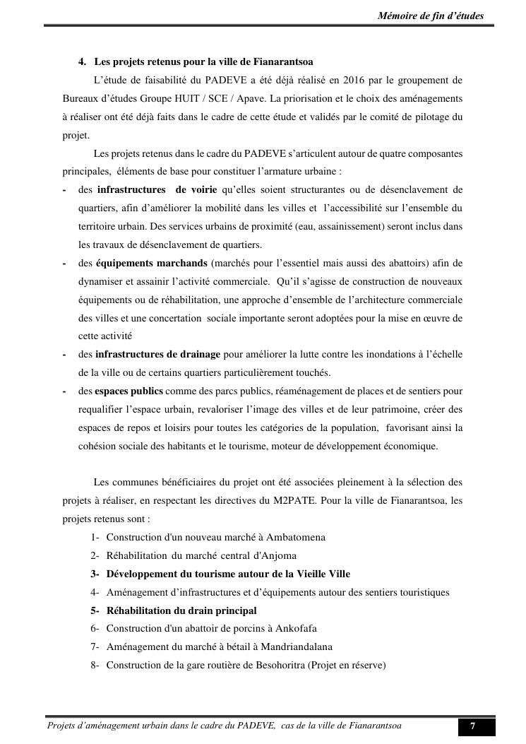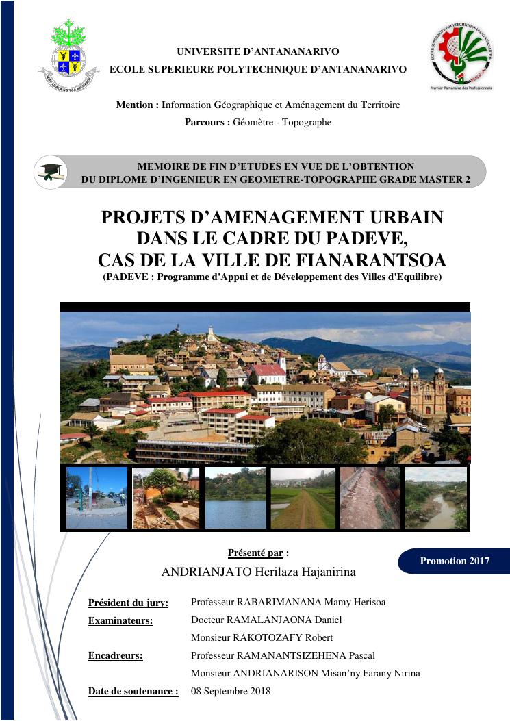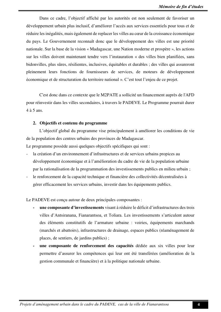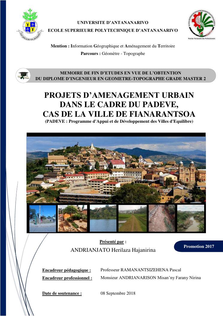projets d'amenagement urbain dans le cadre du padeve, cas de la ville de fianarantsoa (padeve : programme d'appui et de développement des villes d'equilibre)