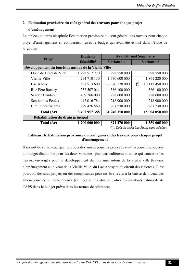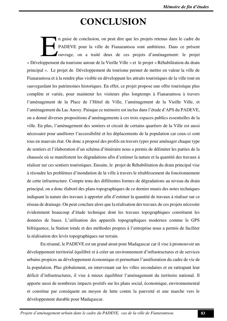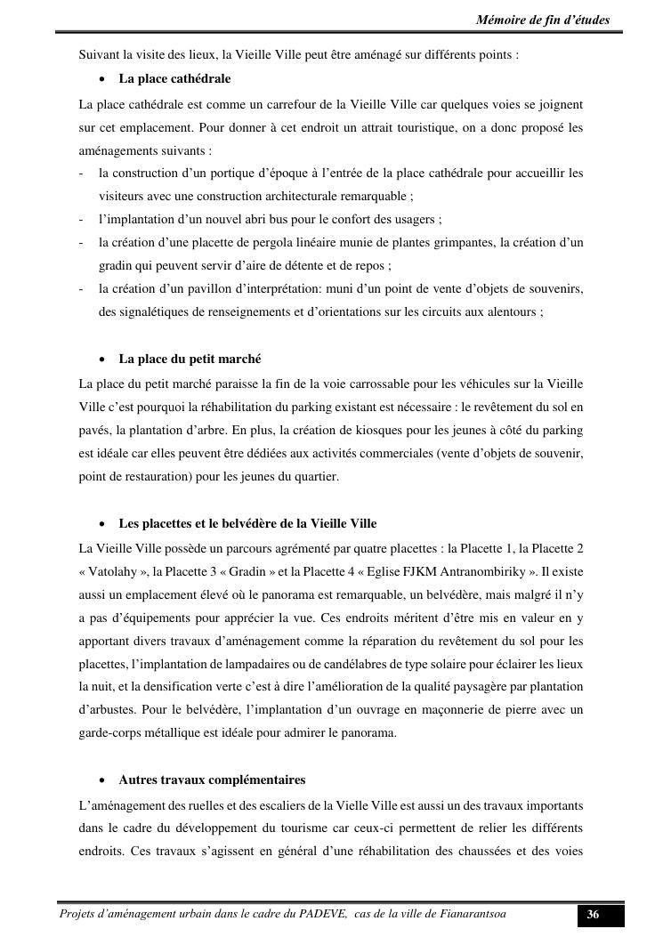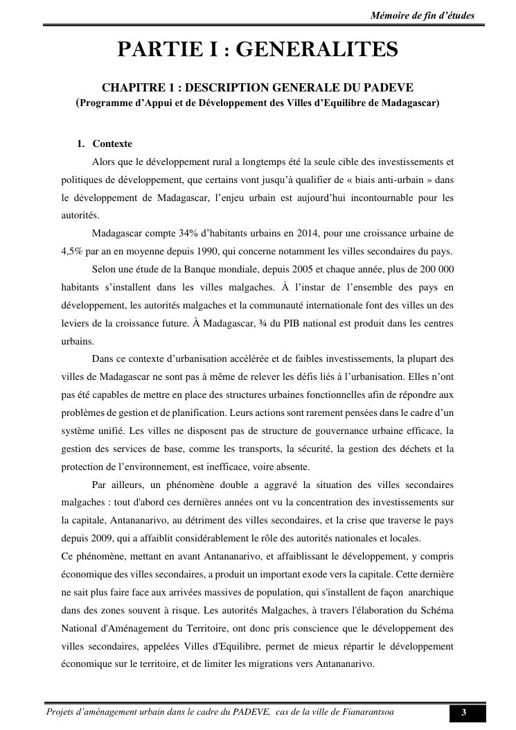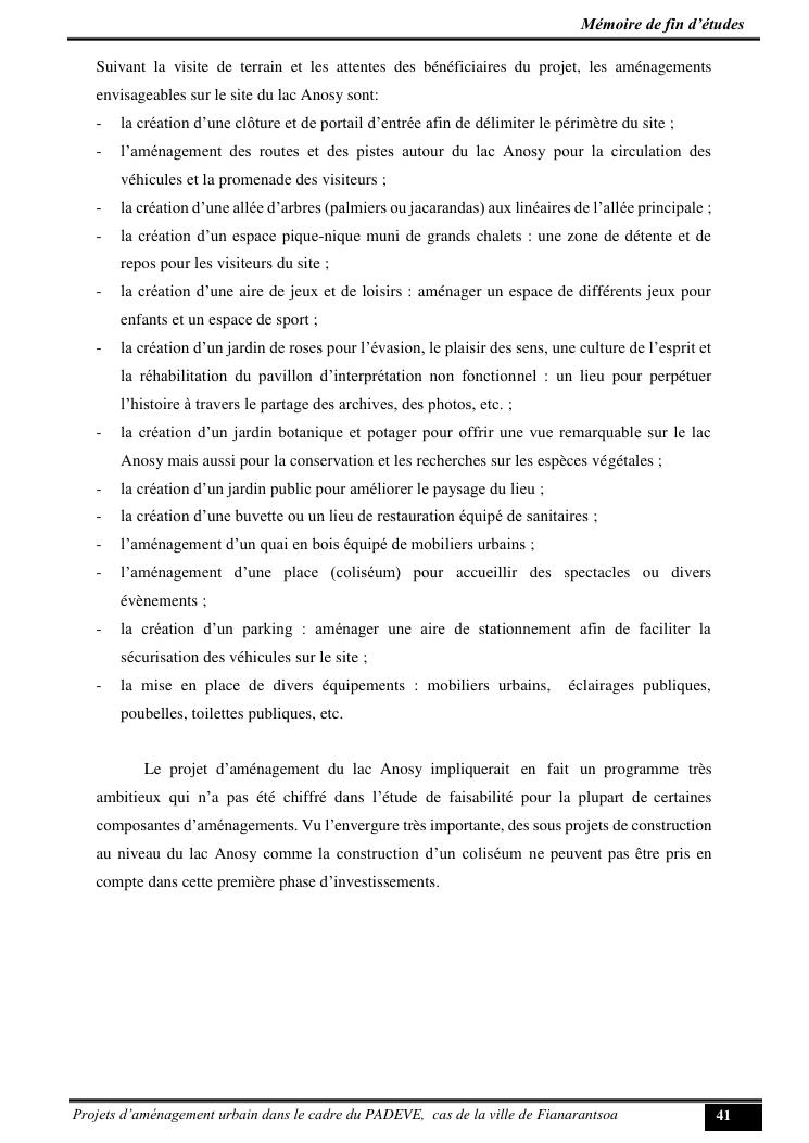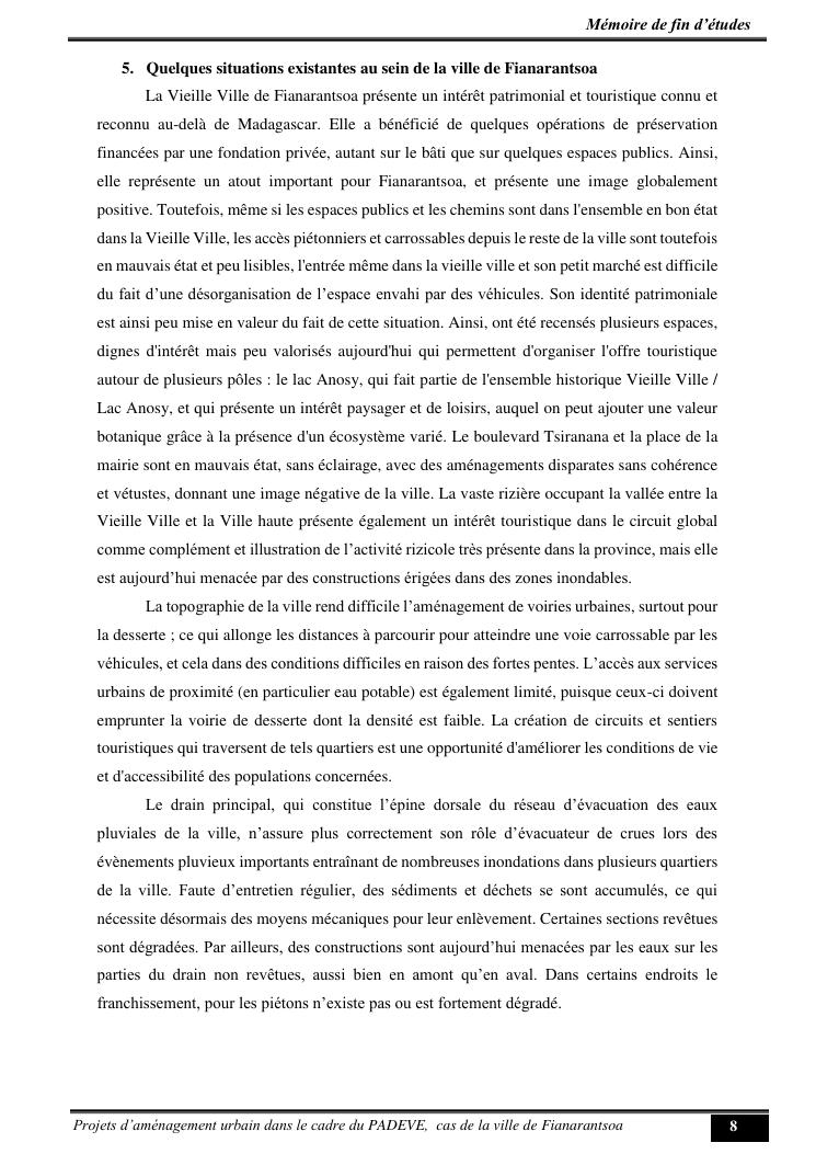 projets d'amenagement urbain dans le cadre du padeve, cas de la ville de fianarantsoa (padeve : programme d'appui et de développement des villes d'equilibre)