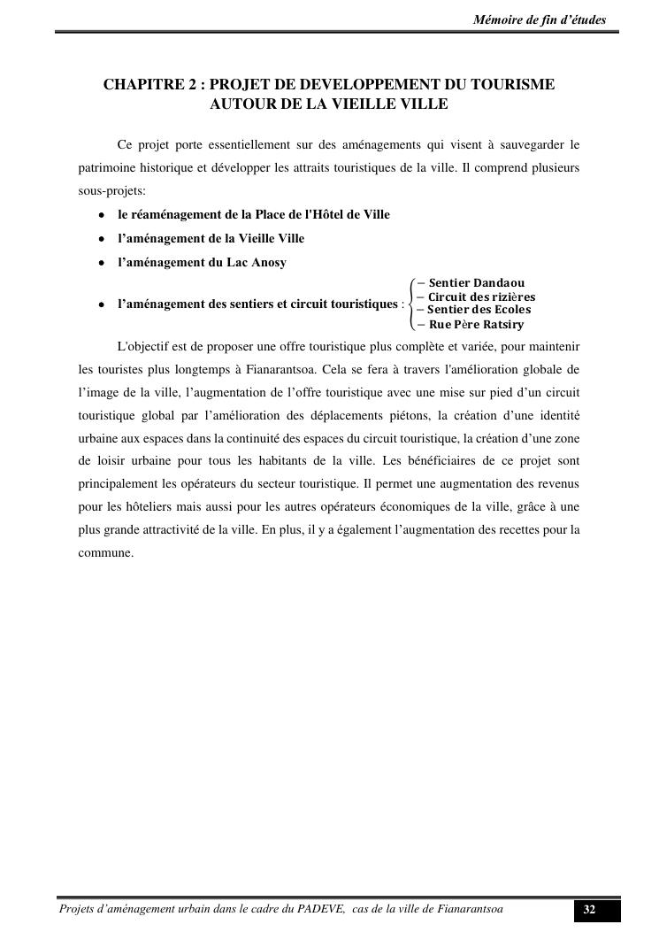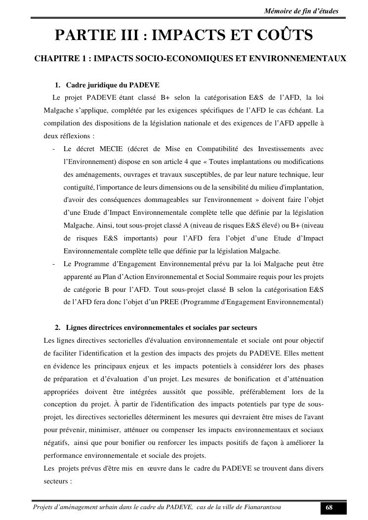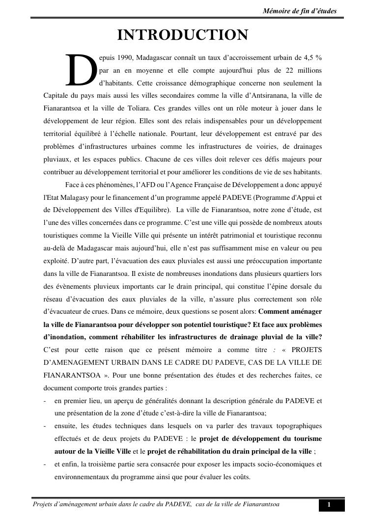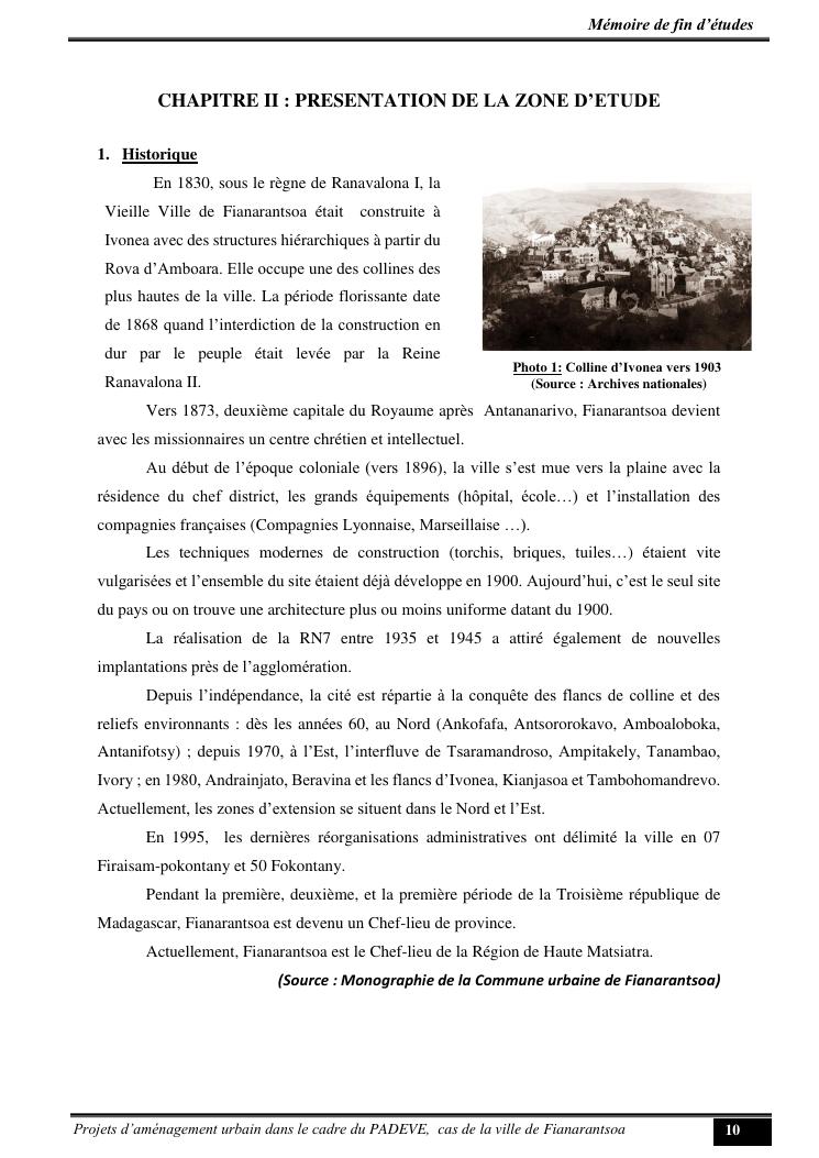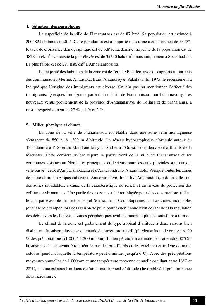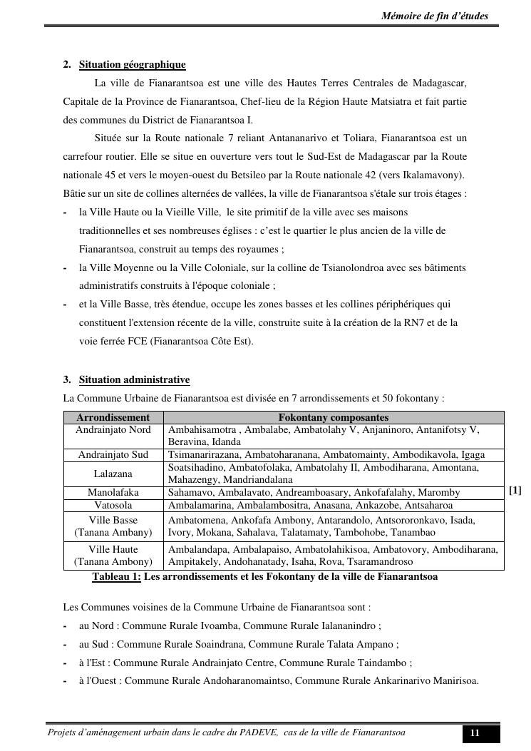 projets d'amenagement urbain dans le cadre du padeve, cas de la ville de fianarantsoa (padeve : programme d'appui et de développement des villes d'equilibre)